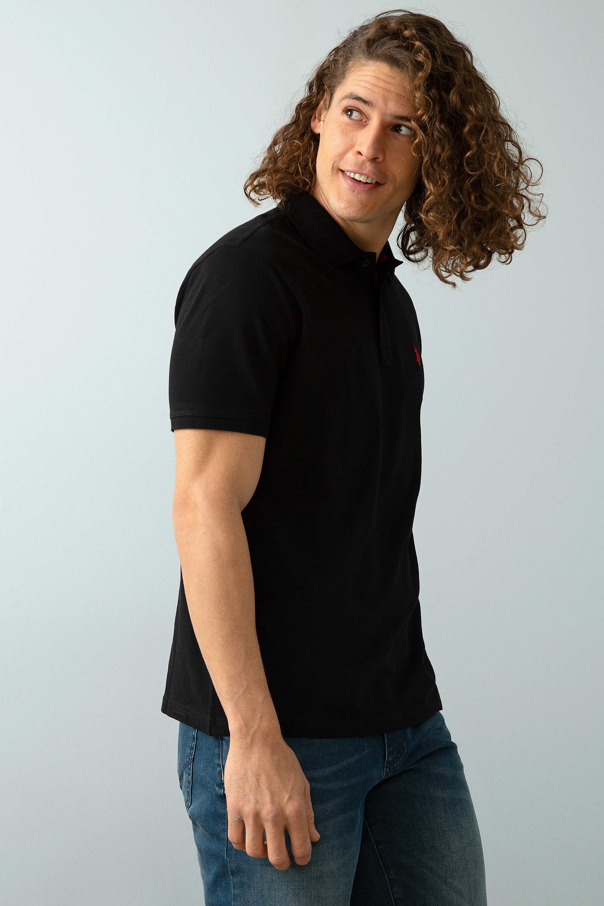 - Erkek Siyah Polo Yaka Basic T-Shirt