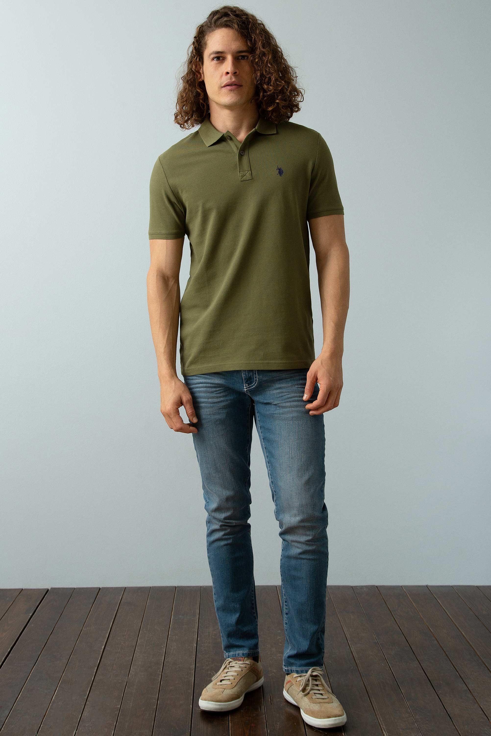 - Erkek Koyu Haki Polo Yaka T-Shirt Basic