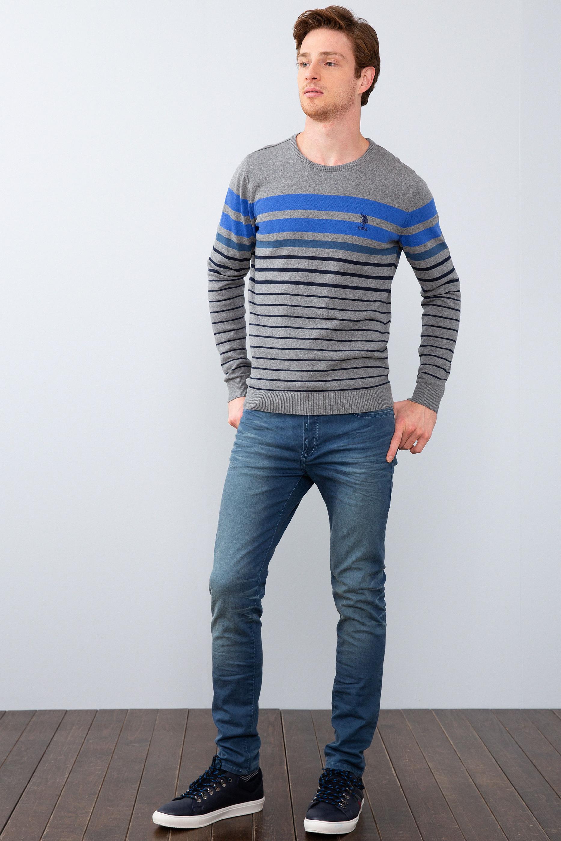 Erkek Gri Melanj Bisiklet Yaka Triko Kazak