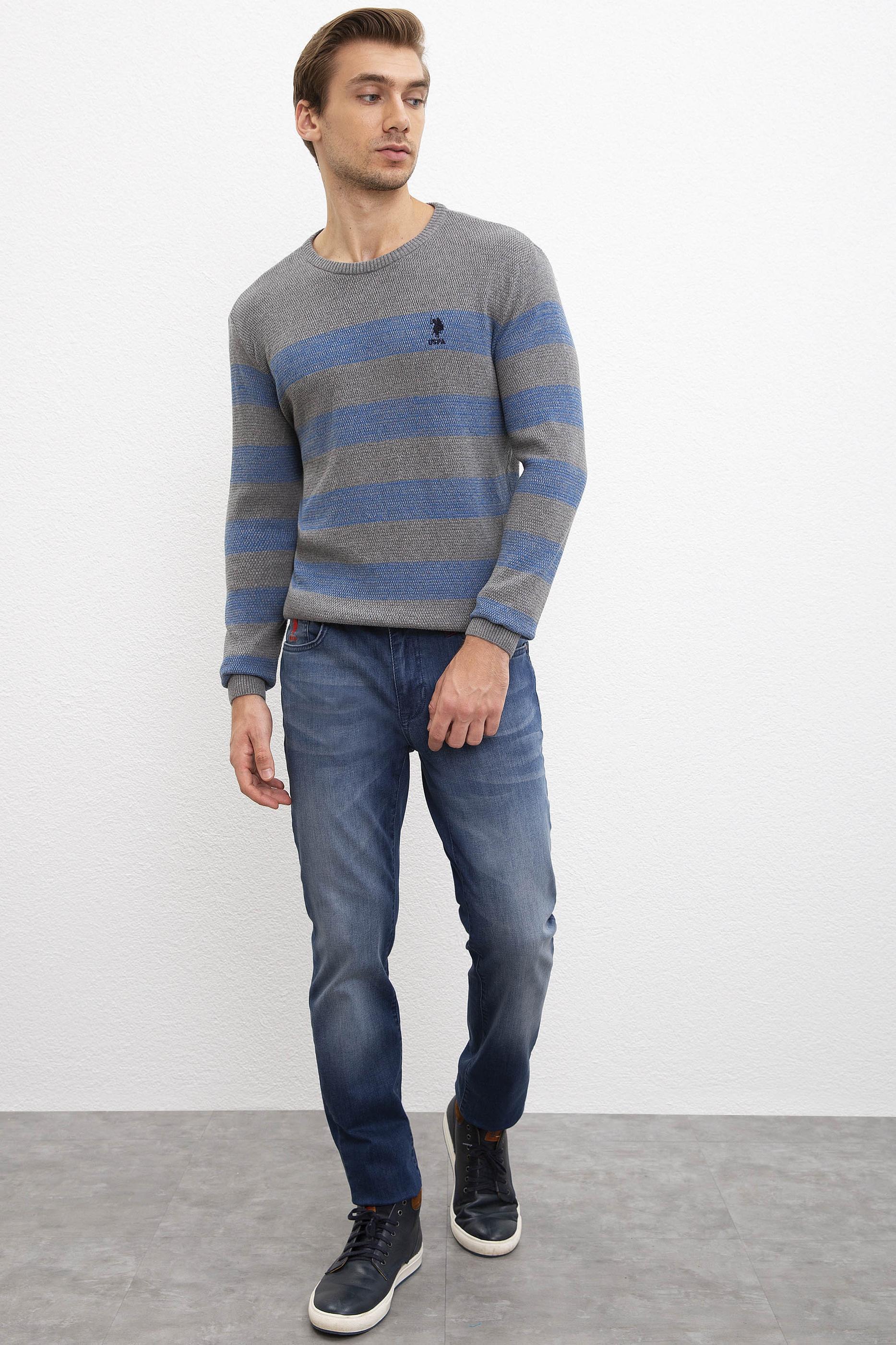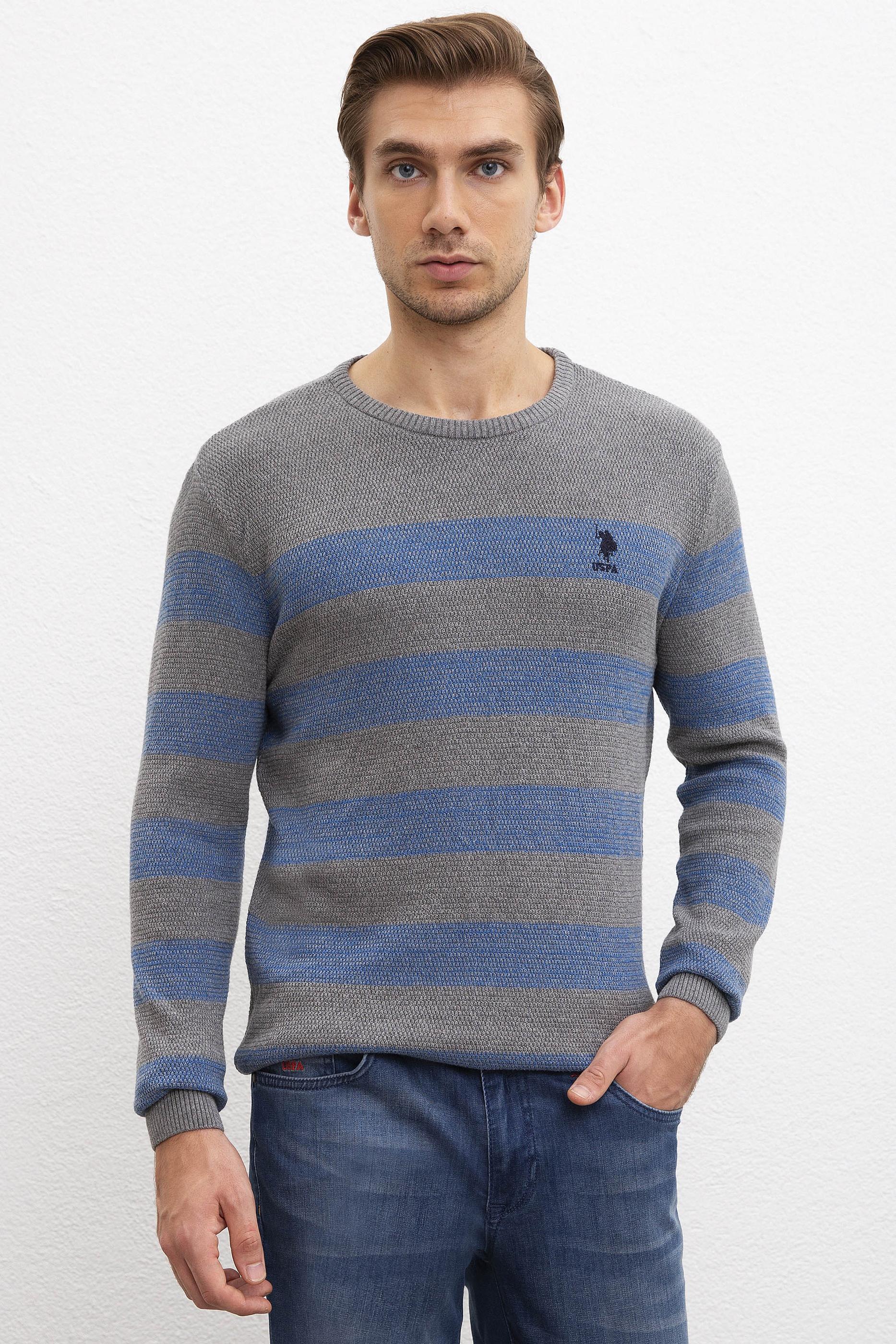 Erkek Gri Melanj Bisiklet Yaka Triko Kazak