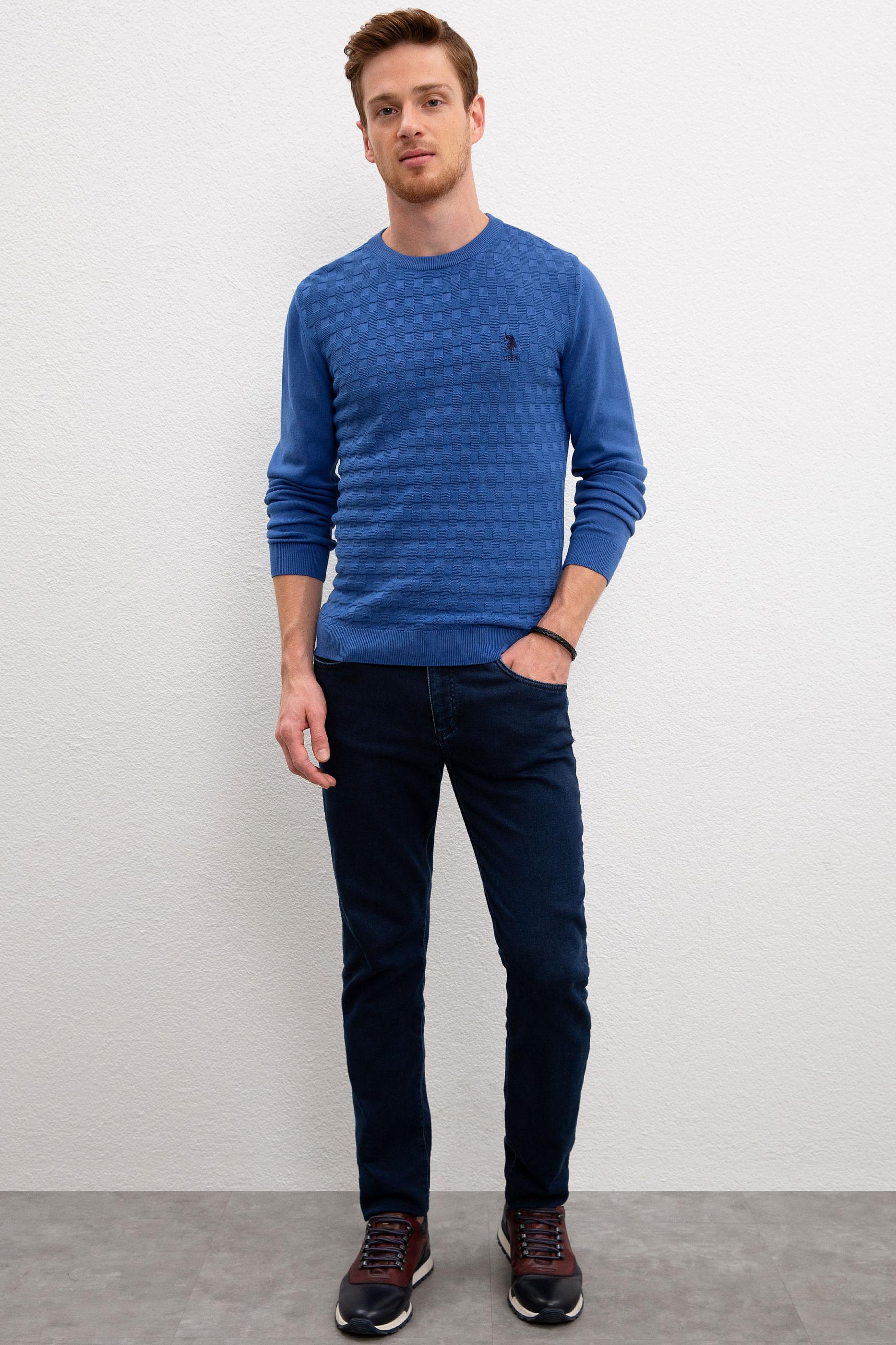 Erkek Koyu Mavi Bisiklet Yaka Triko Kazak Basic