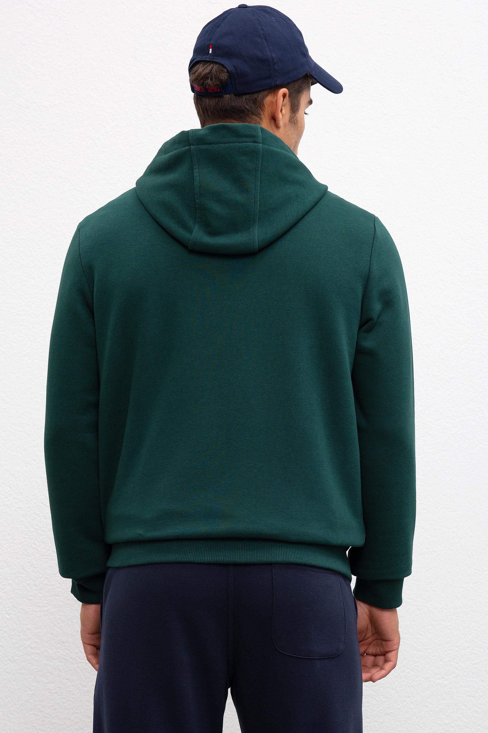 - Erkek Koyu Yeşil Kapüşonlu Fermuarlı Sweatshirt