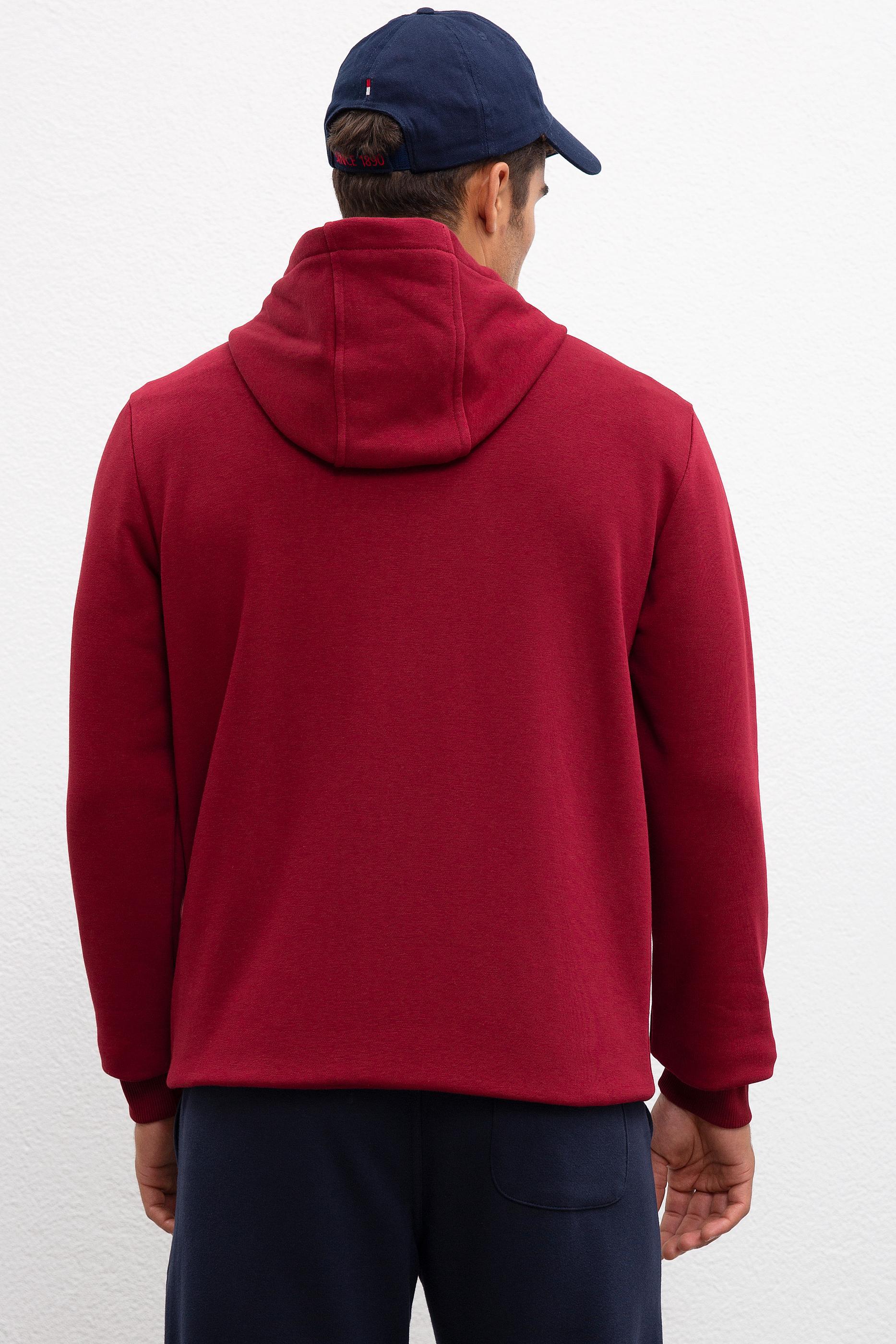 - Erkek Bordo Kapüşonlu Fermuarlı Sweatshirt