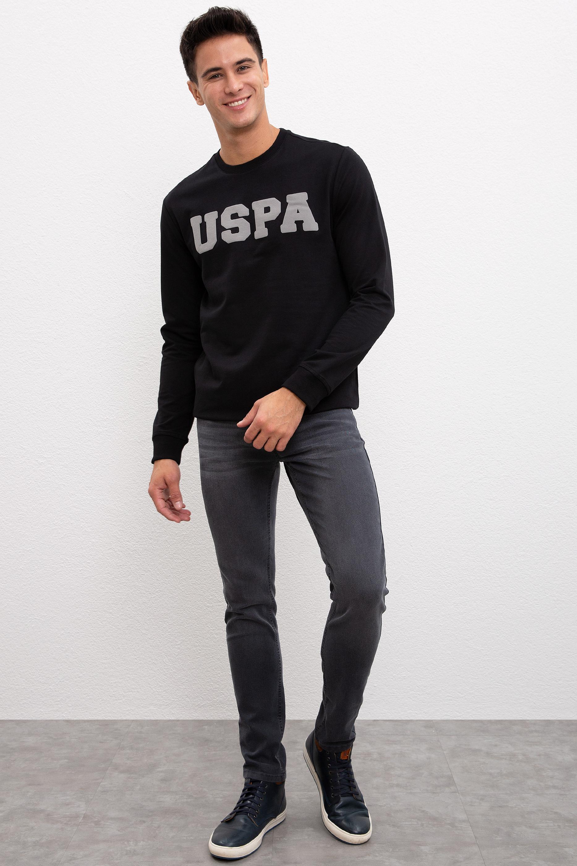 Erkek Siyah Bisiklet Yaka Sweatshirt Basic
