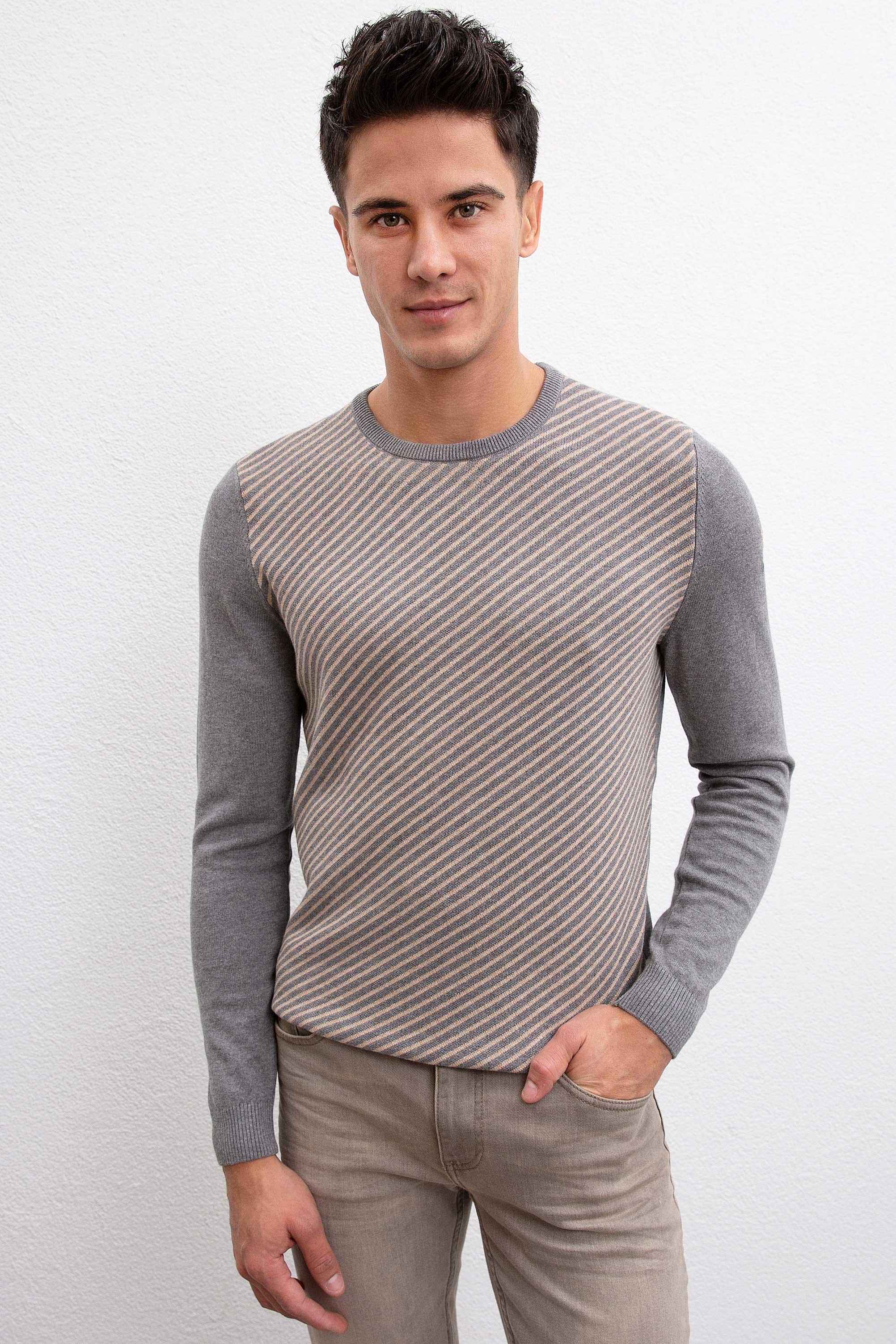 Erkek Gri Melanj Bisiklet Yaka Triko Kazak - 50207697010