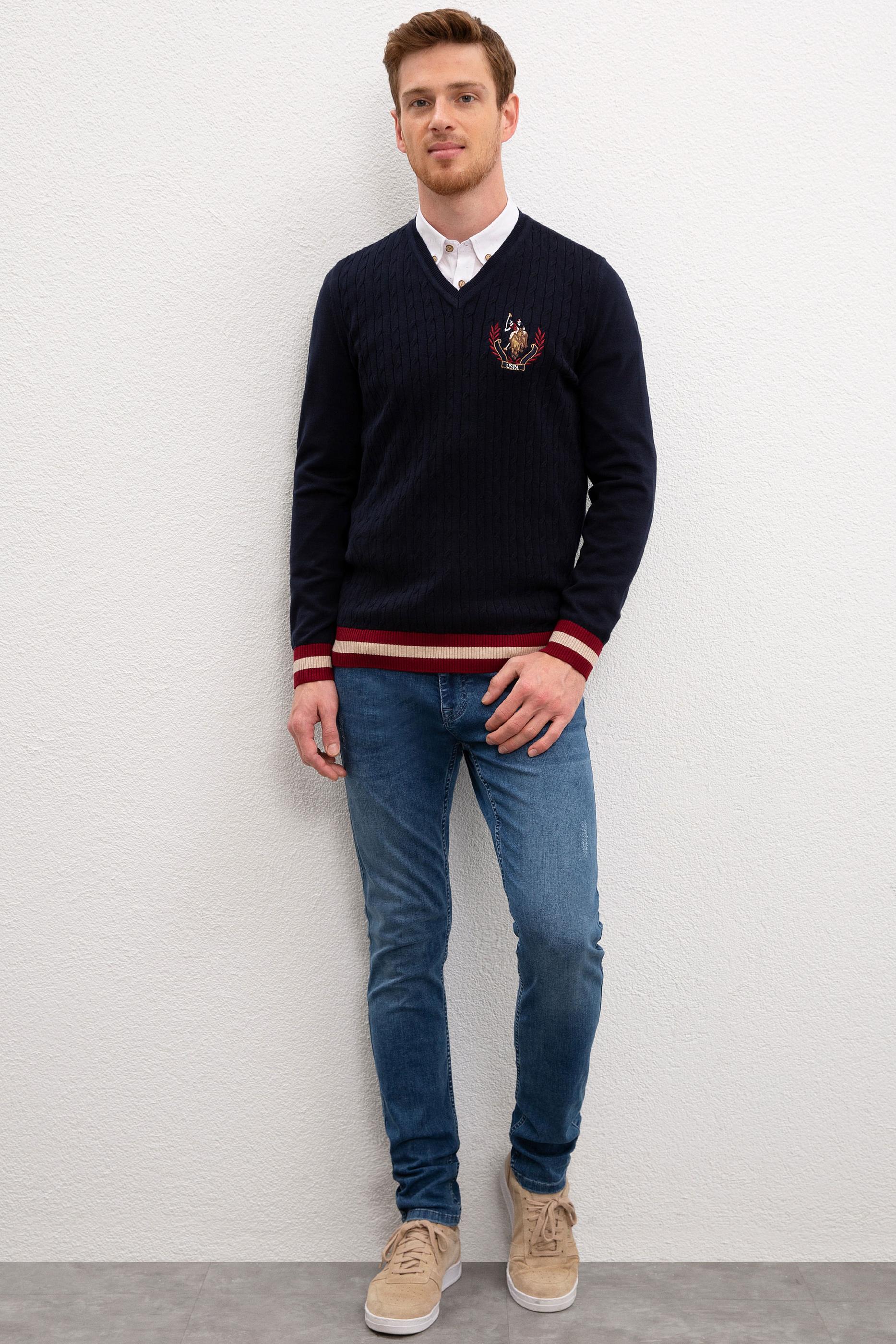Erkek Lacivert Bisiklet Yaka Triko Kazak
