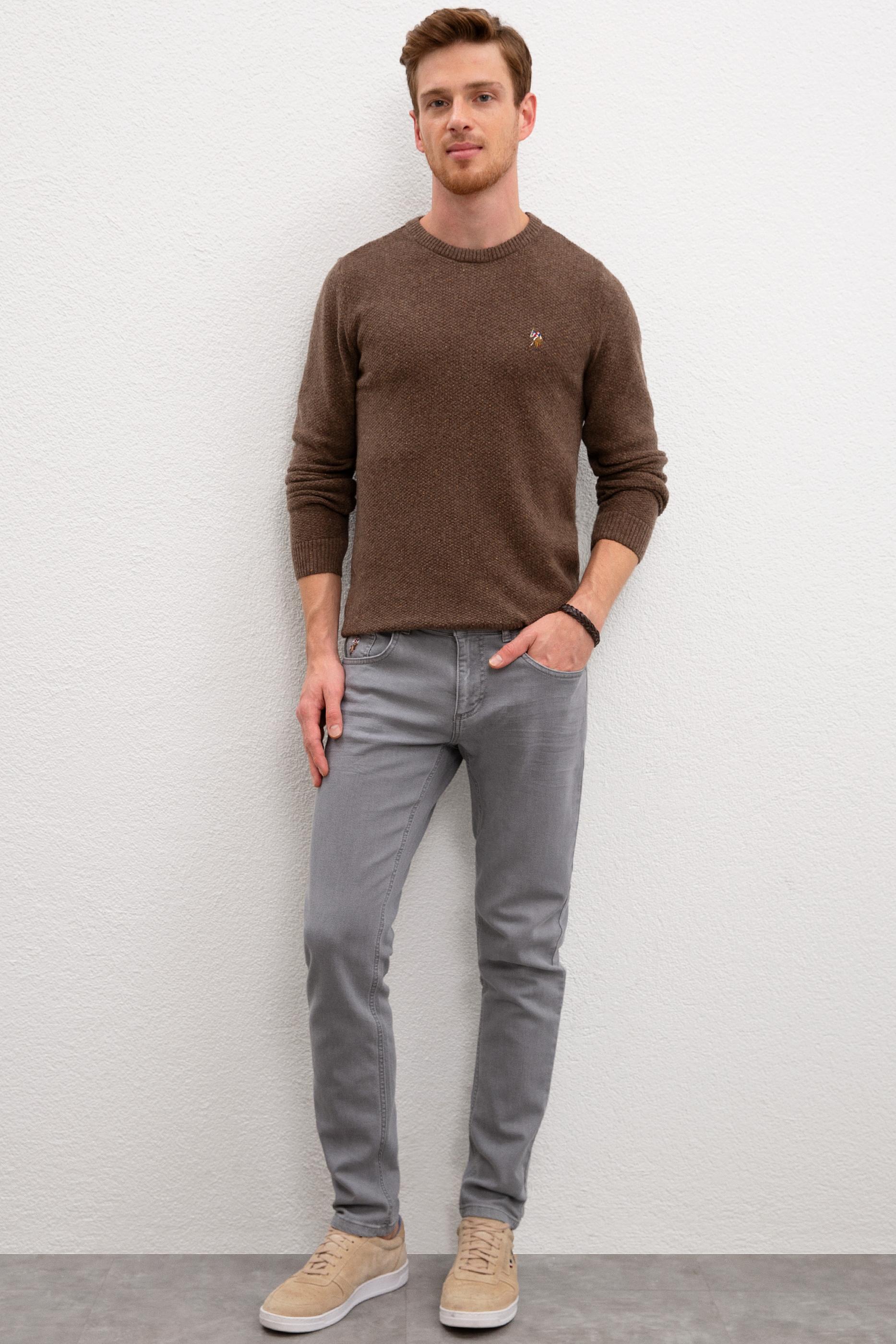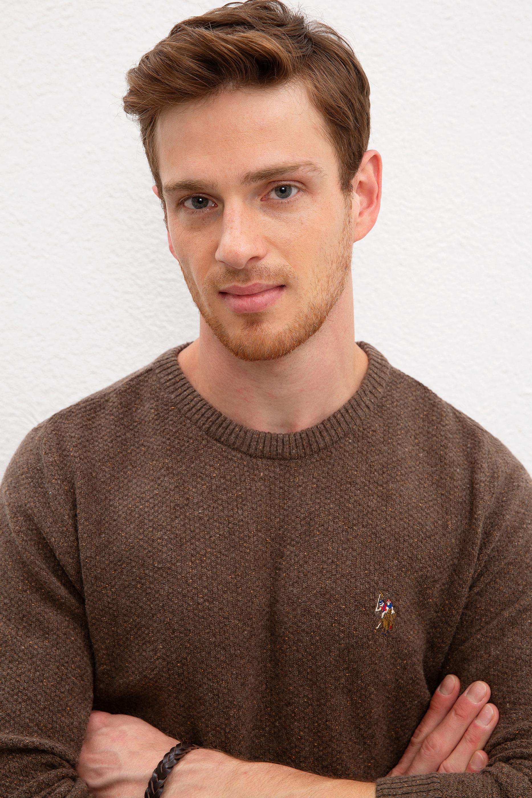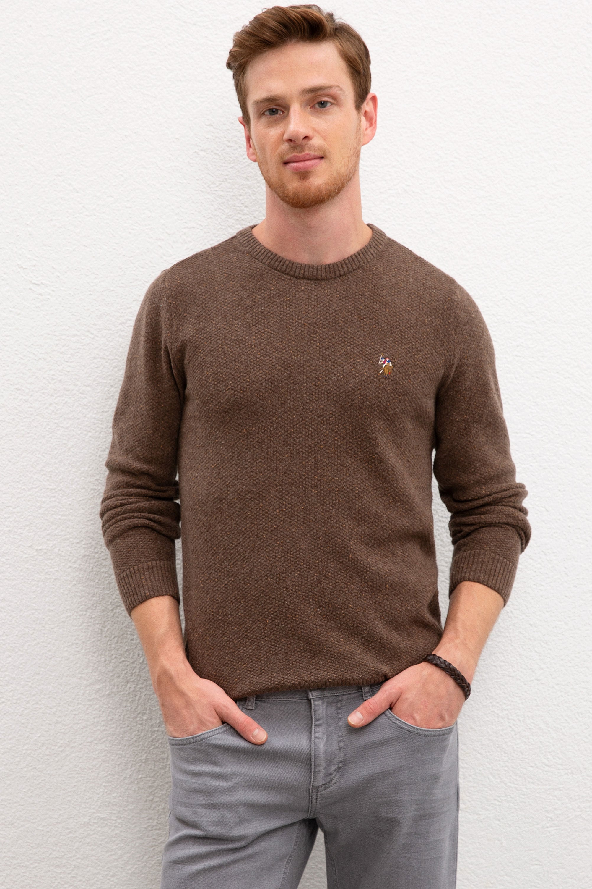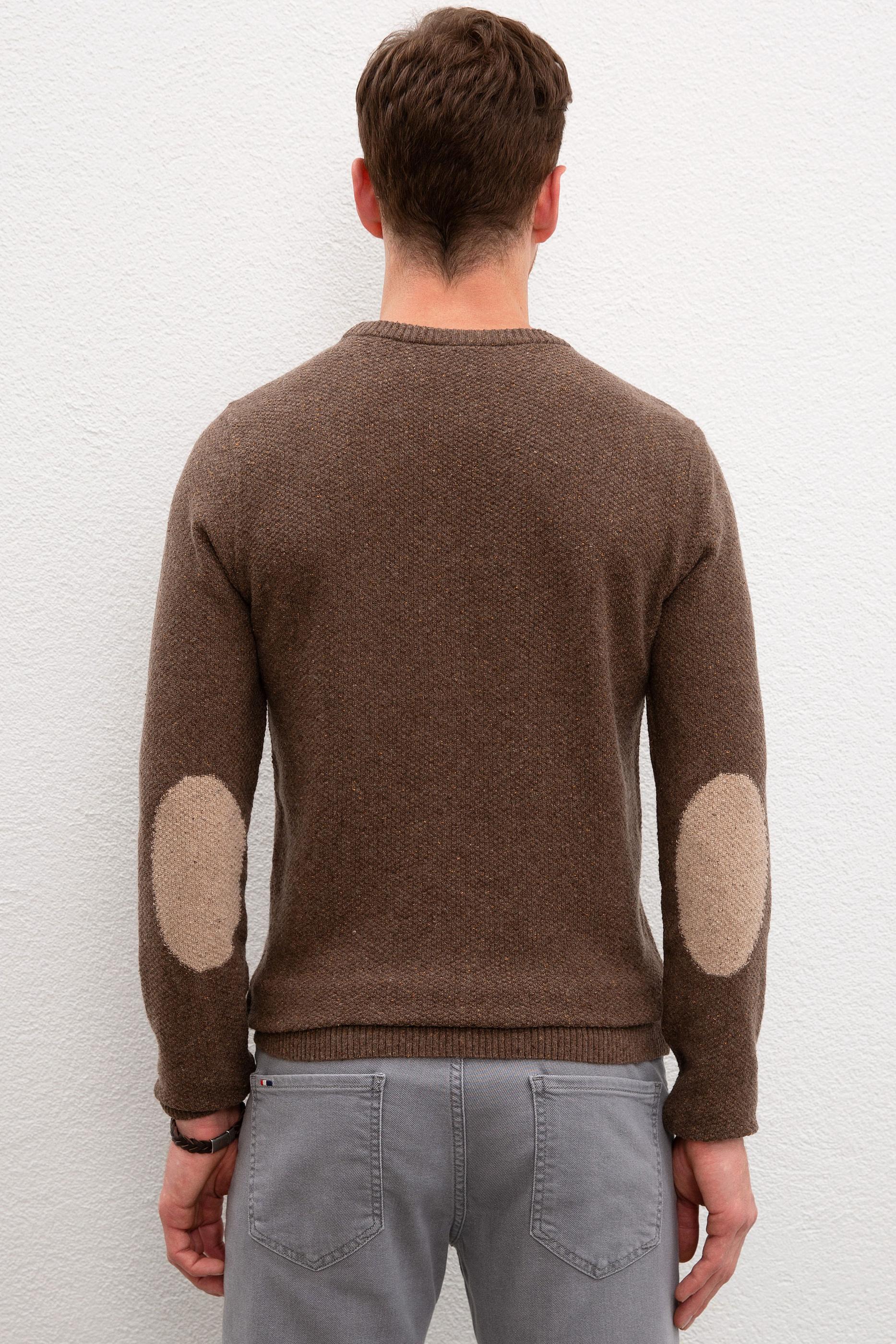 Erkek Kahverengi Melanj Bisiklet Yaka Triko Kazak