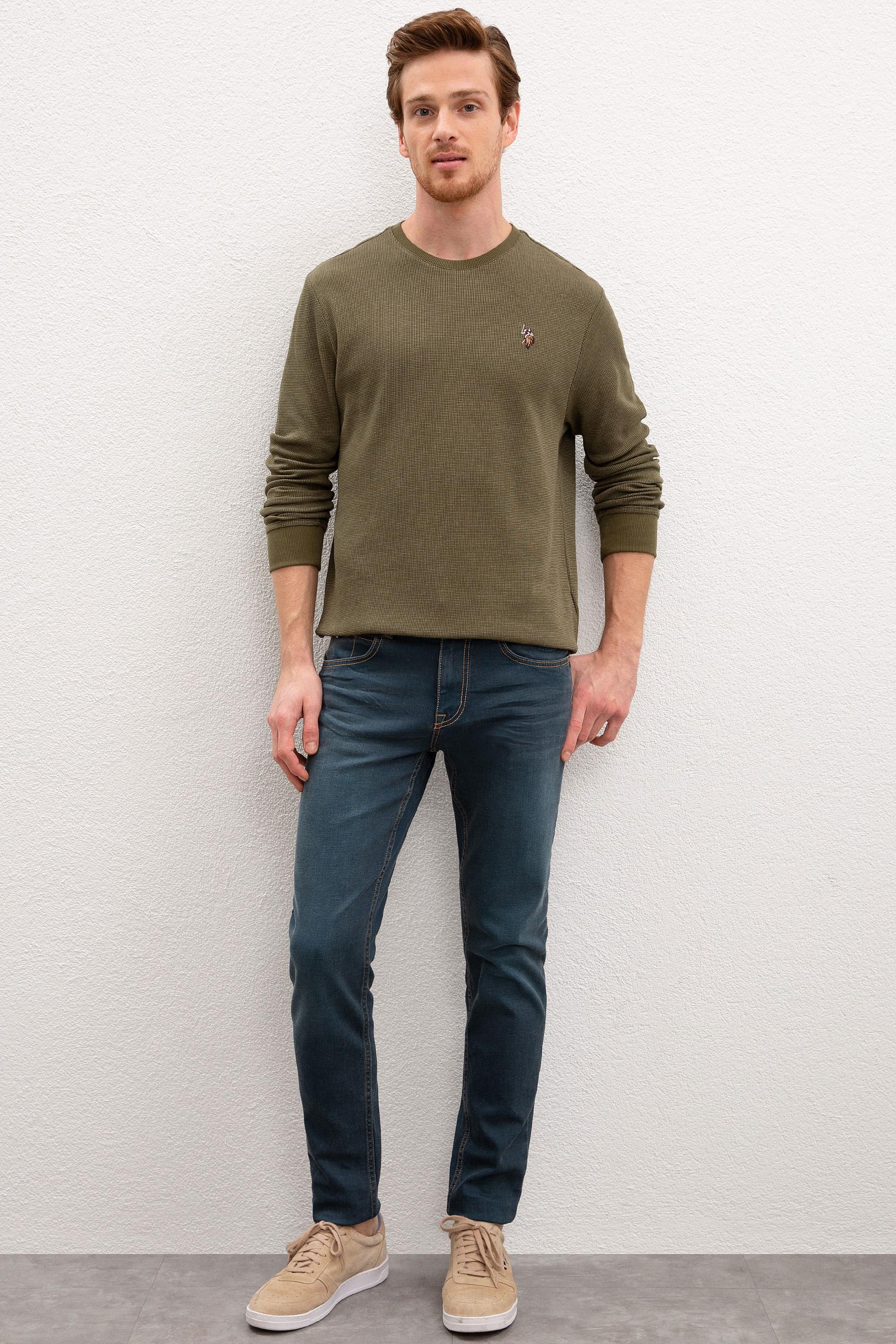 Erkek Koyu Haki Bisiklet Yaka Sweatshirt