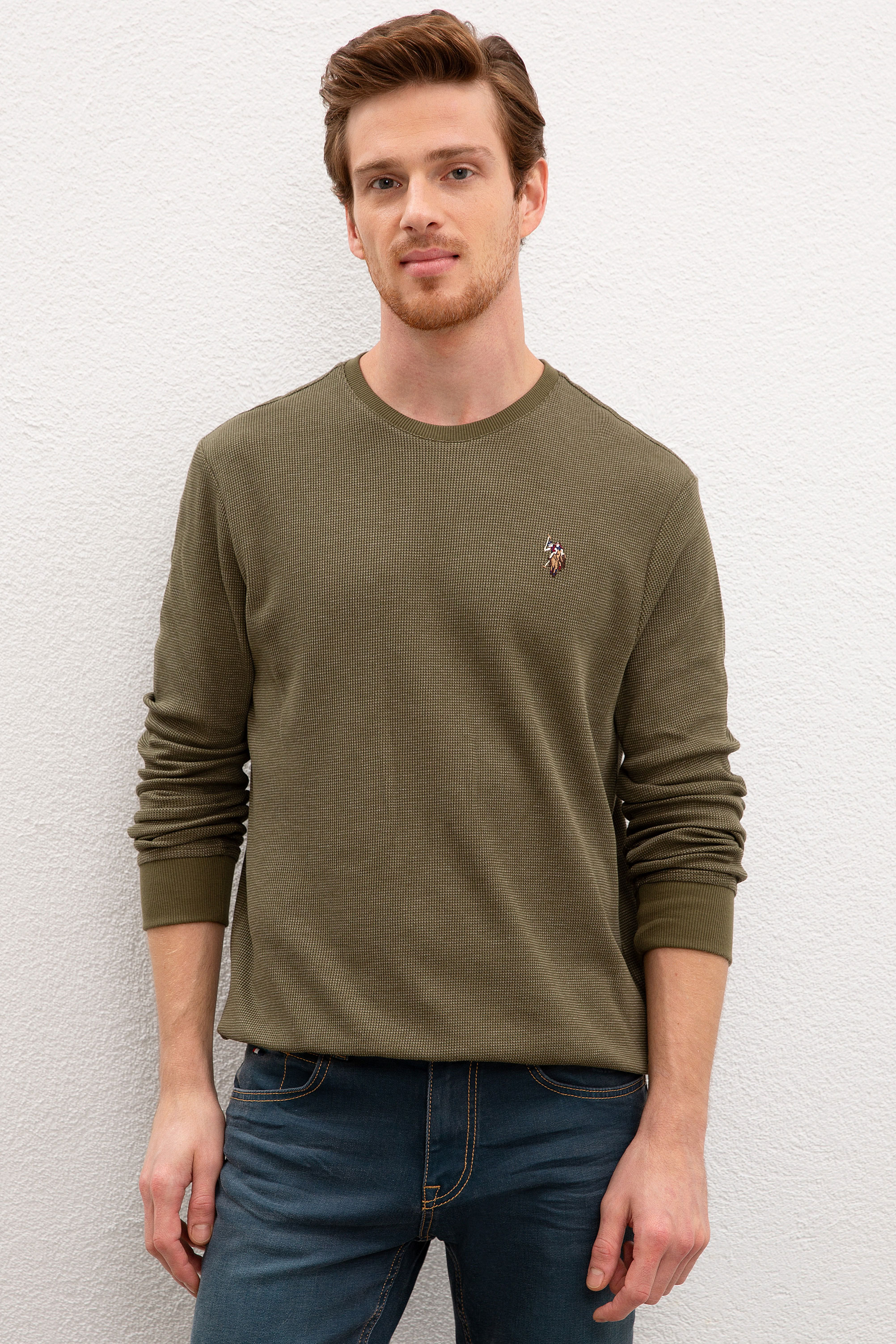 - Erkek Koyu Haki Bisiklet Yaka Sweatshirt