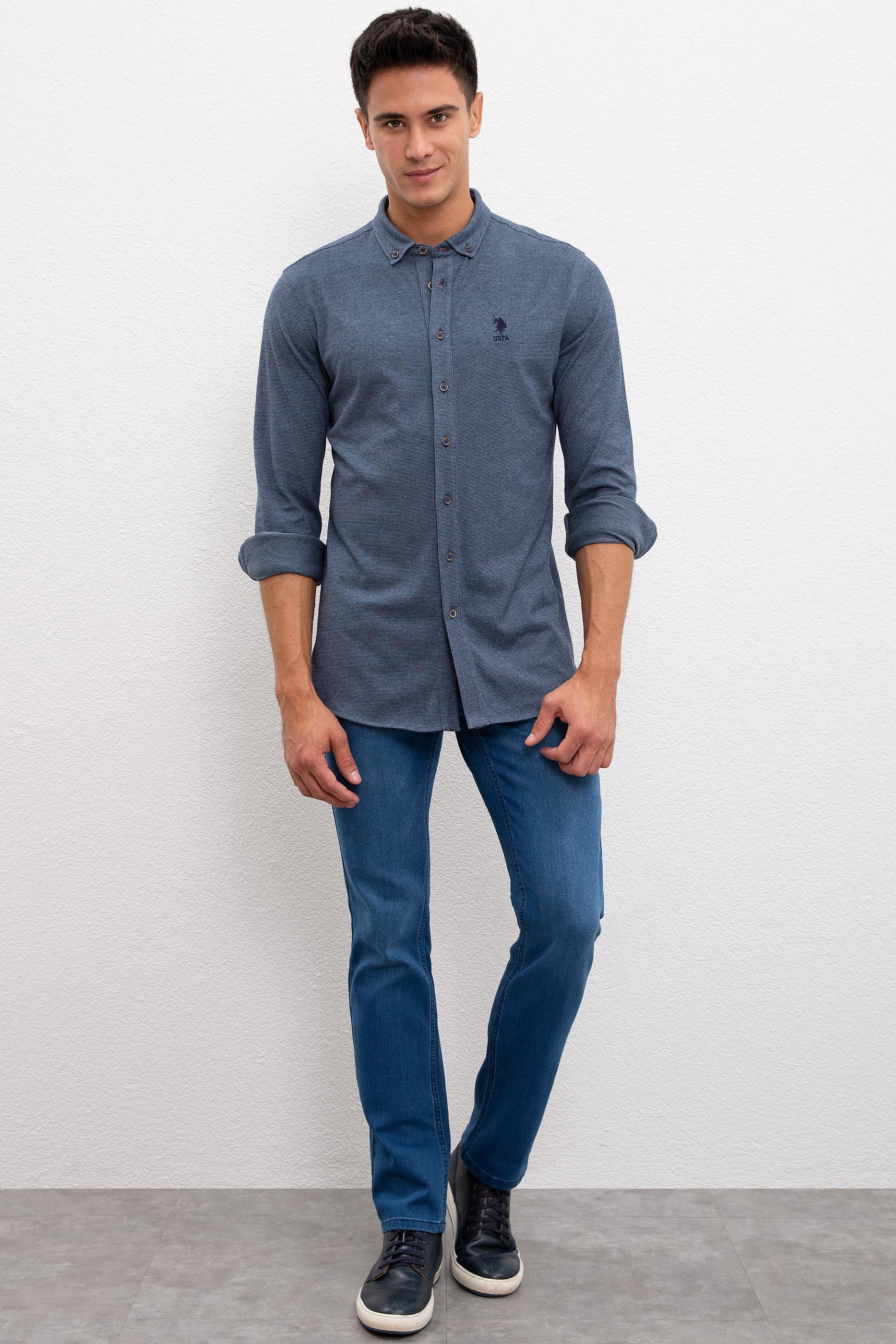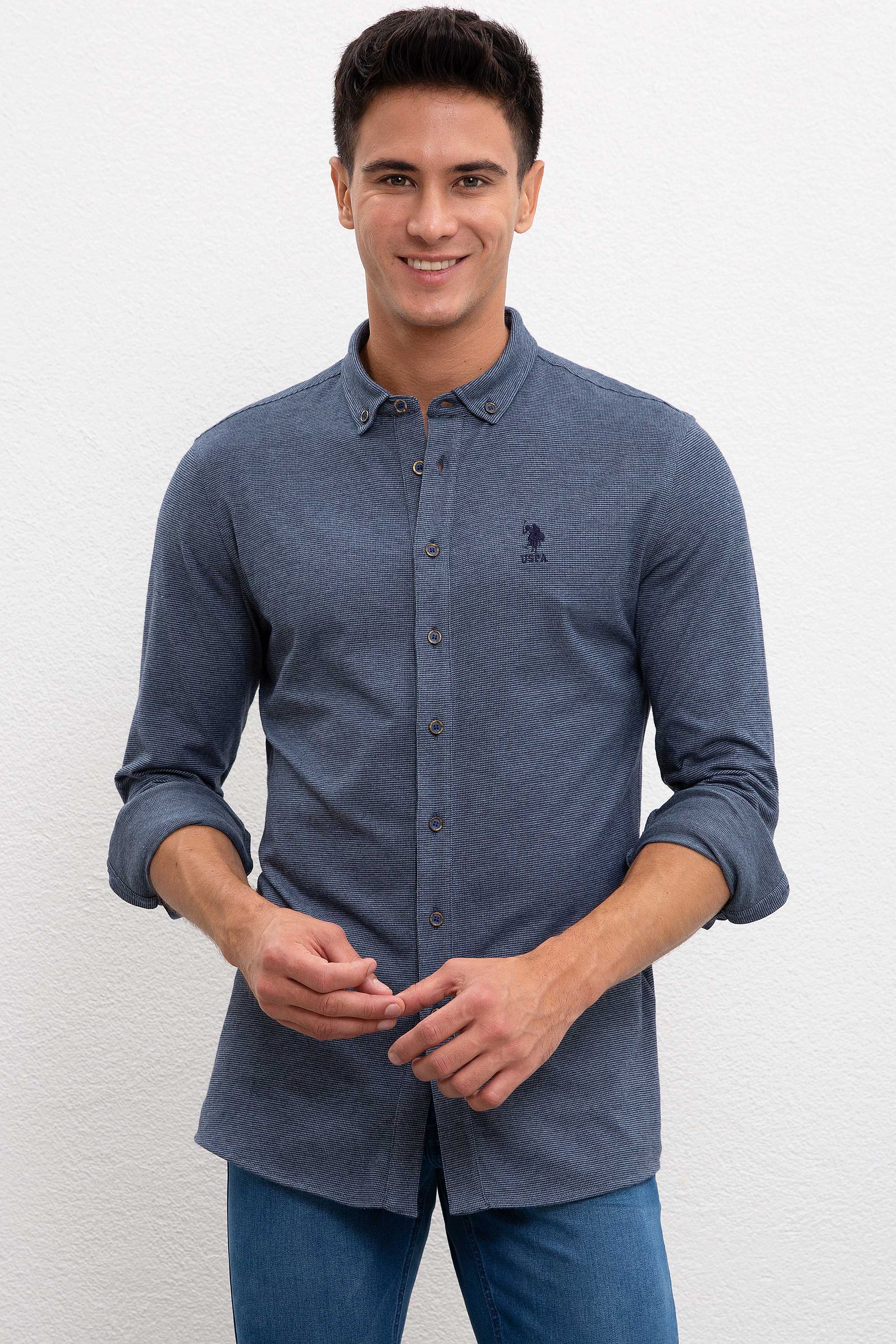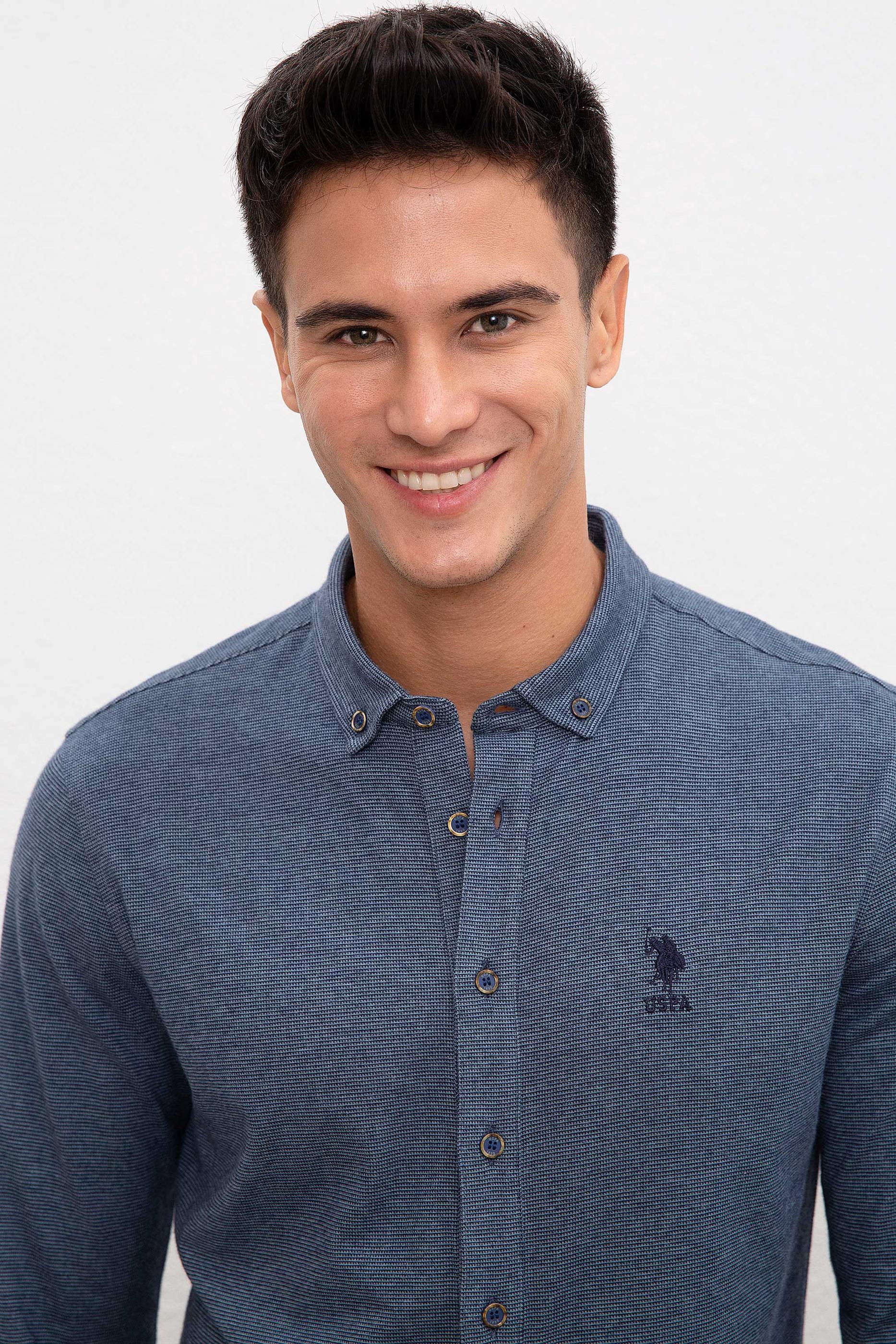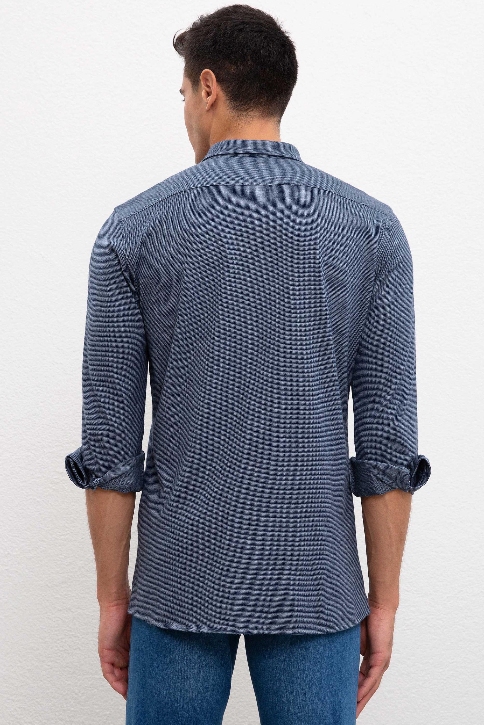 Erkek Lacivert Gömlek Yaka Sweatshirt