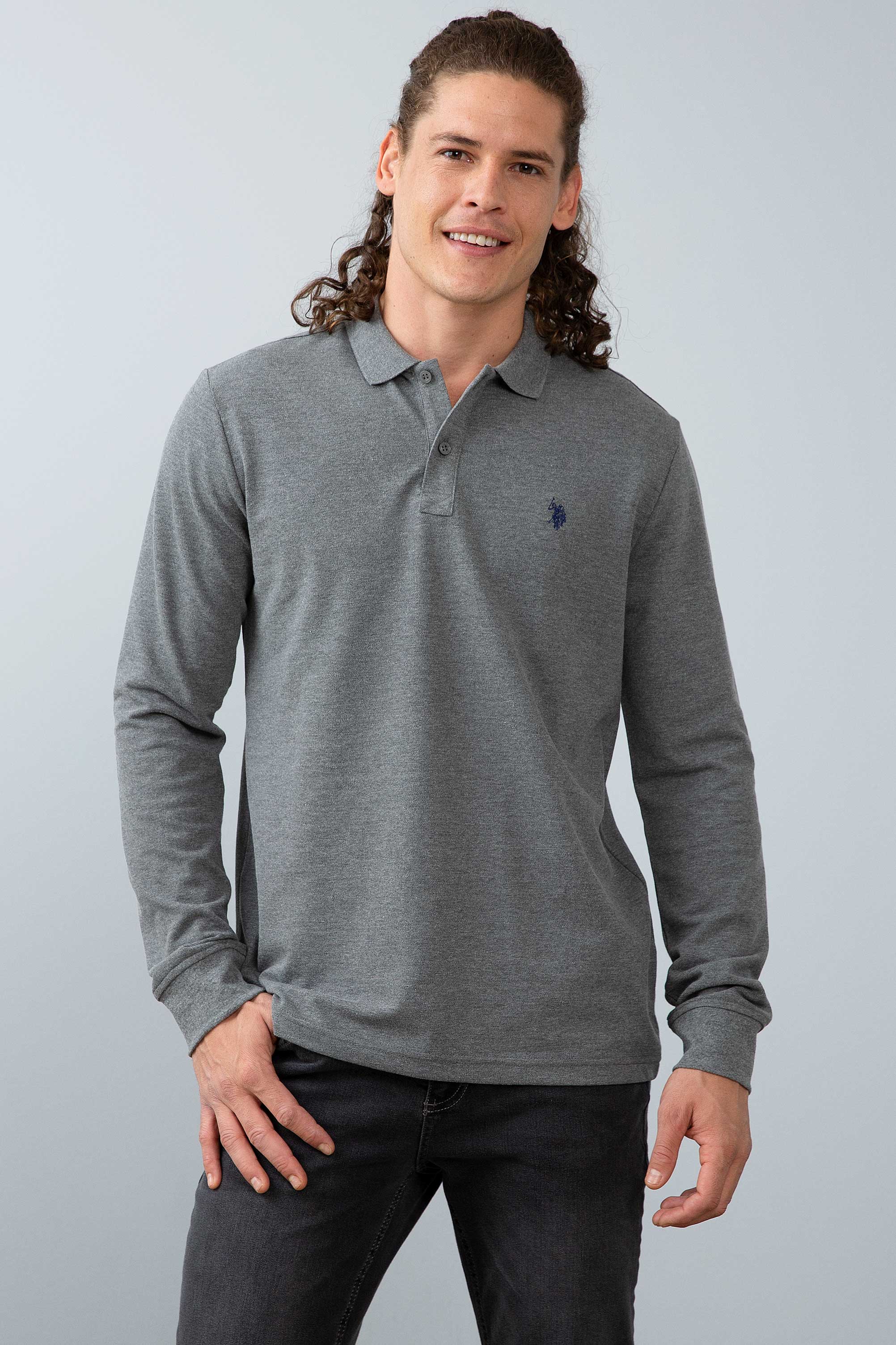 Erkek Antrasit Melanj Polo Yaka Sweatshirt Basic