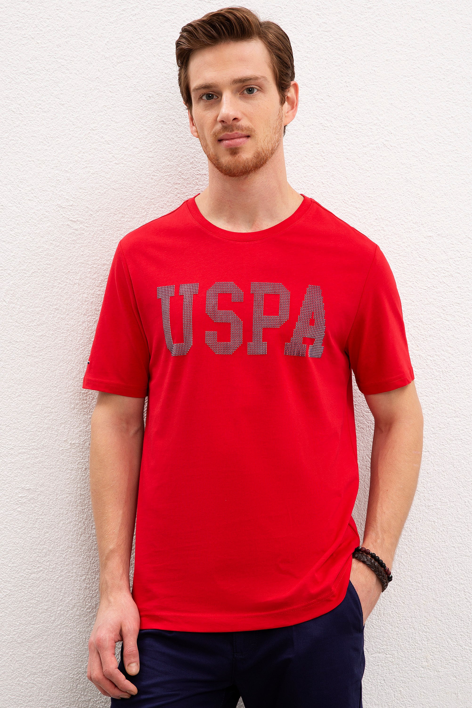 Erkek Kırmızı Bisiklet Yaka T-Shirt