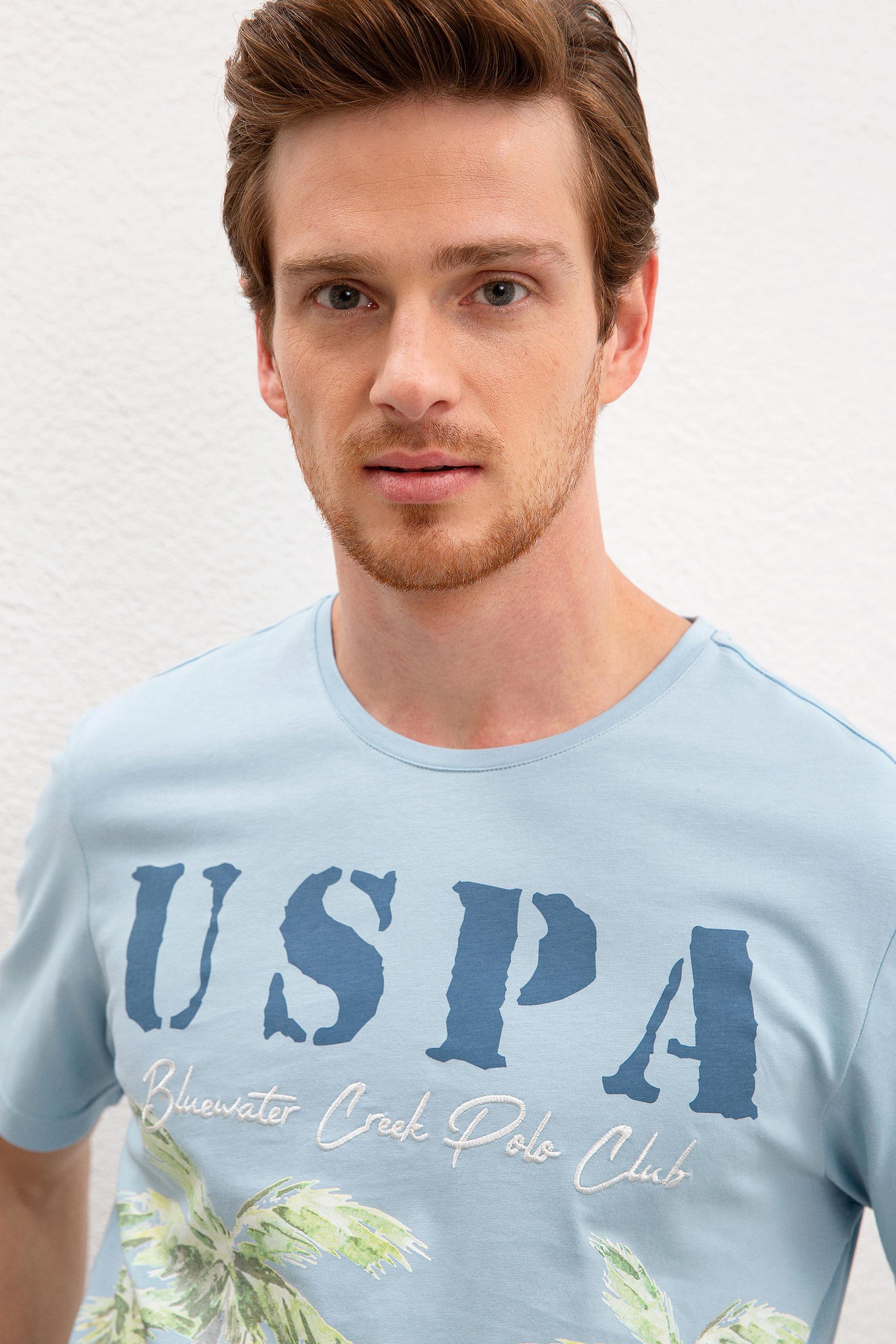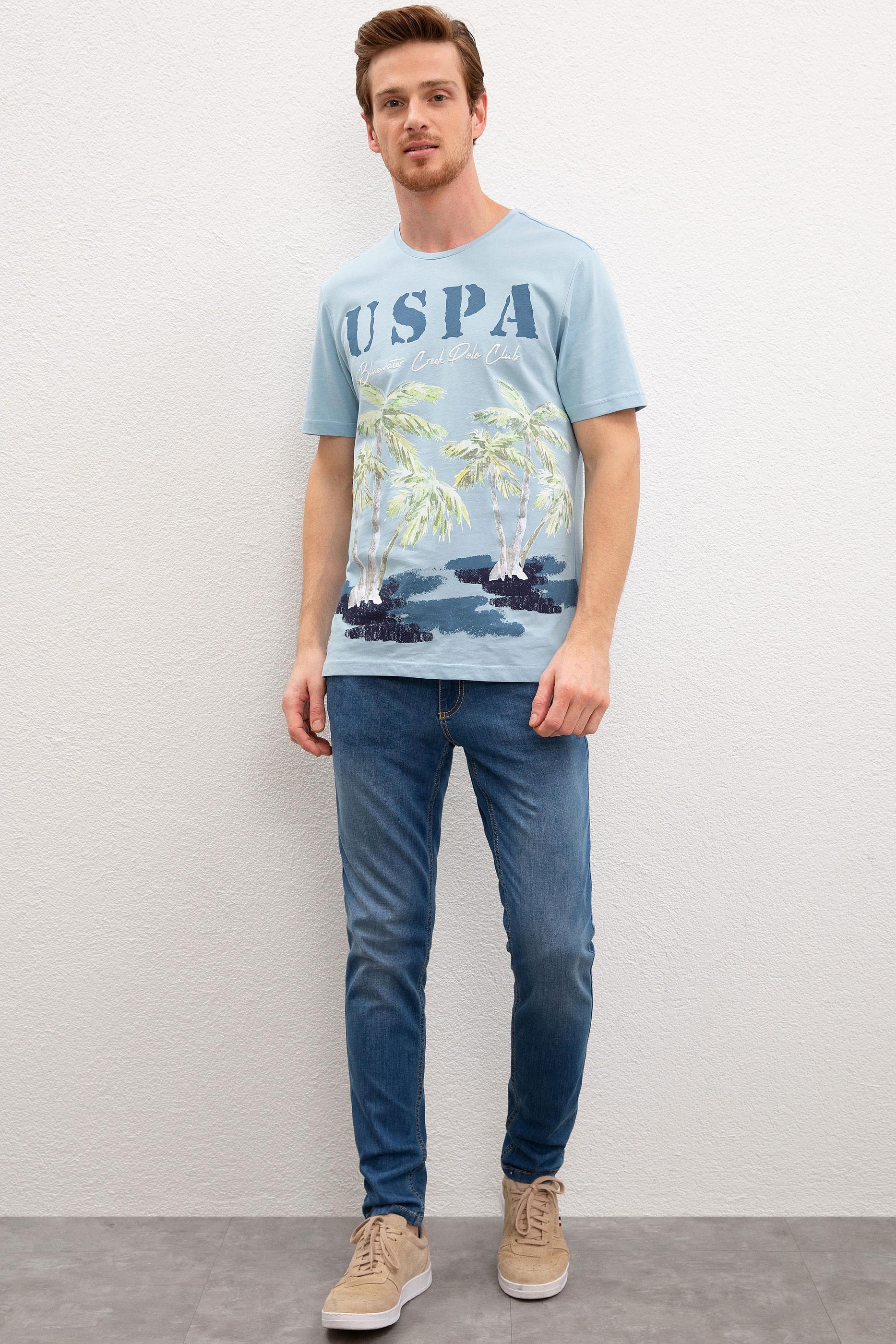 Erkek Açık İndigo Bisiklet Yaka T-Shirt