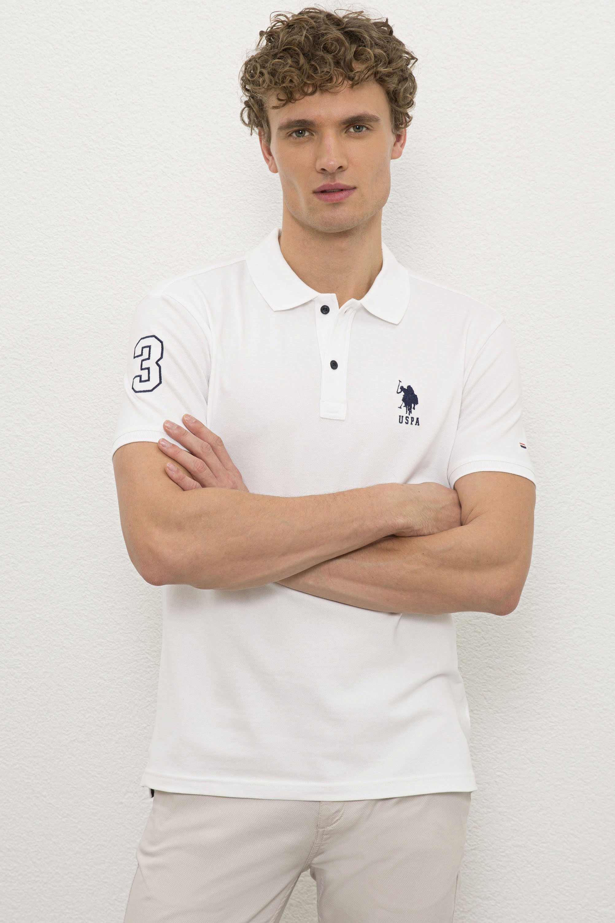 - Erkek Beyaz Polo Yaka T-Shirt Basic