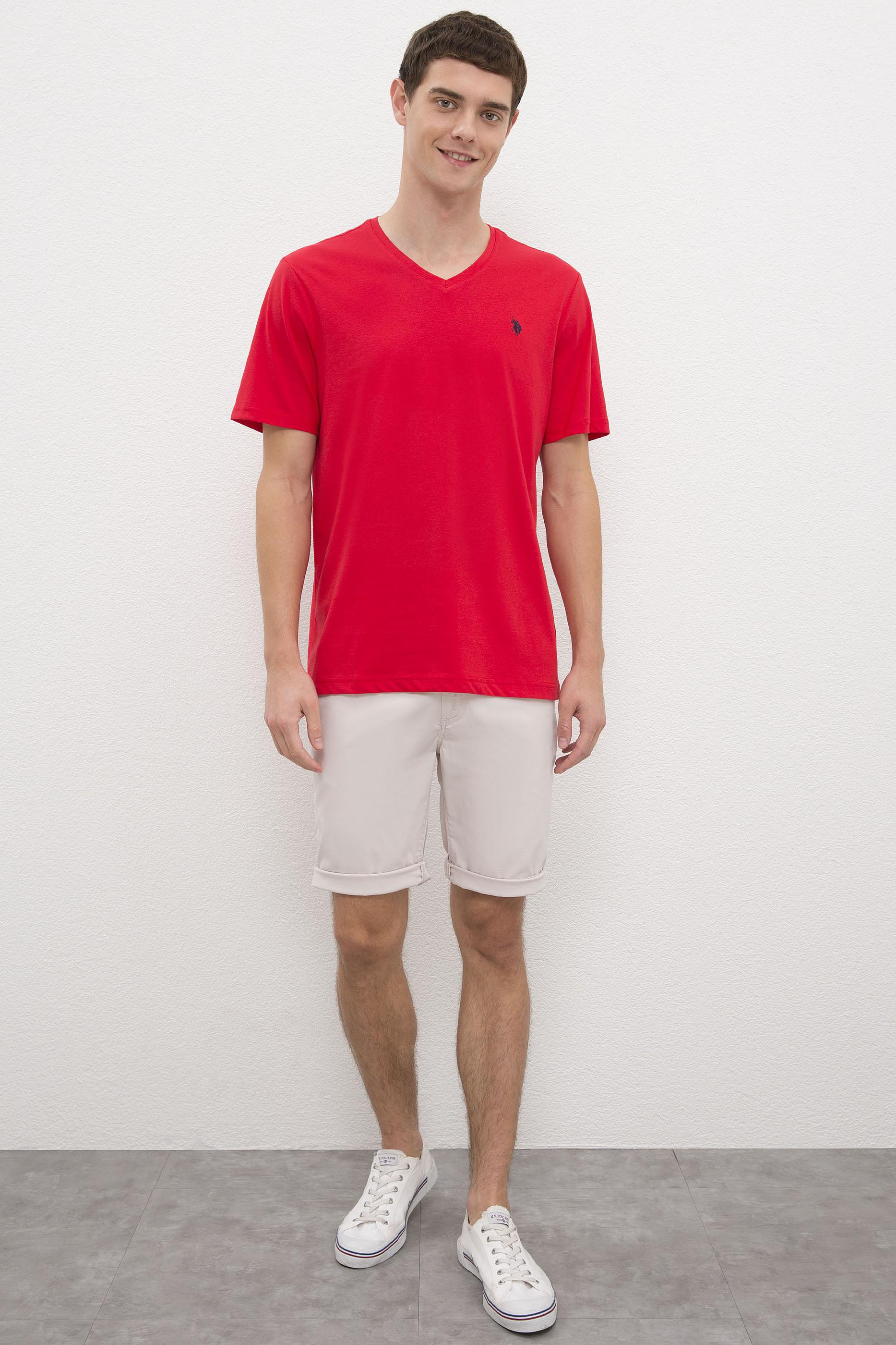 - Erkek Kırmızı V-Yaka T-Shirt Basic