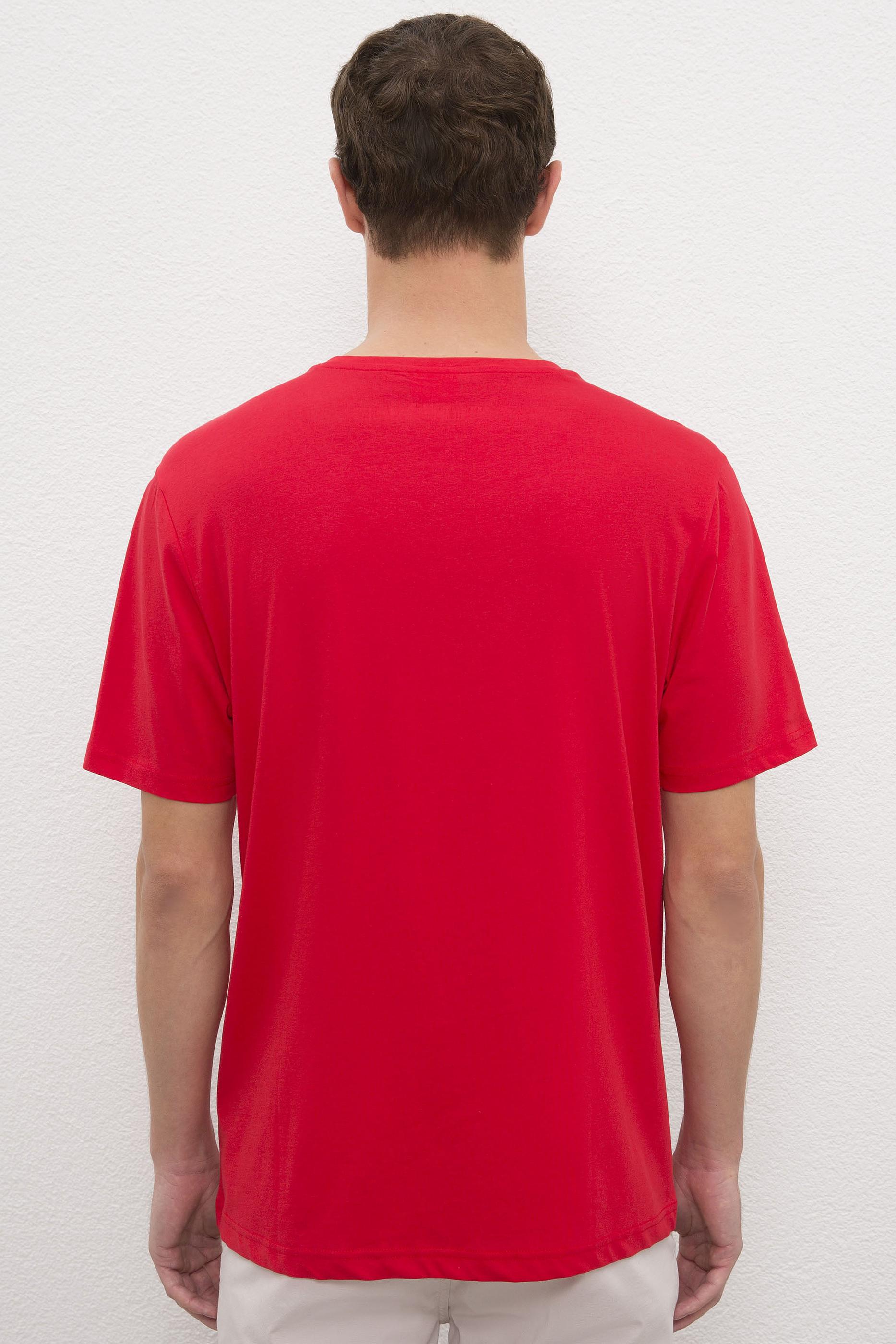 Erkek Kırmızı V-Yaka T-Shirt Basic