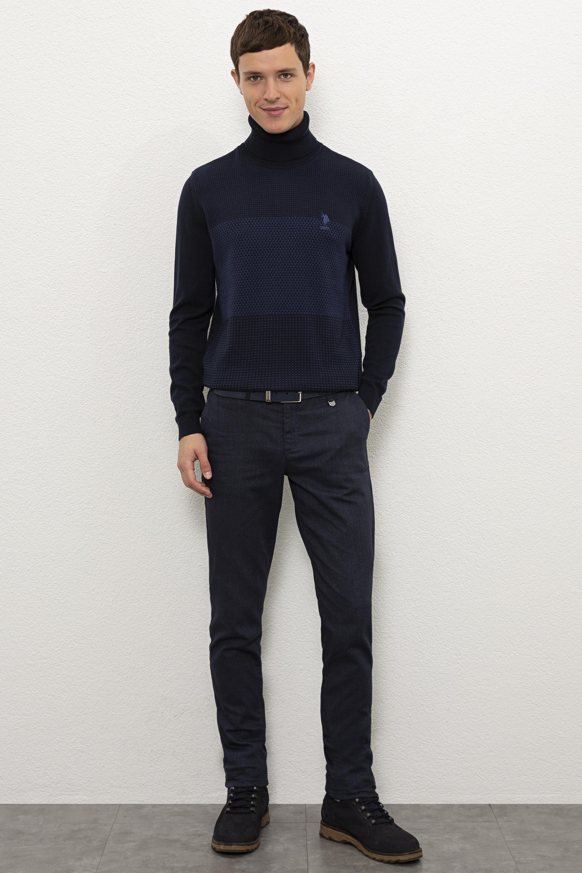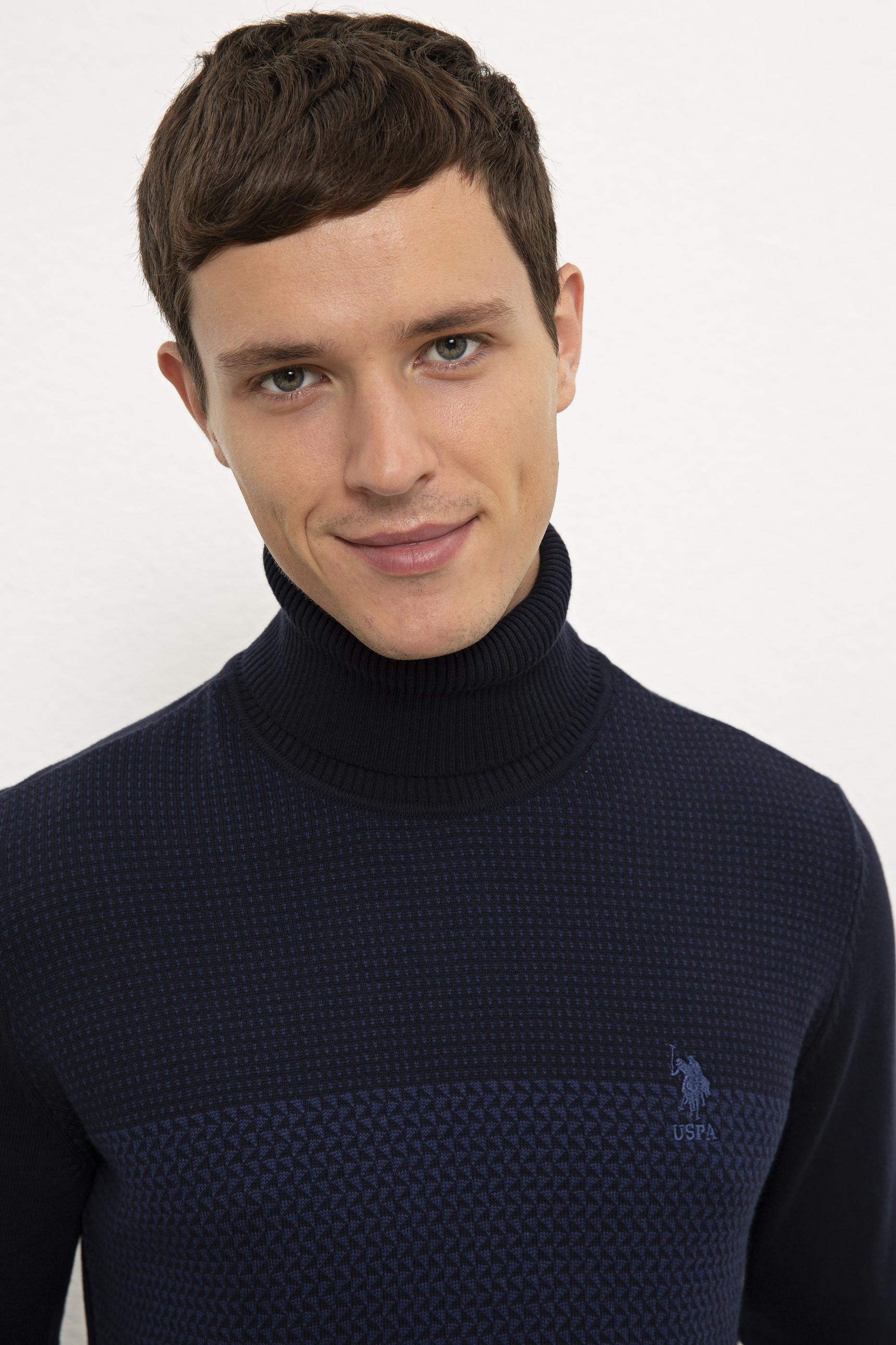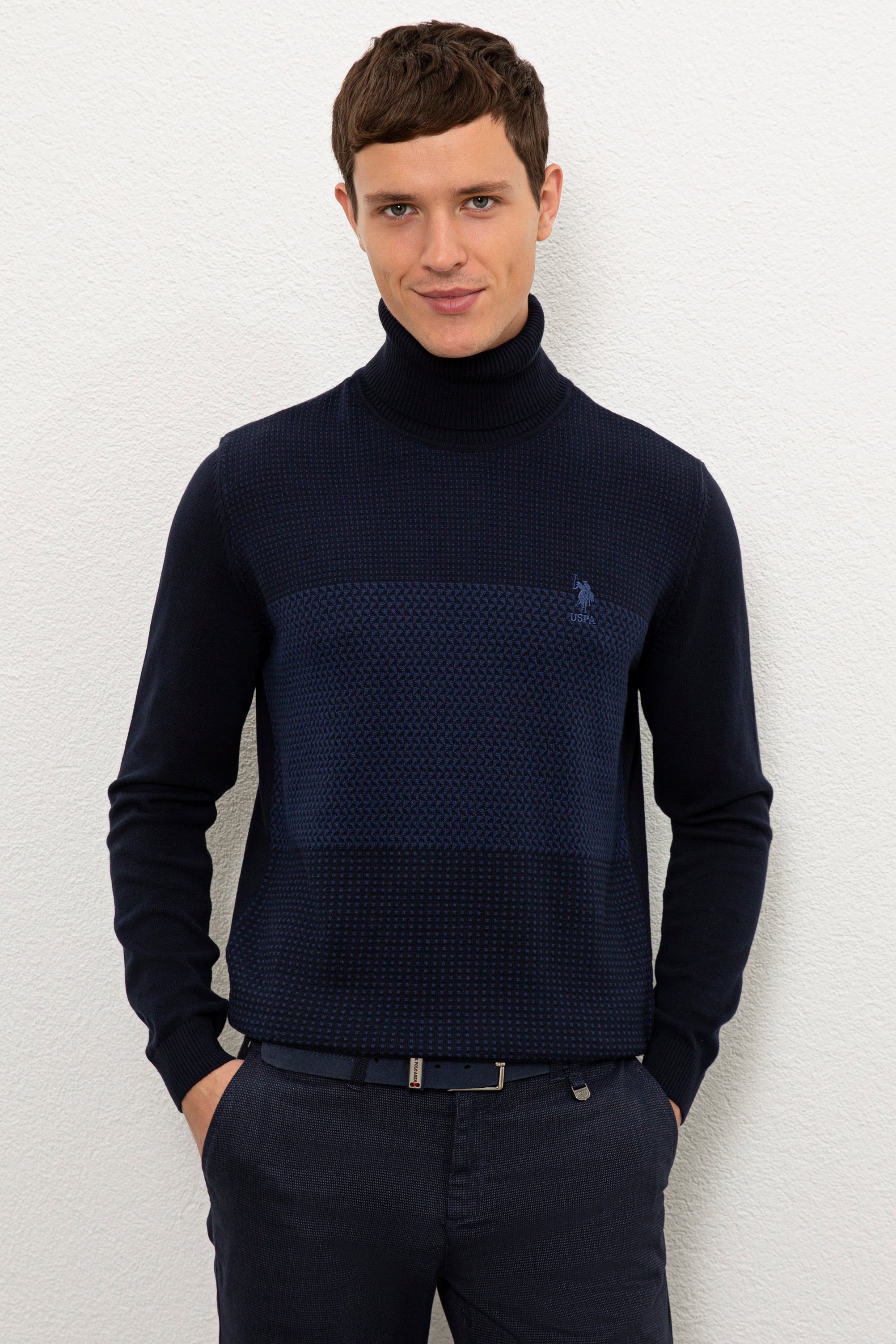 Erkek Lacivert Balıkçı Yaka Triko Kazak