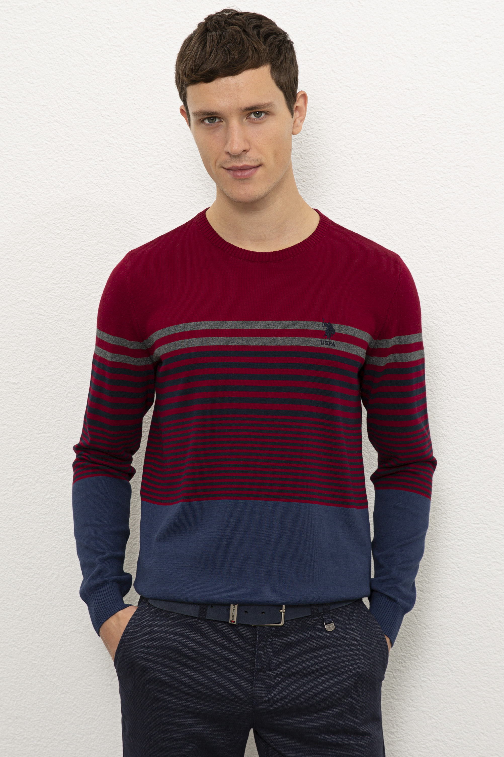 Erkek Bordo Bisiklet Yaka Triko Kazak