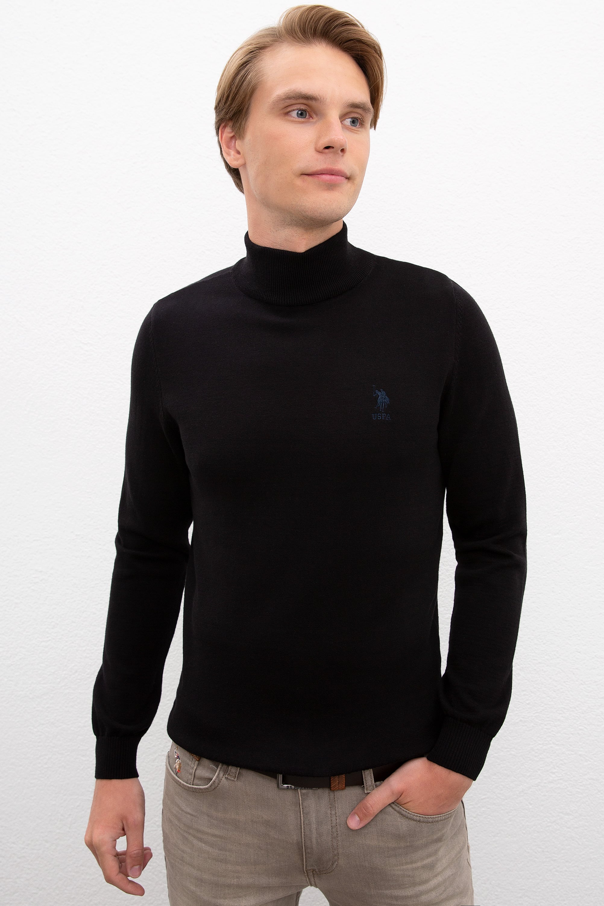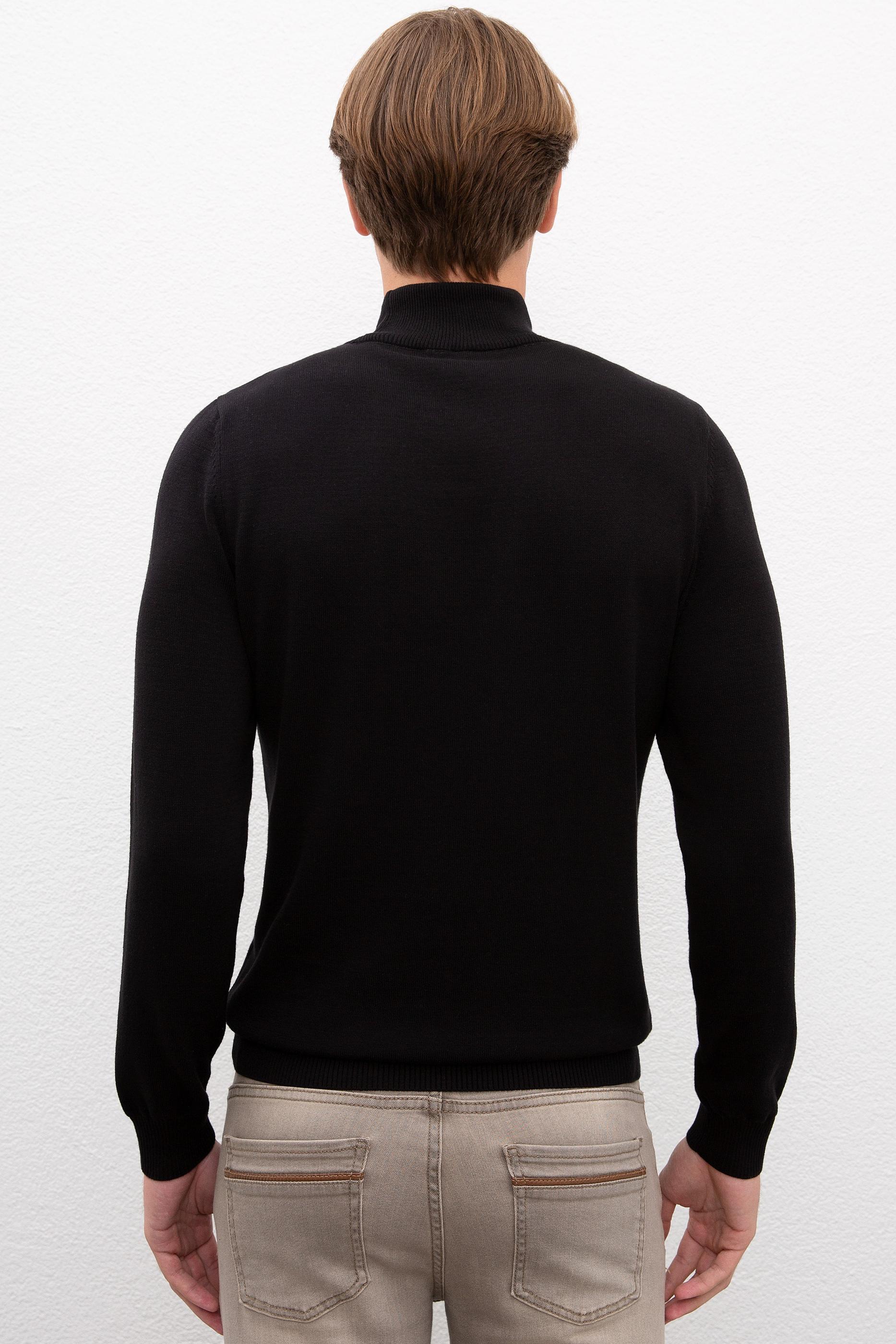 Erkek Siyah Balıkçı Yaka Triko Kazak Basic