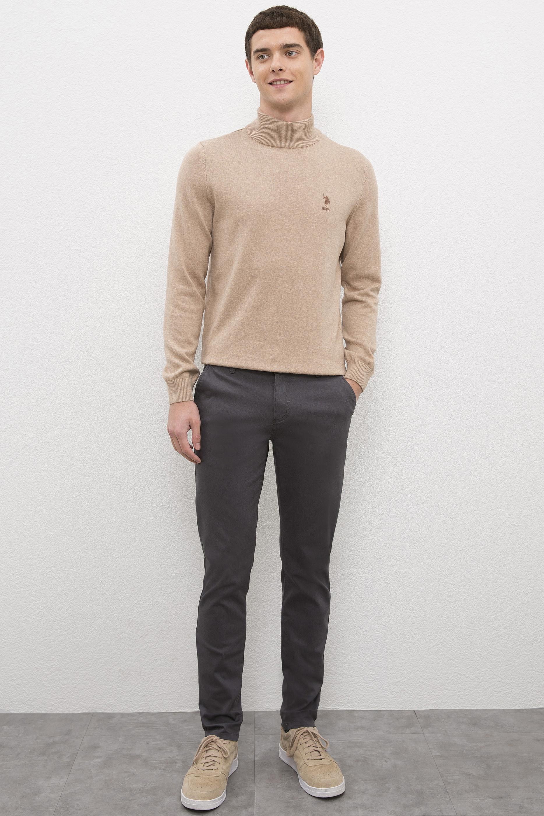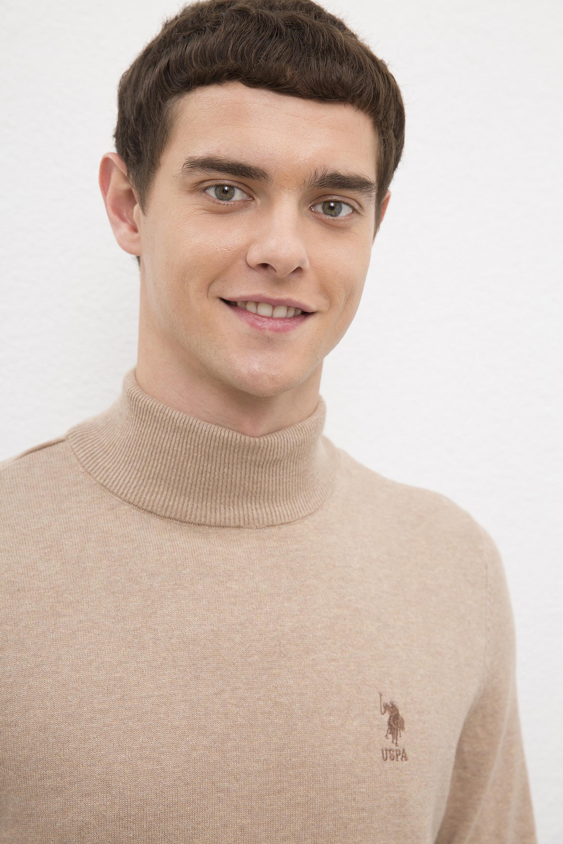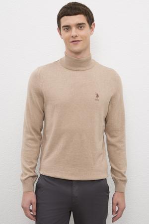 Erkek Camel Melanj Balıkçı Yaka Triko Kazak Basic