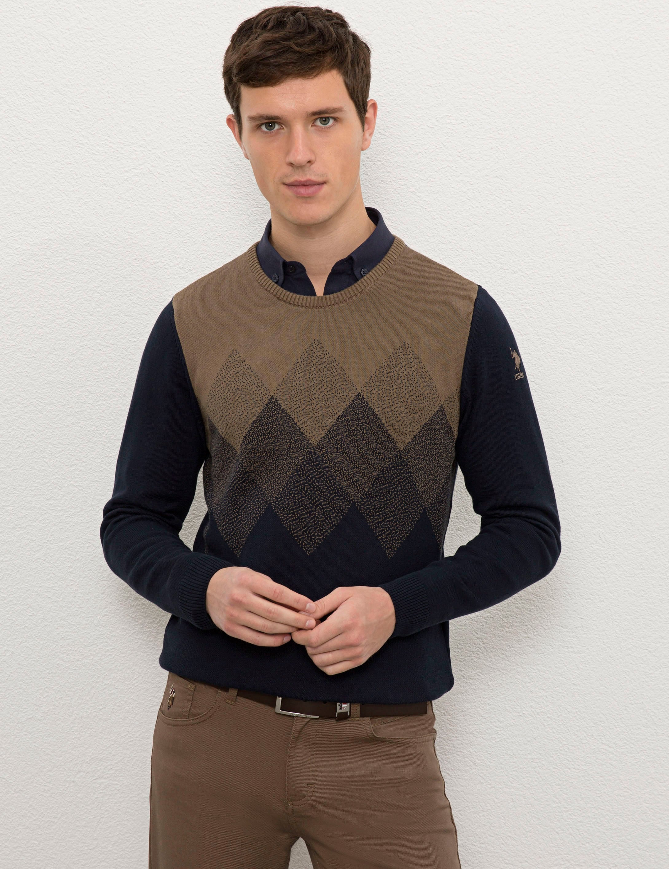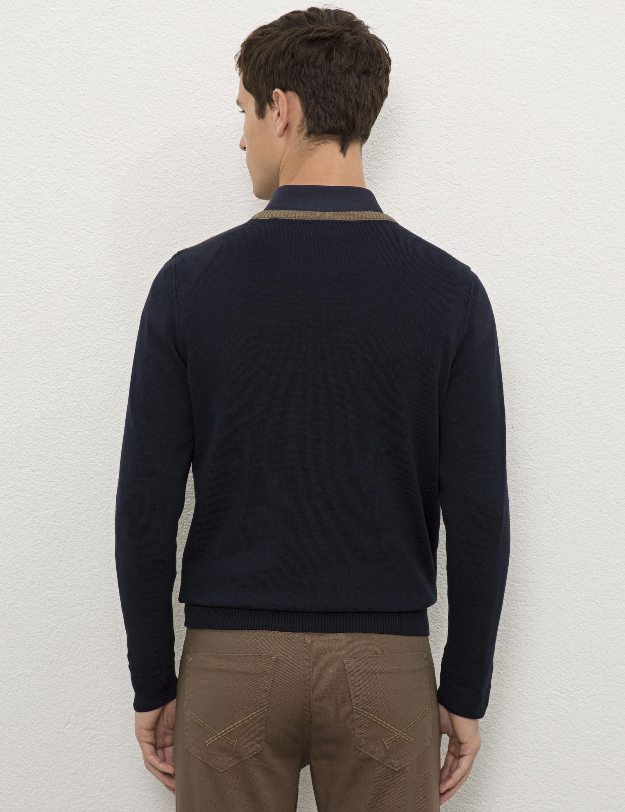 Erkek Lacivert Bisiklet Yaka Triko Kazak