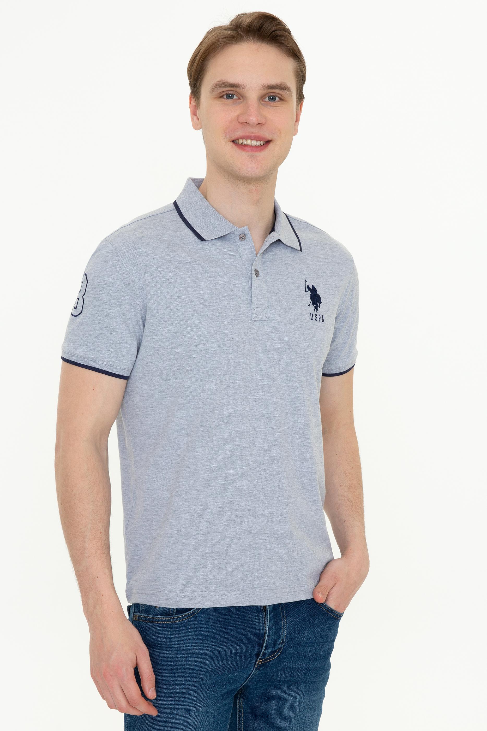 Erkek Gri Melanj Polo Yaka Basic T-Shirt