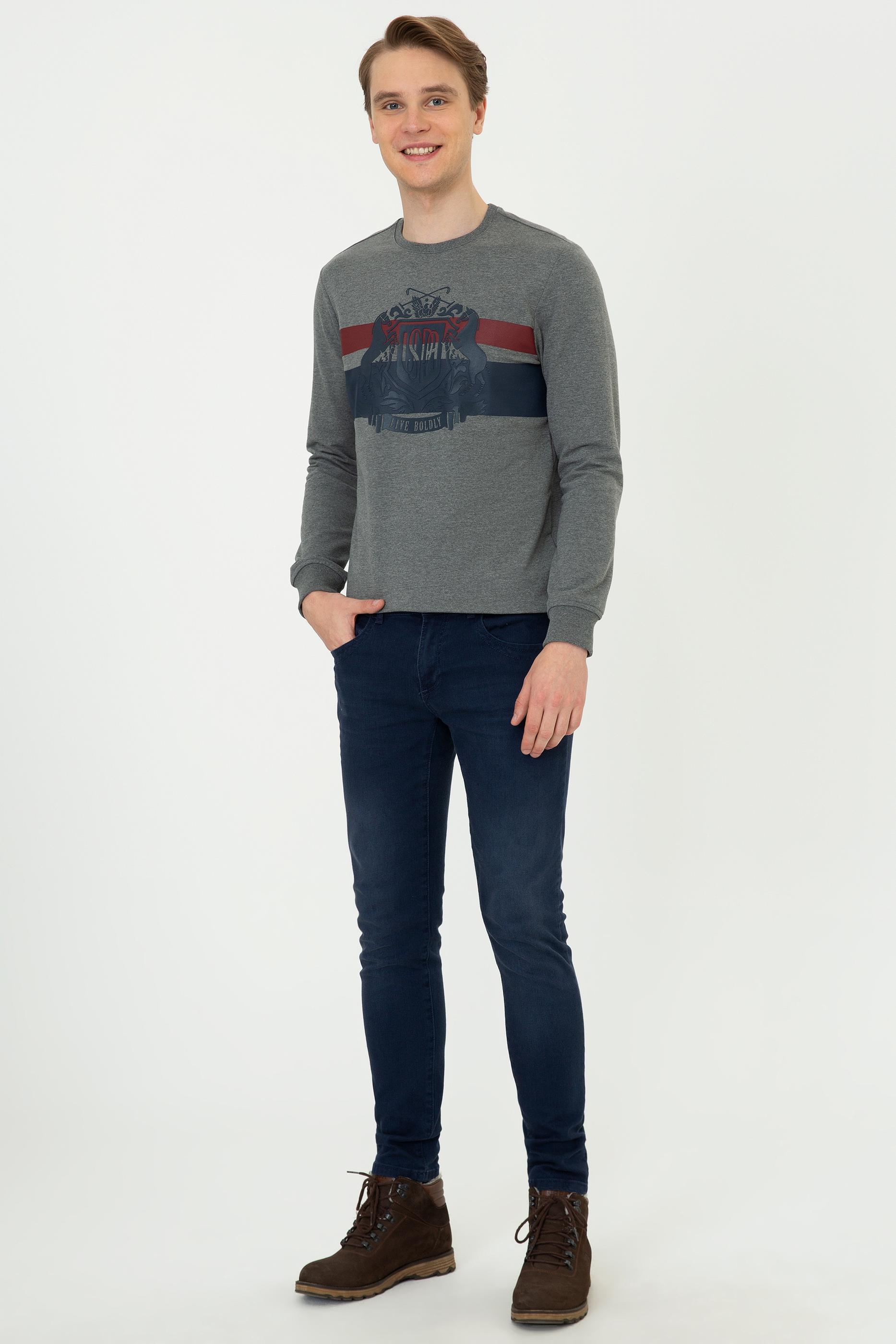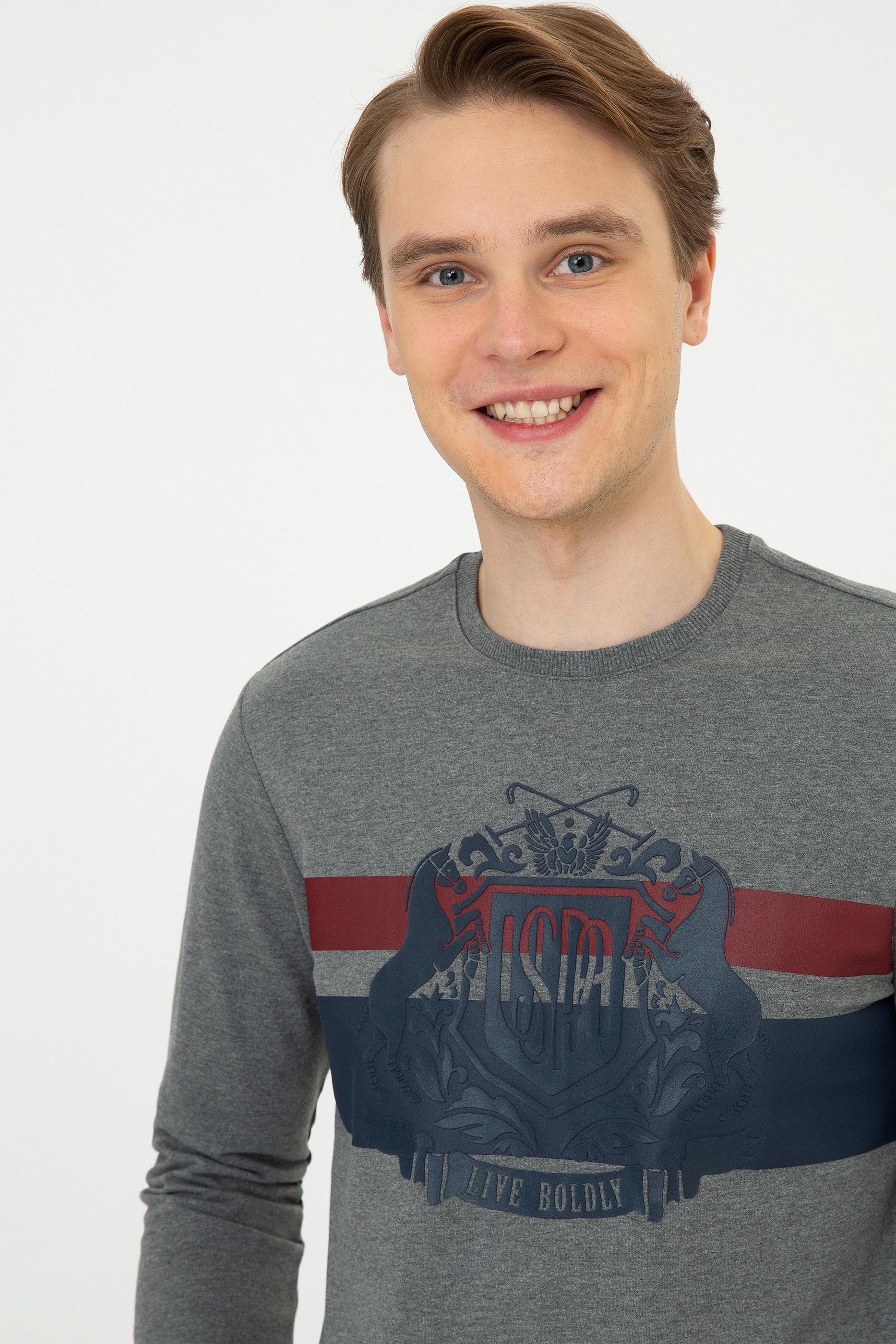 Nem emici özelliğe sahip, dayanıklı ve yumuşak dokusu ile esneklik barındıran, özgür hareket kabiliyeti veren standart fit baskılı erkek sweatshirt modelimize hayran kalacaksınız.