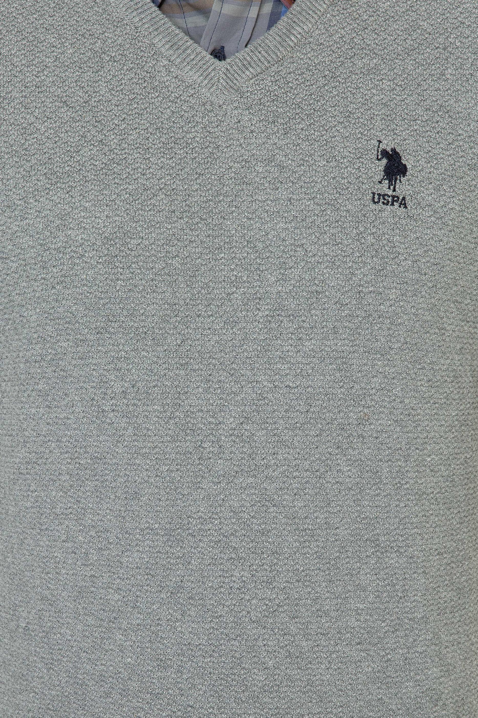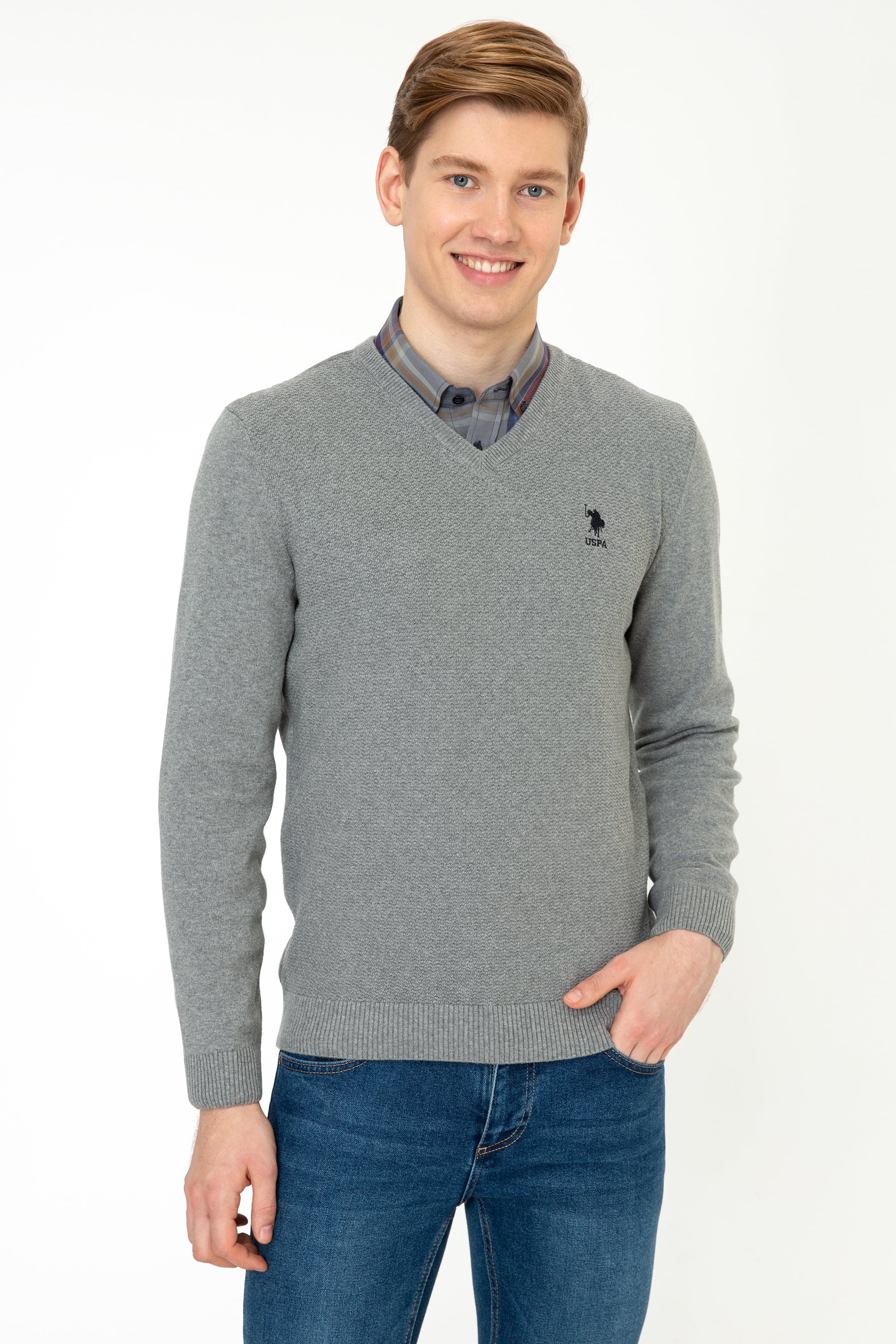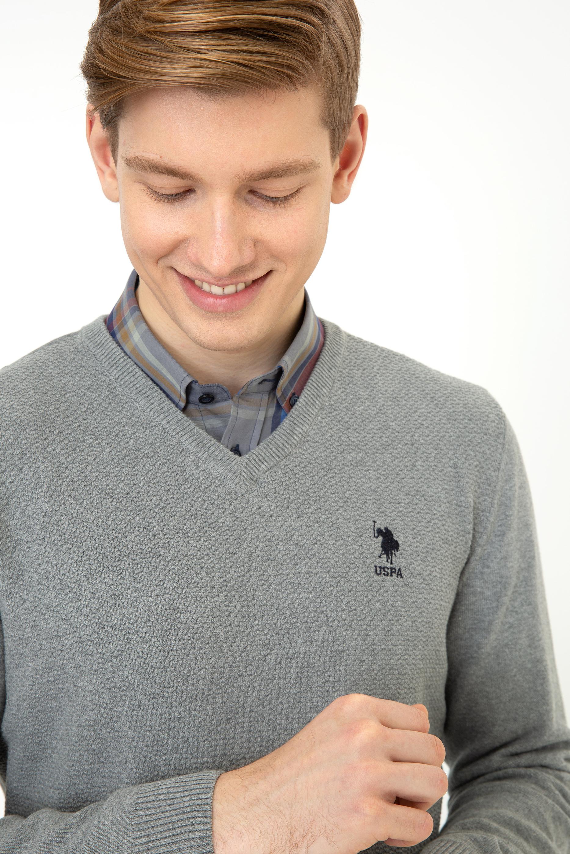 Erkek Gri Melanj V - Yaka Triko Kazak Basic