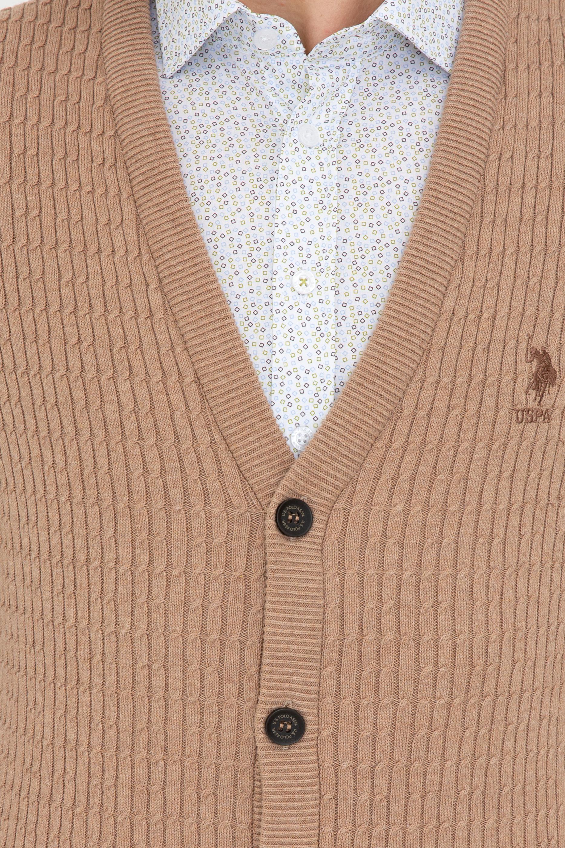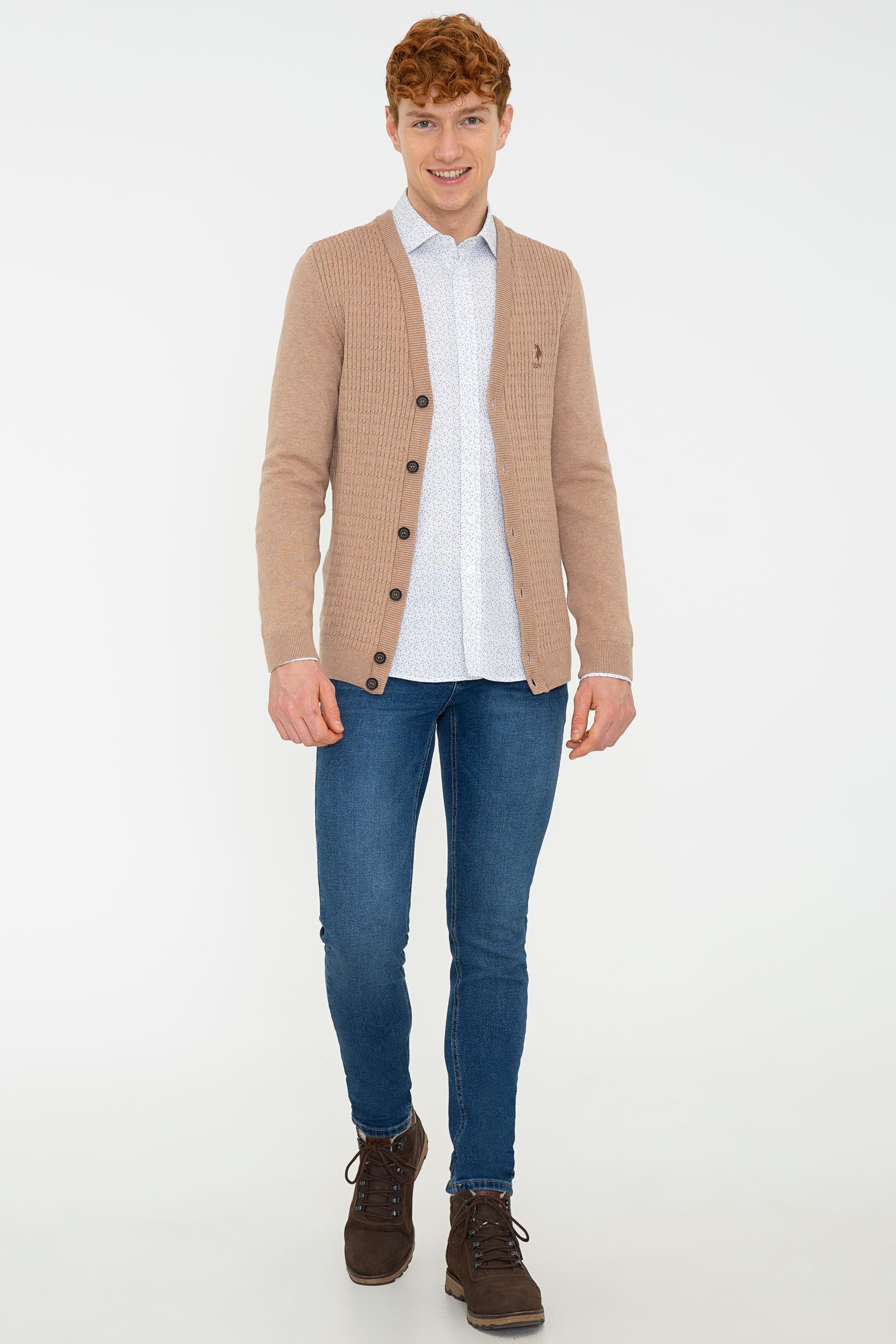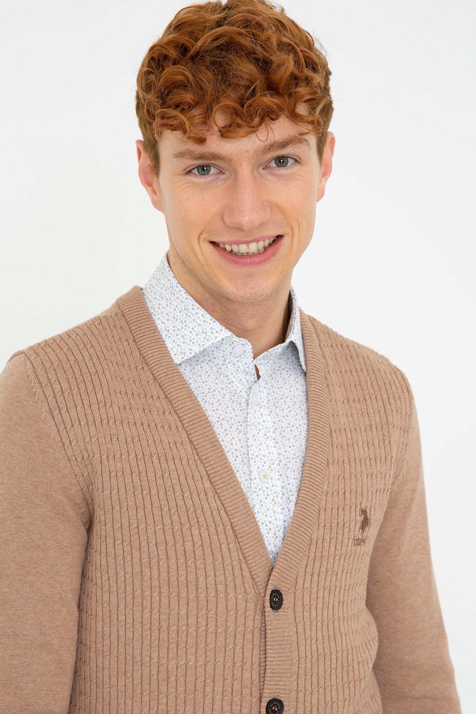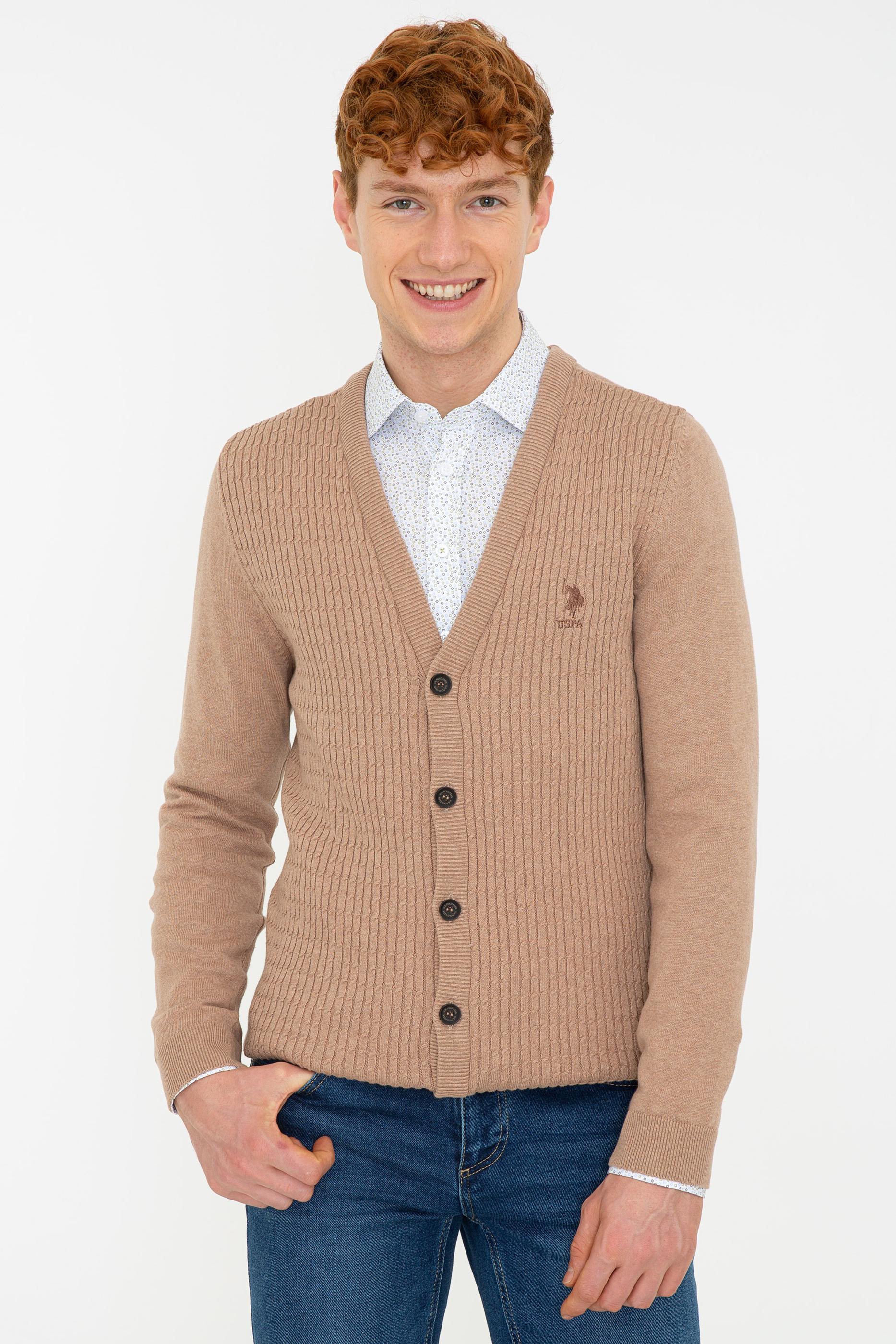 Erkek Camel Melanj Basic Triko Hırka