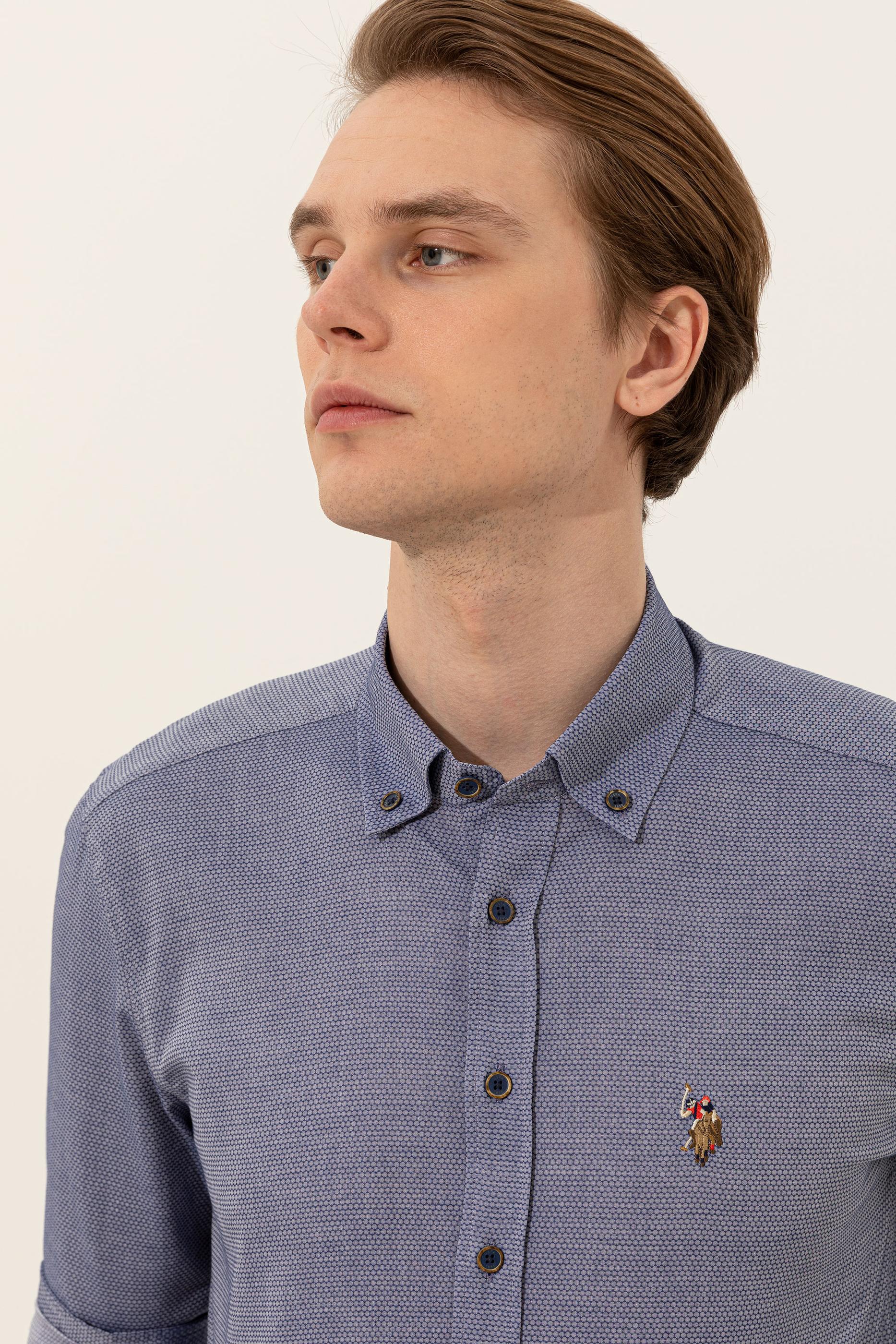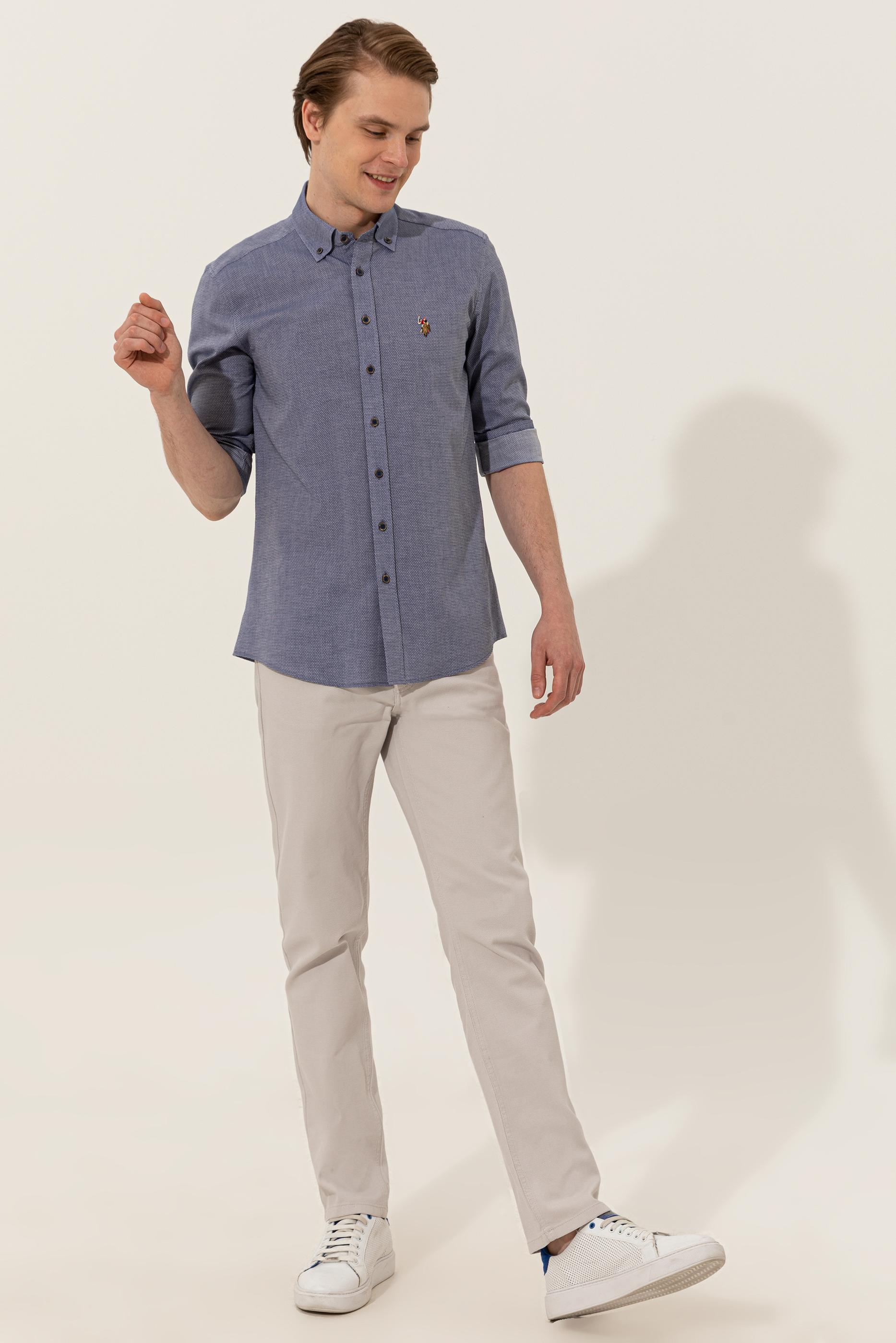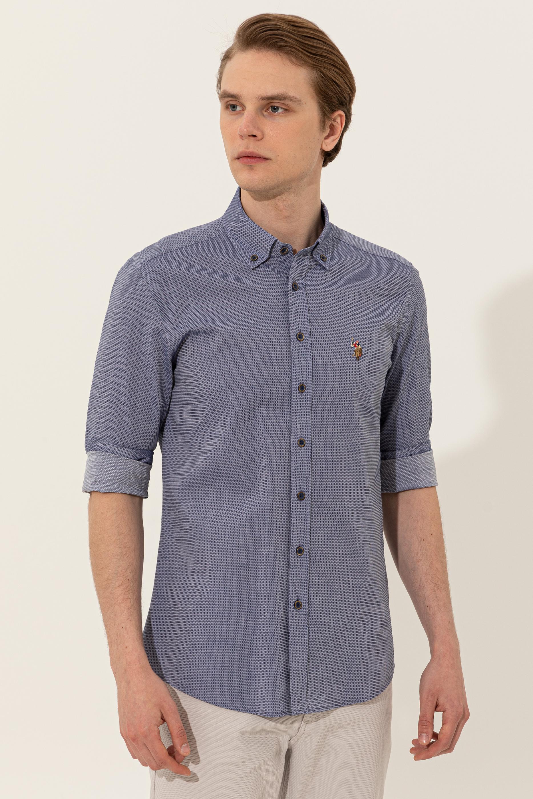 Erkek Lacivert Uzun Kollu Basic Gömlek