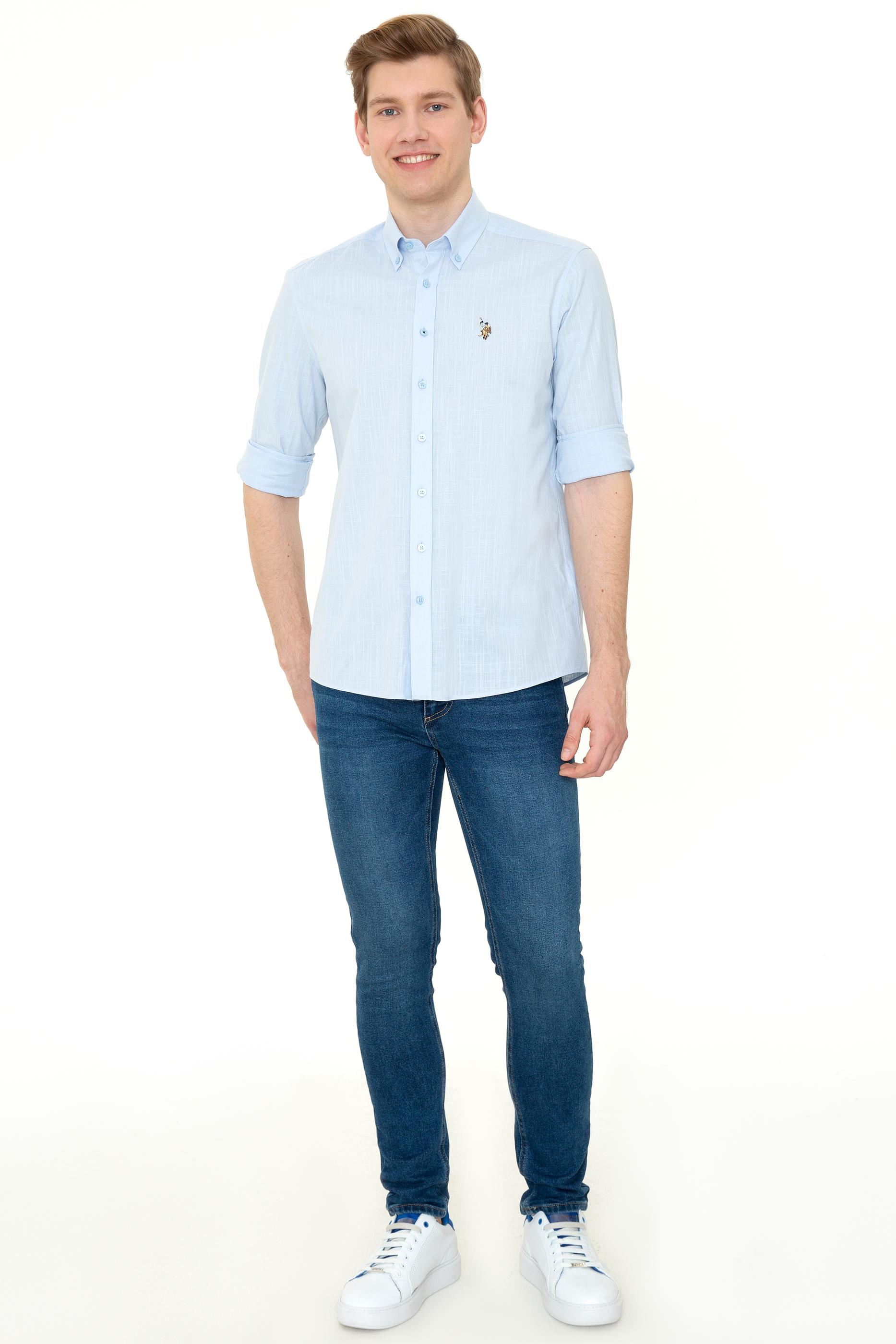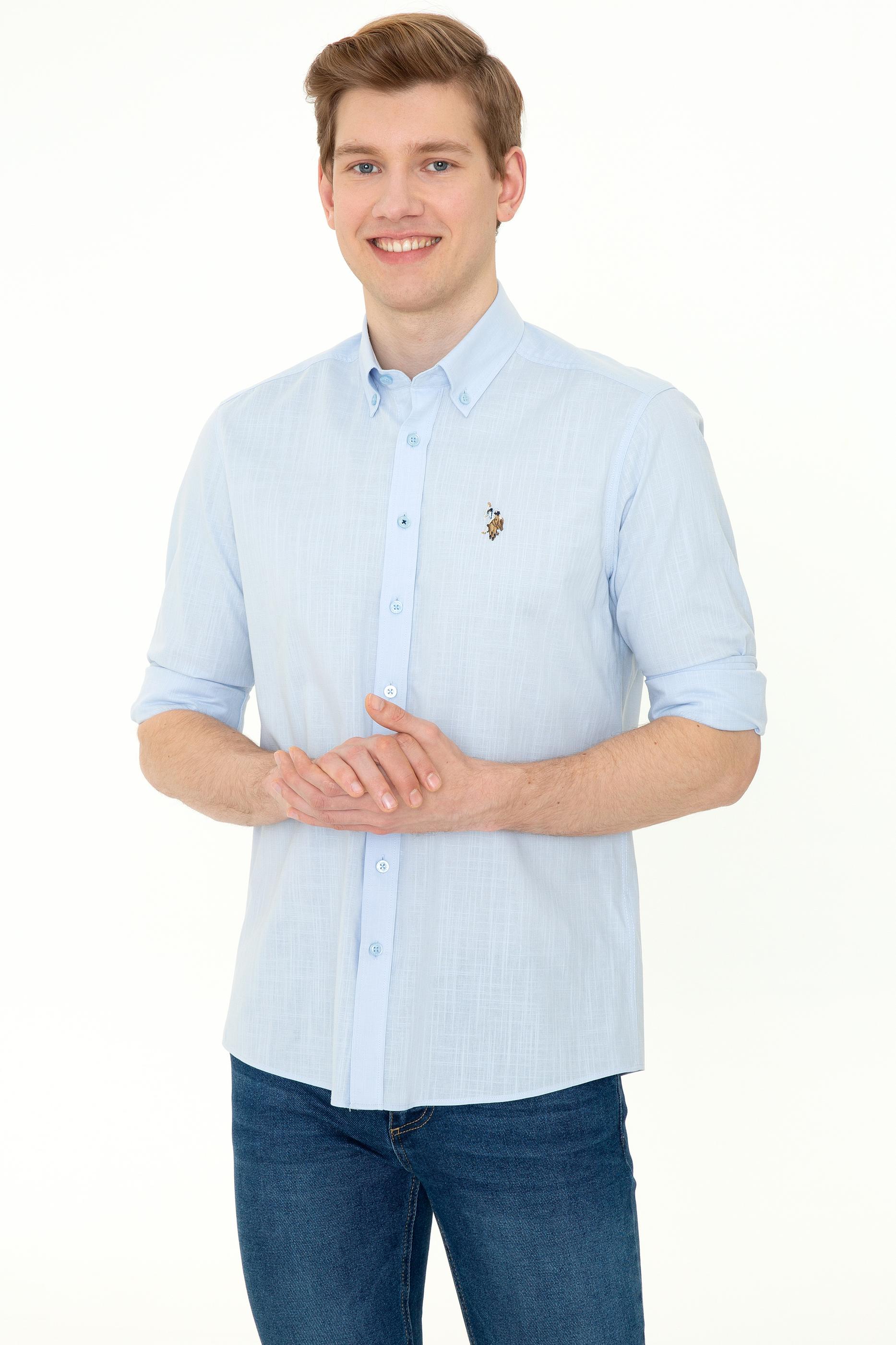 Erkek Açık Mavi Uzun Kollu Basic Gömlek