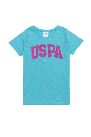 Kız Çocuk Turkuaz Basic Bisiklet Yaka Tişört