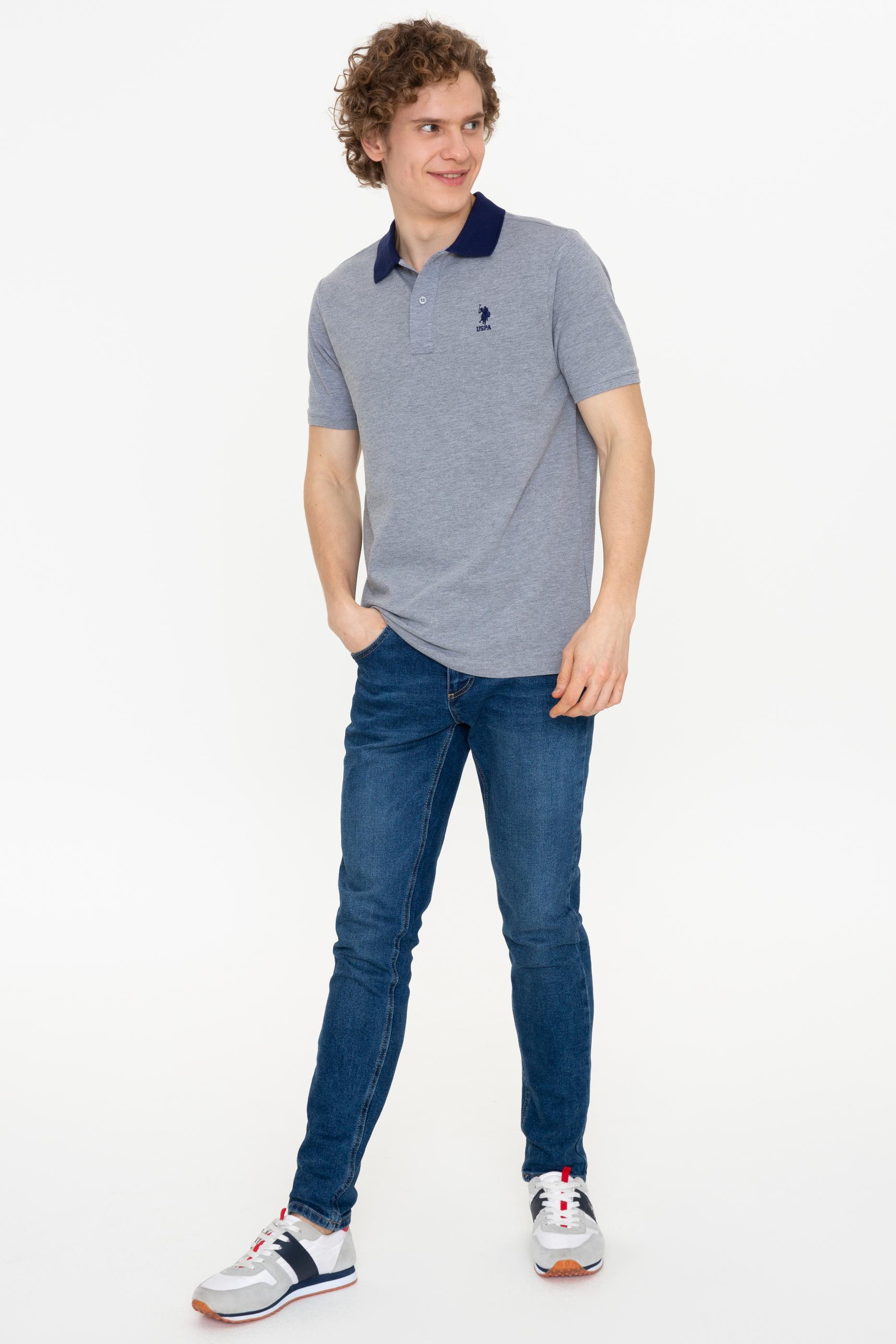 - Erkek Gri Melanj Polo Yaka T-Shirt