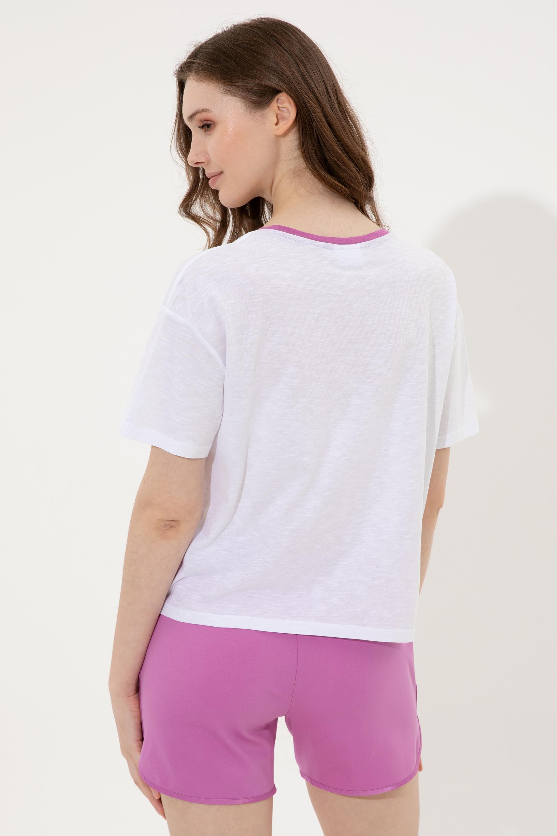 Kadın Menekşe Bisiklet Yaka Tişört