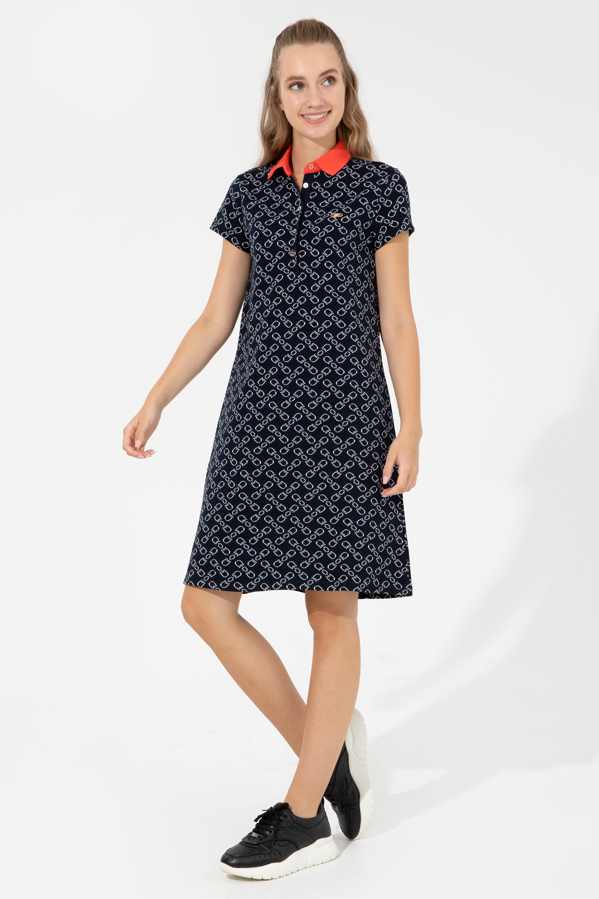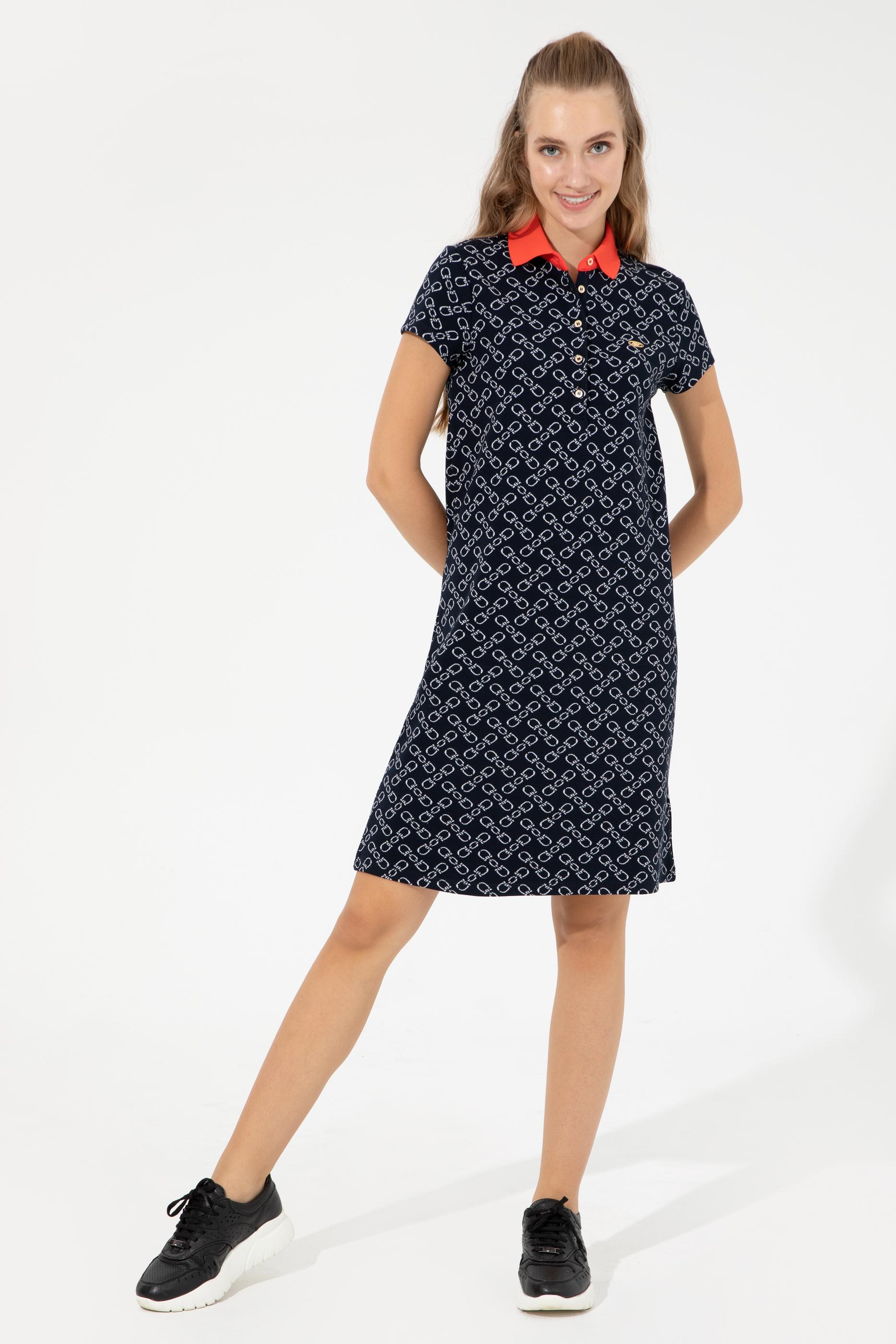 Kadın Lacivert Polo Yaka Örme Elbise