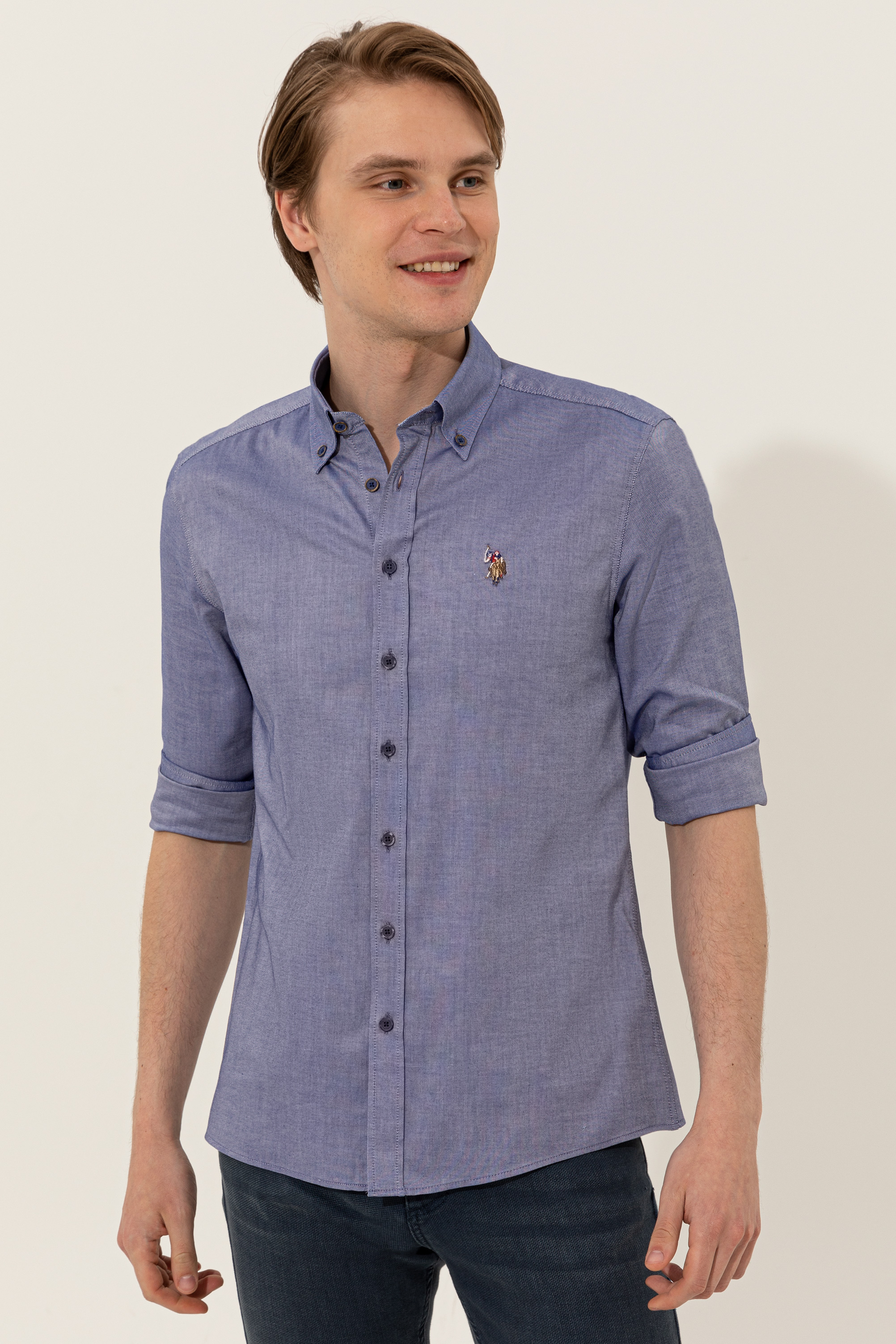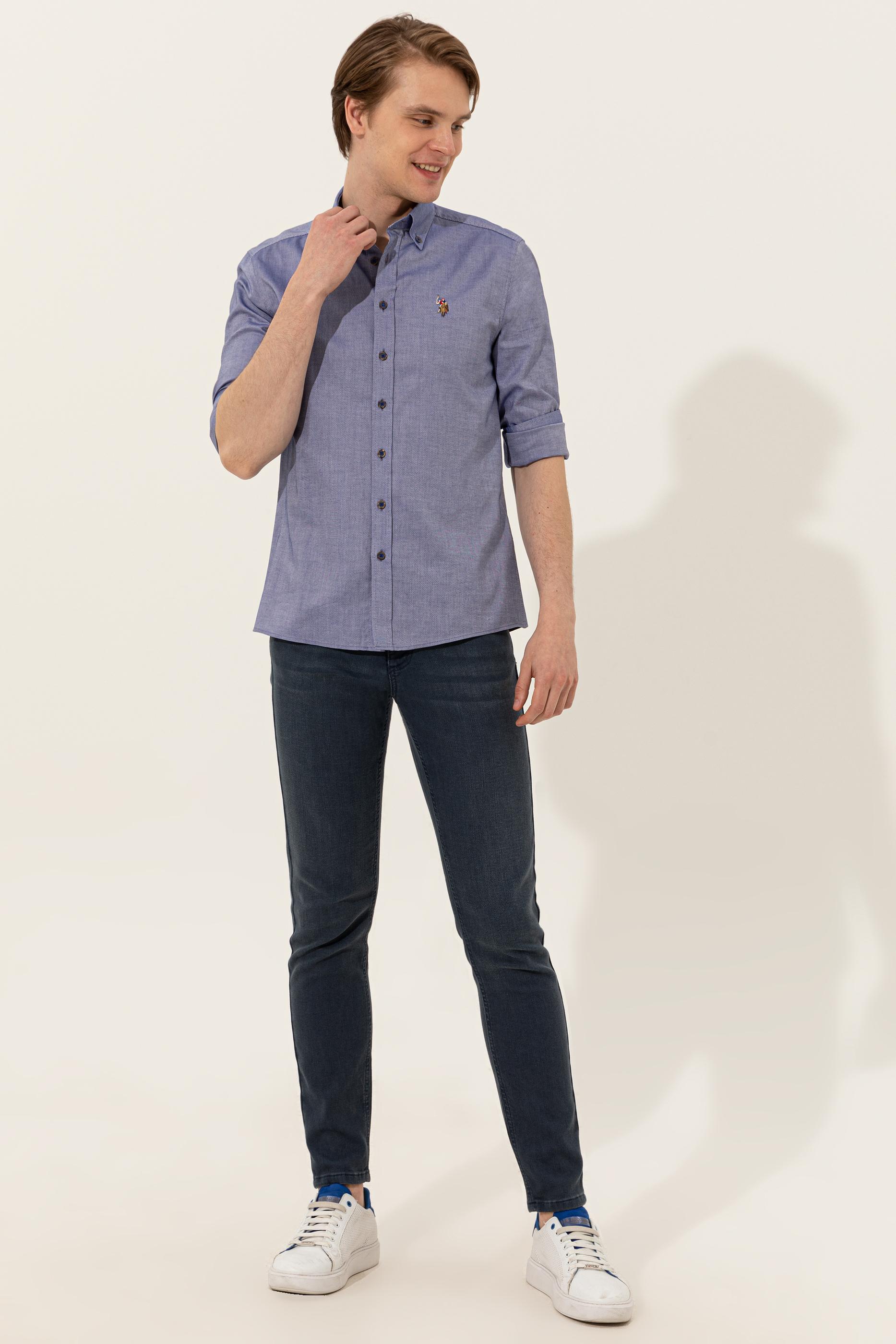 Erkek Mavi Uzun Kollu Basic Gömlek