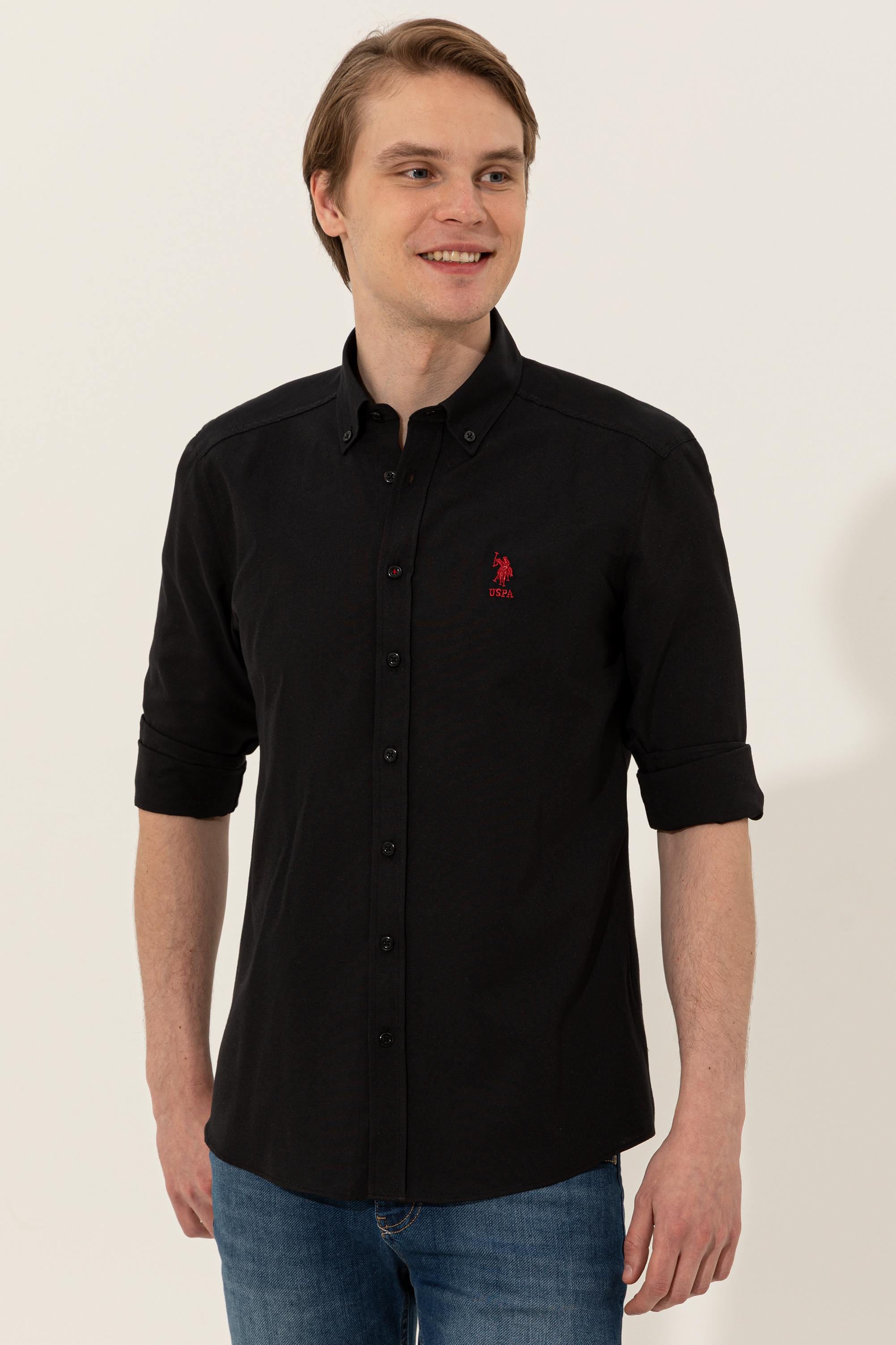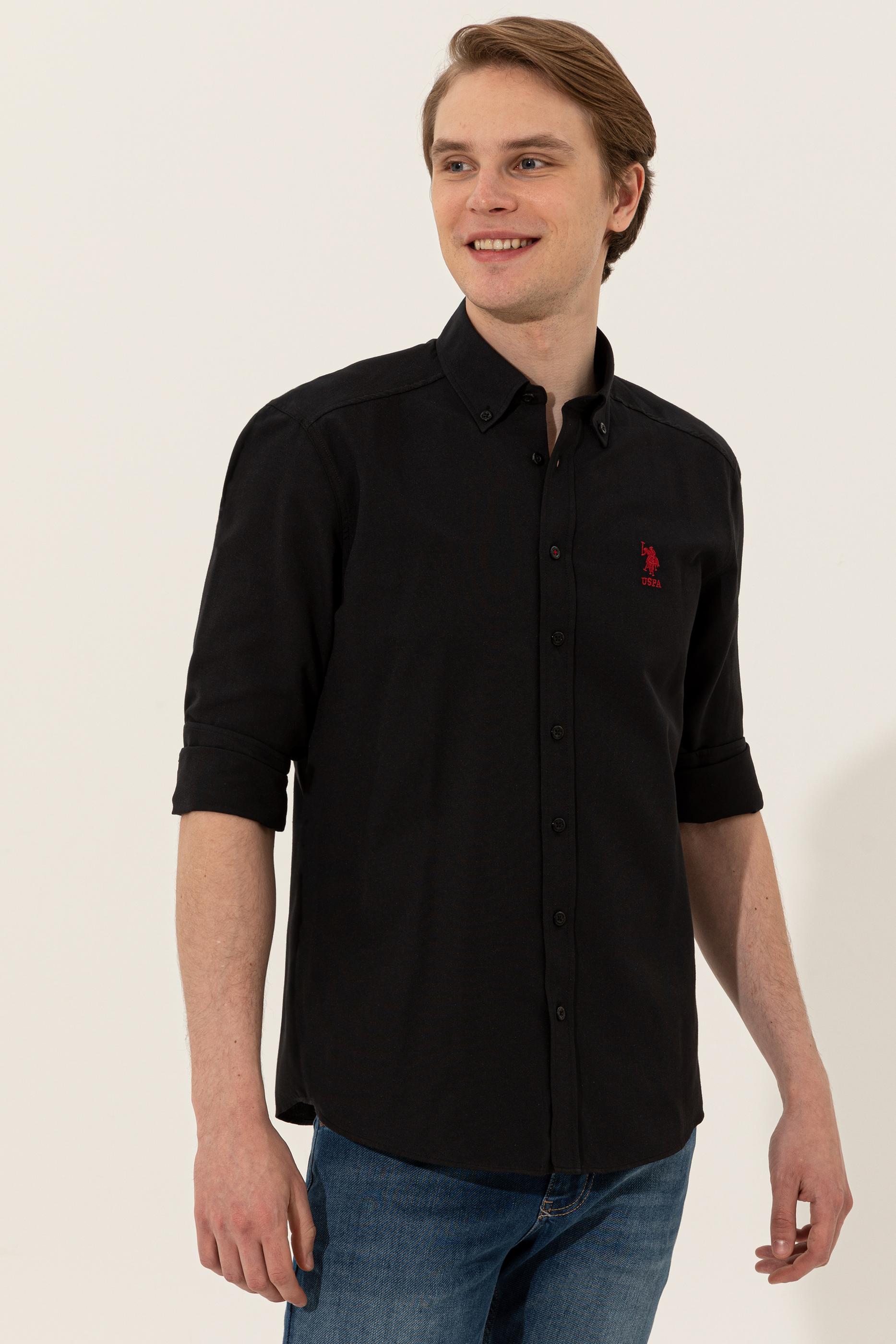 "name": "Erkek Siyah Gömlek Uzunkol Basic",