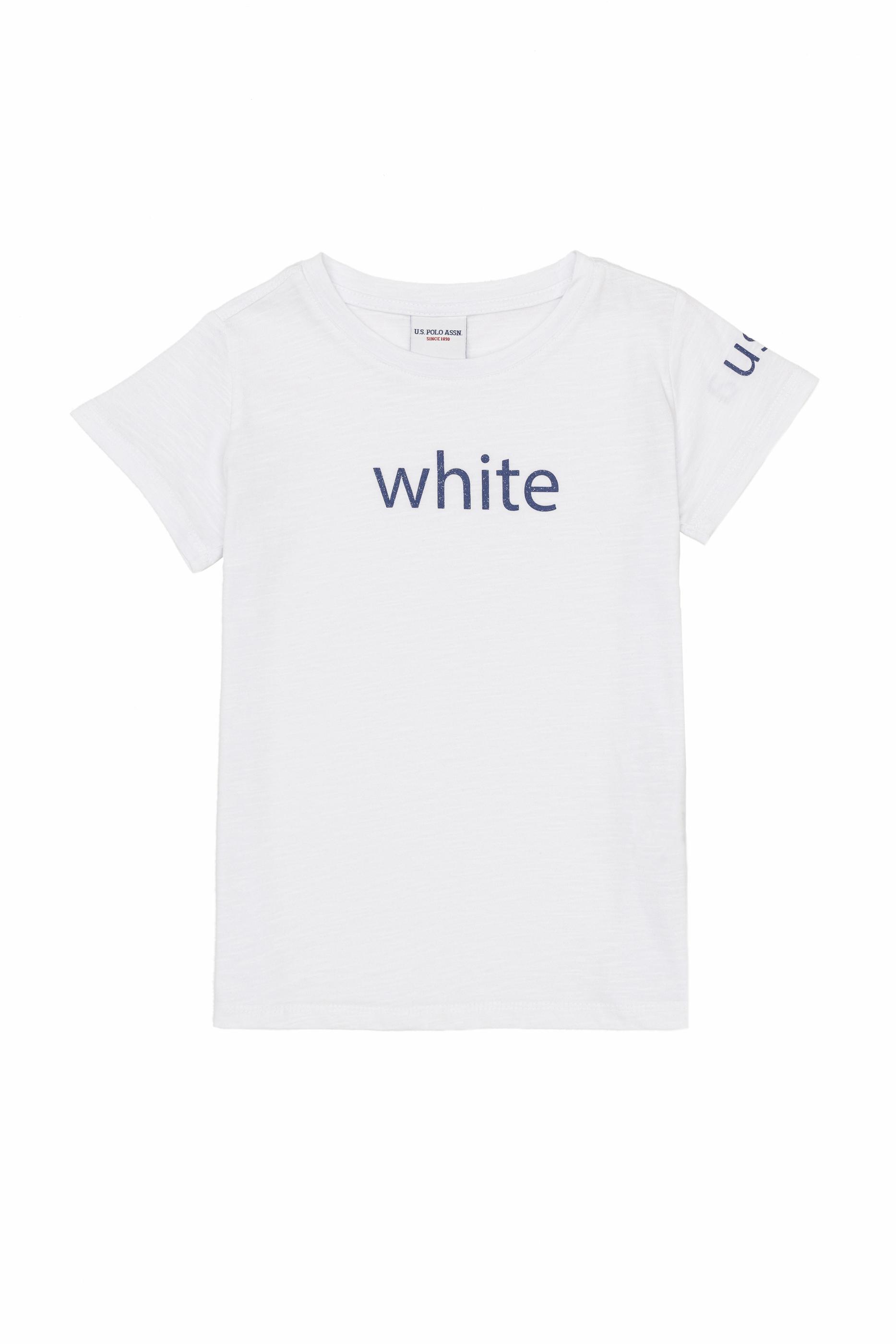 - Kız Çocuk Beyaz Bisiklet Yaka Tişört