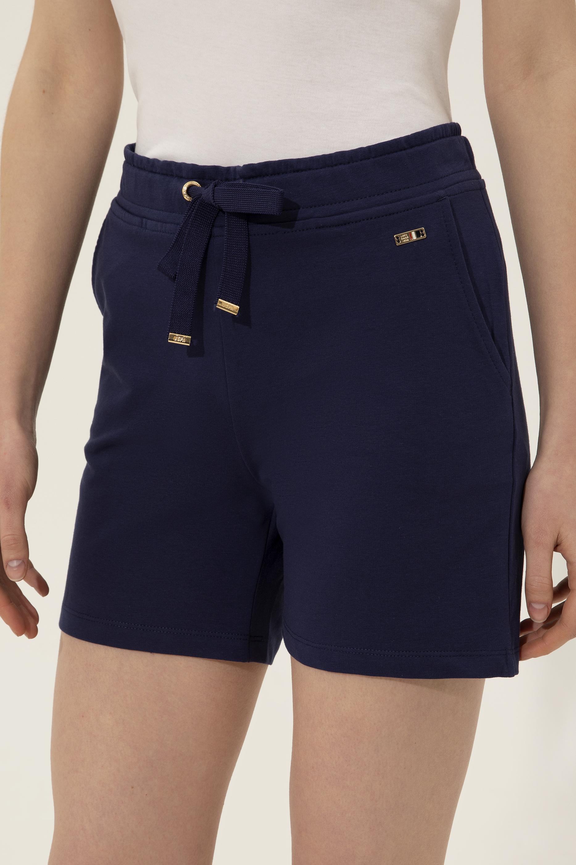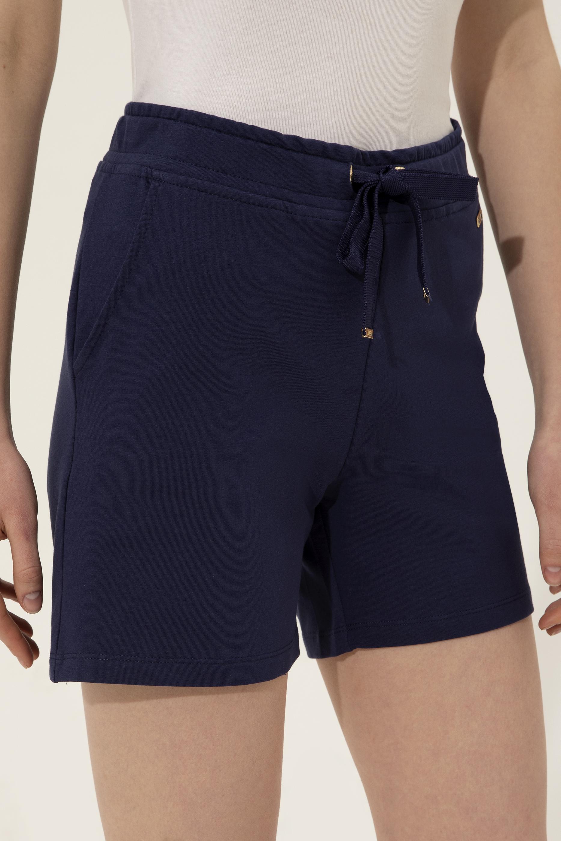 Özel teknikle dokunan örme şort modelimiz sayesinde sıcak yaz aylarında da sporunuzu ihmal etmeyin! Pamuk ve elastan karışımı spandeks kumaştan üretilen modelimiz teri emen yapısı ve esnekliğiyle spor esnasında rahatlığınızı garanti altına alıyor. Cepli şort modelin ayarlanabilir beli ve cepleri kullanışlı bir tasarım ortaya çıkarıyor. Lacivert şort kadın giyiminde şıklığıyla öne çıkarak günlük stilde de tercih edilebilecek bir parça haline geliyor.