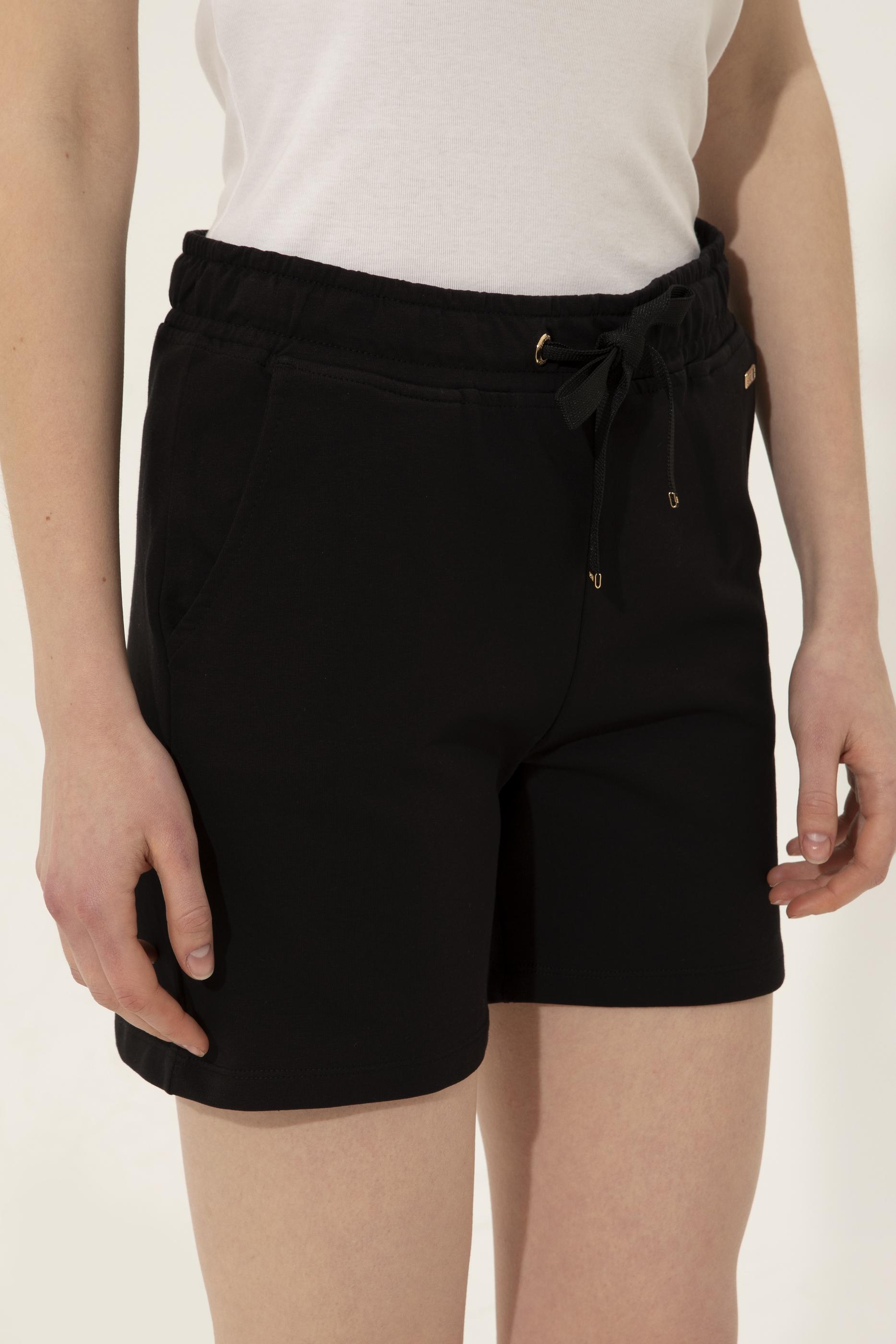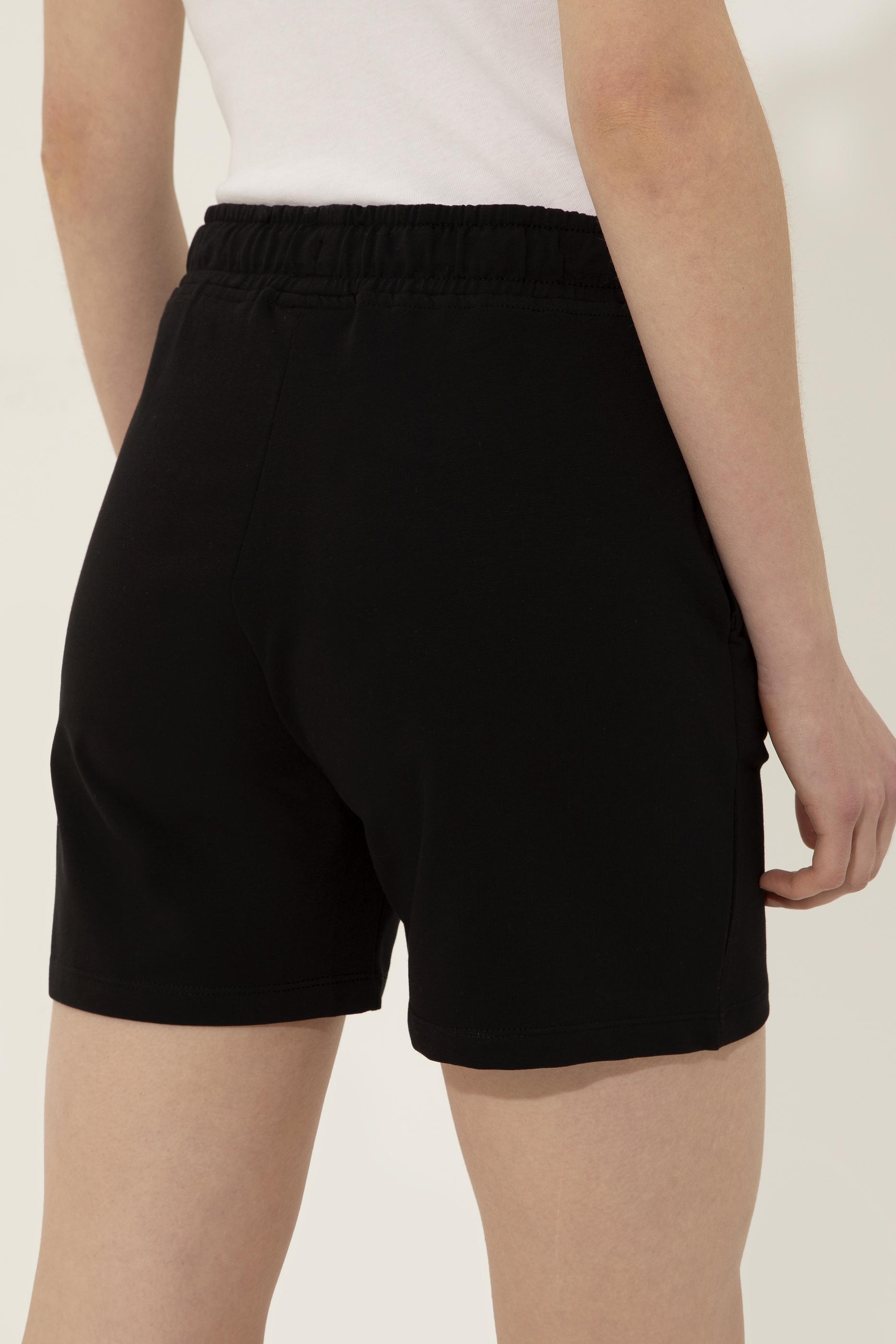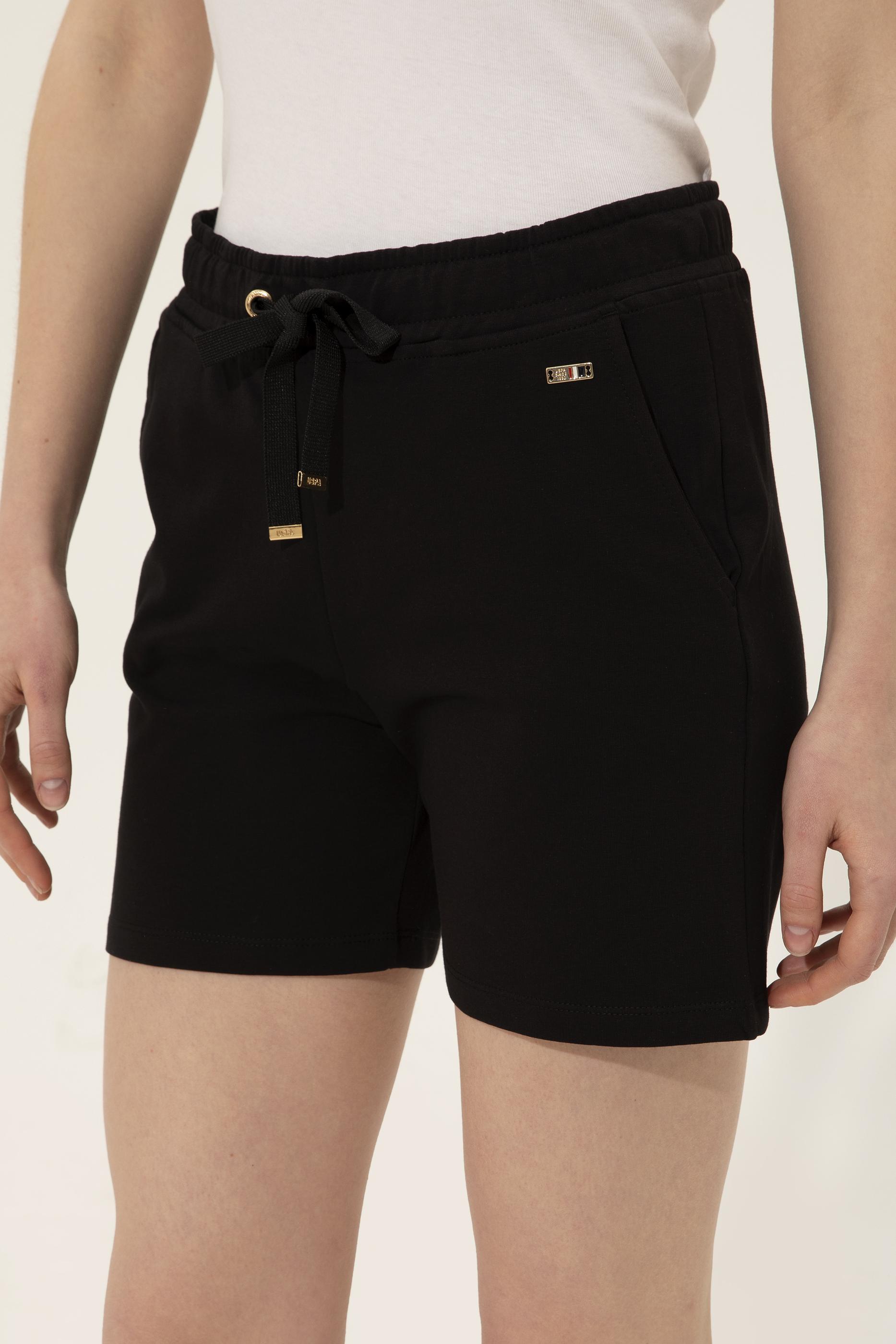 Özel teknikle dokunan örme şort modelimiz sayesinde sıcak yaz aylarında da sporunuzu ihmal etmeyin! Pamuk ve elastan karışımı spandeks kumaştan üretilen modelimiz teri emen yapısı ve esnekliğiyle spor esnasında rahatlığınızı garanti altına alıyor. Cepli şort modelin ayarlanabilir beli ve cepleri kullanışlı bir tasarım ortaya çıkarıyor. Siyah şort kadın giyiminde şıklığıyla öne çıkarak günlük stilde de tercih edilebilecek bir parça haline geliyor.