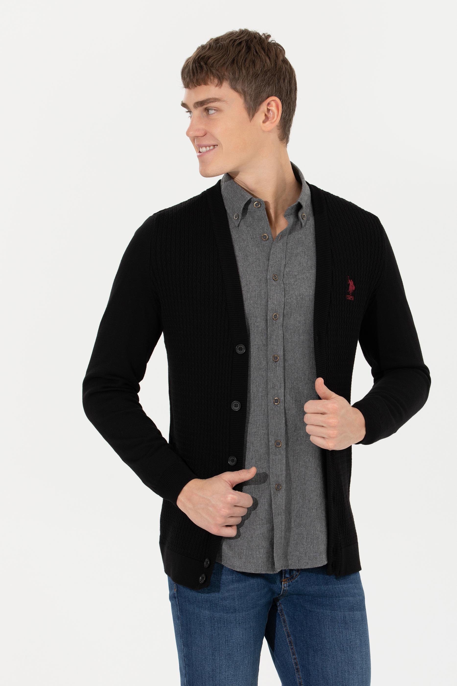 Erkek Siyah Basic Triko Hırka