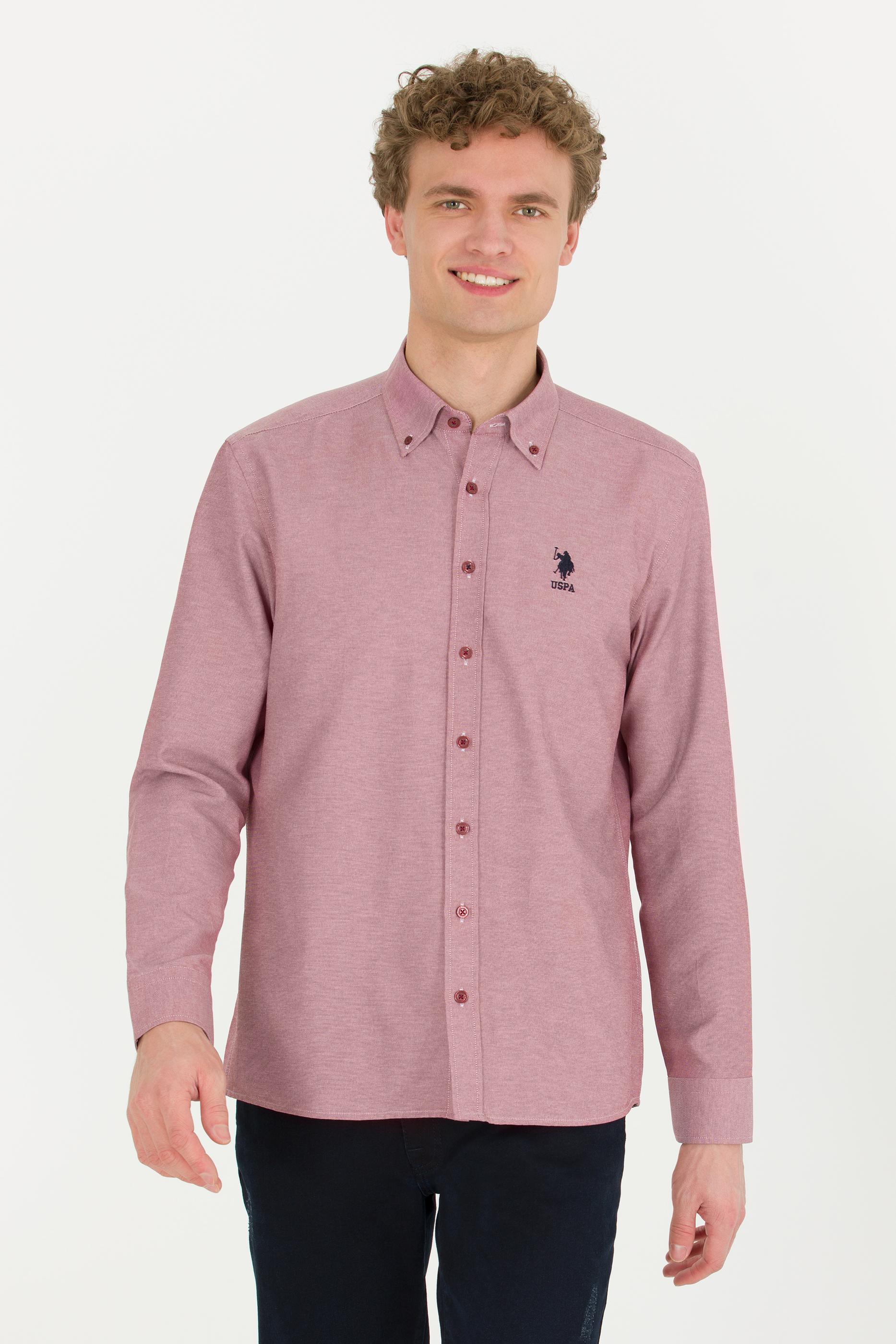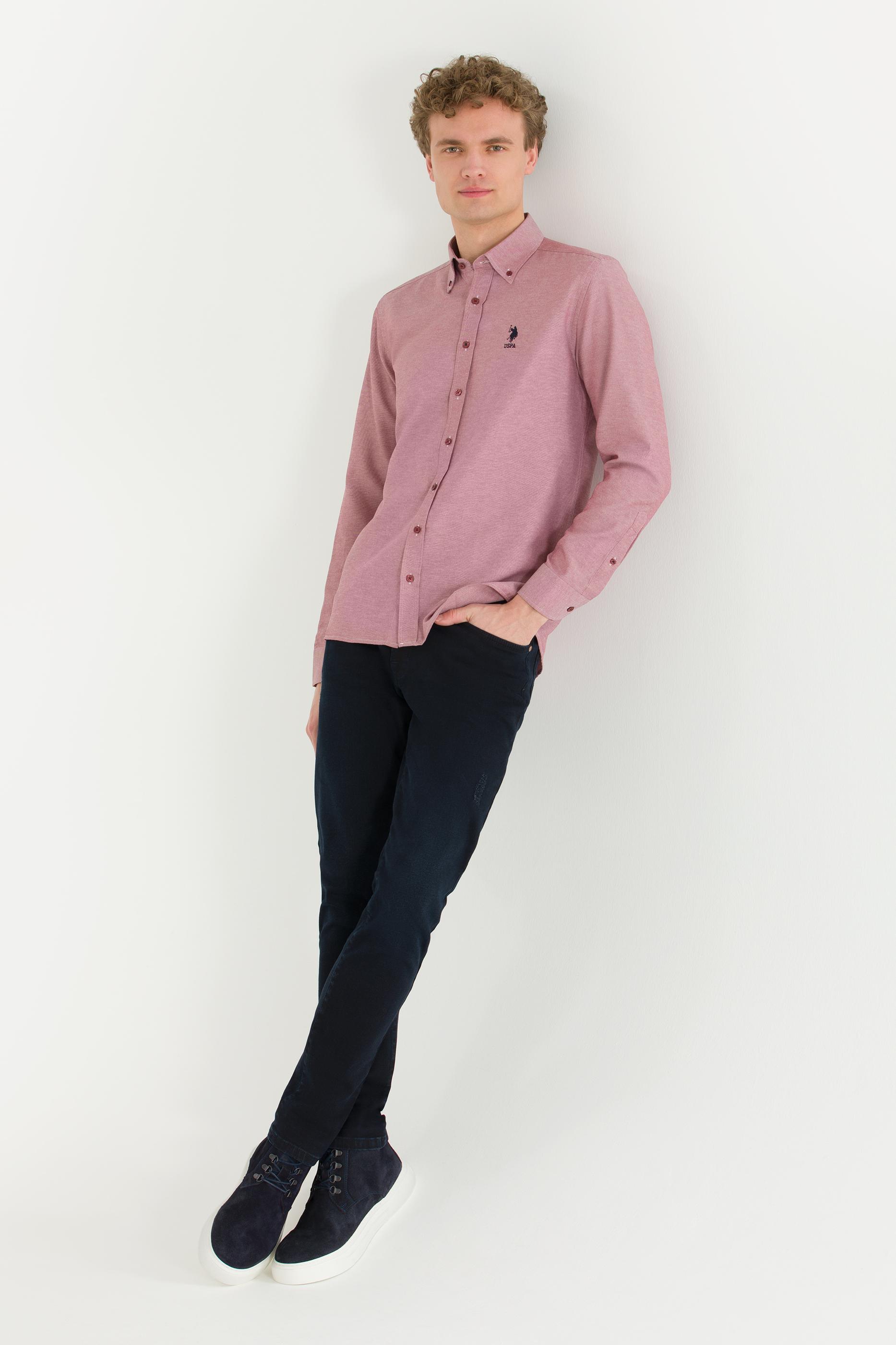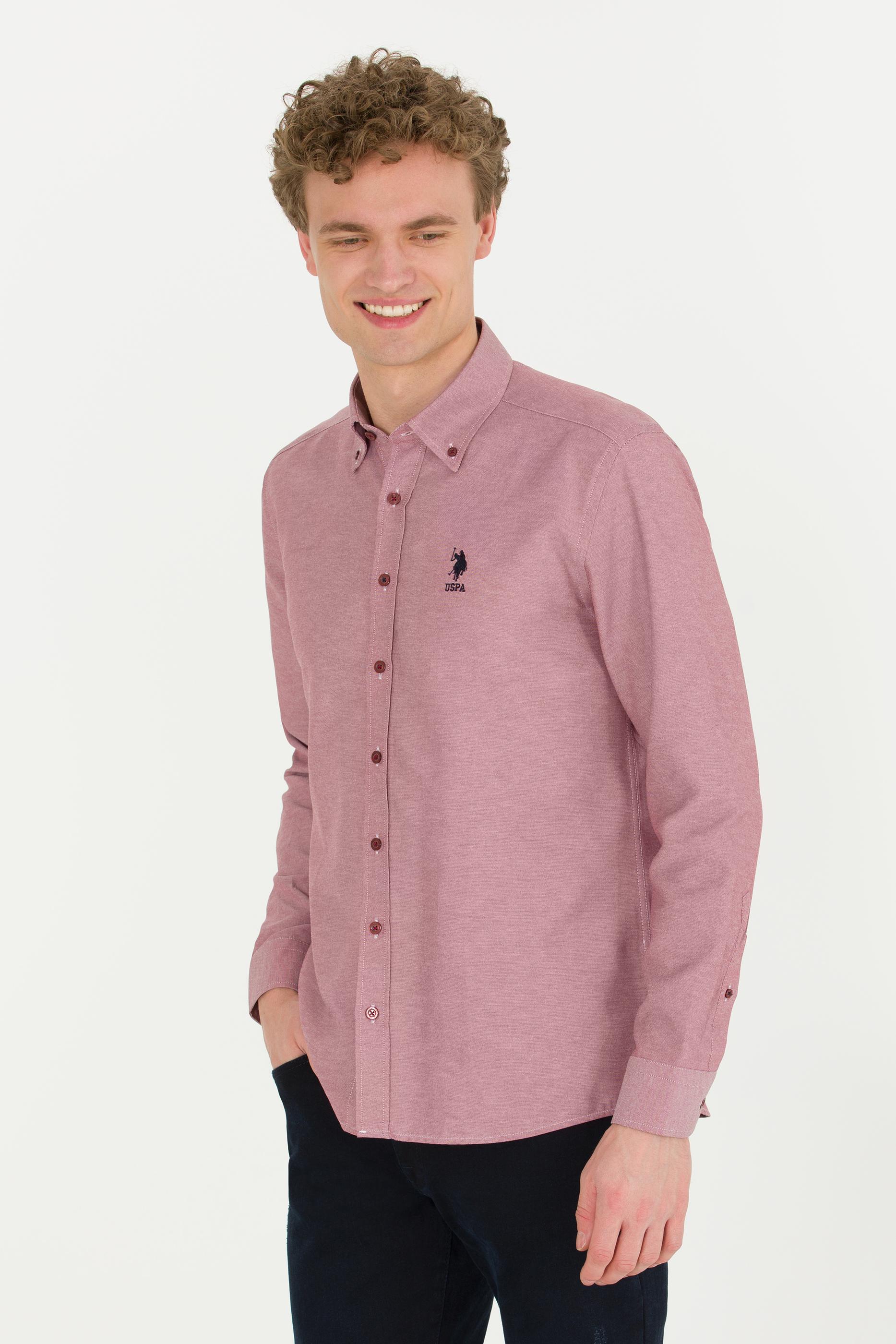 Erkek Vişne Uzun Kollu Basic Gömlek
