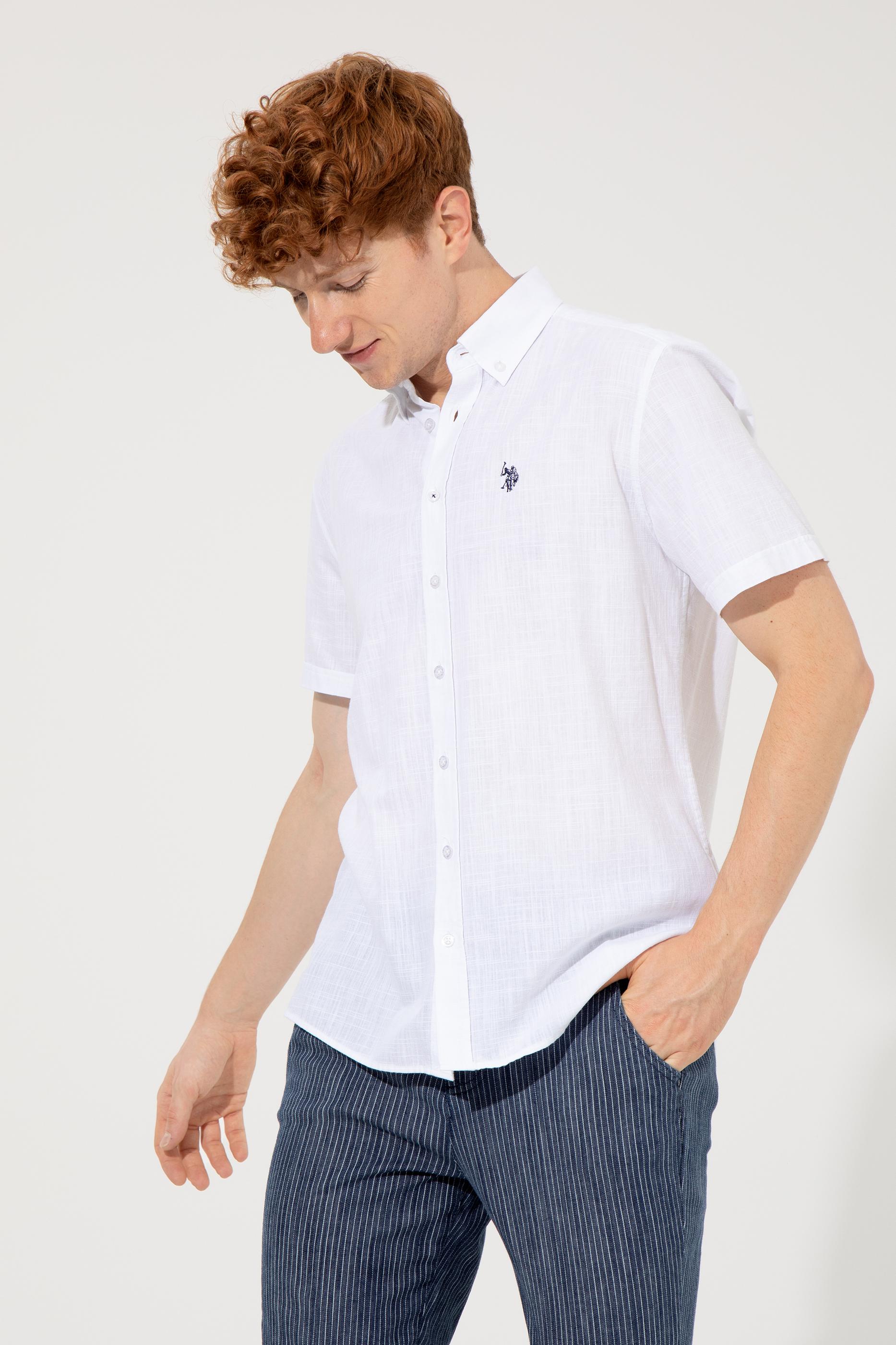 Regular fit kısa kollu erkek gömleğimiz vücudunuzu sarmadan dökümlü bir görünüm sunarak rahatça hareket edebilmenize olanak tanır.