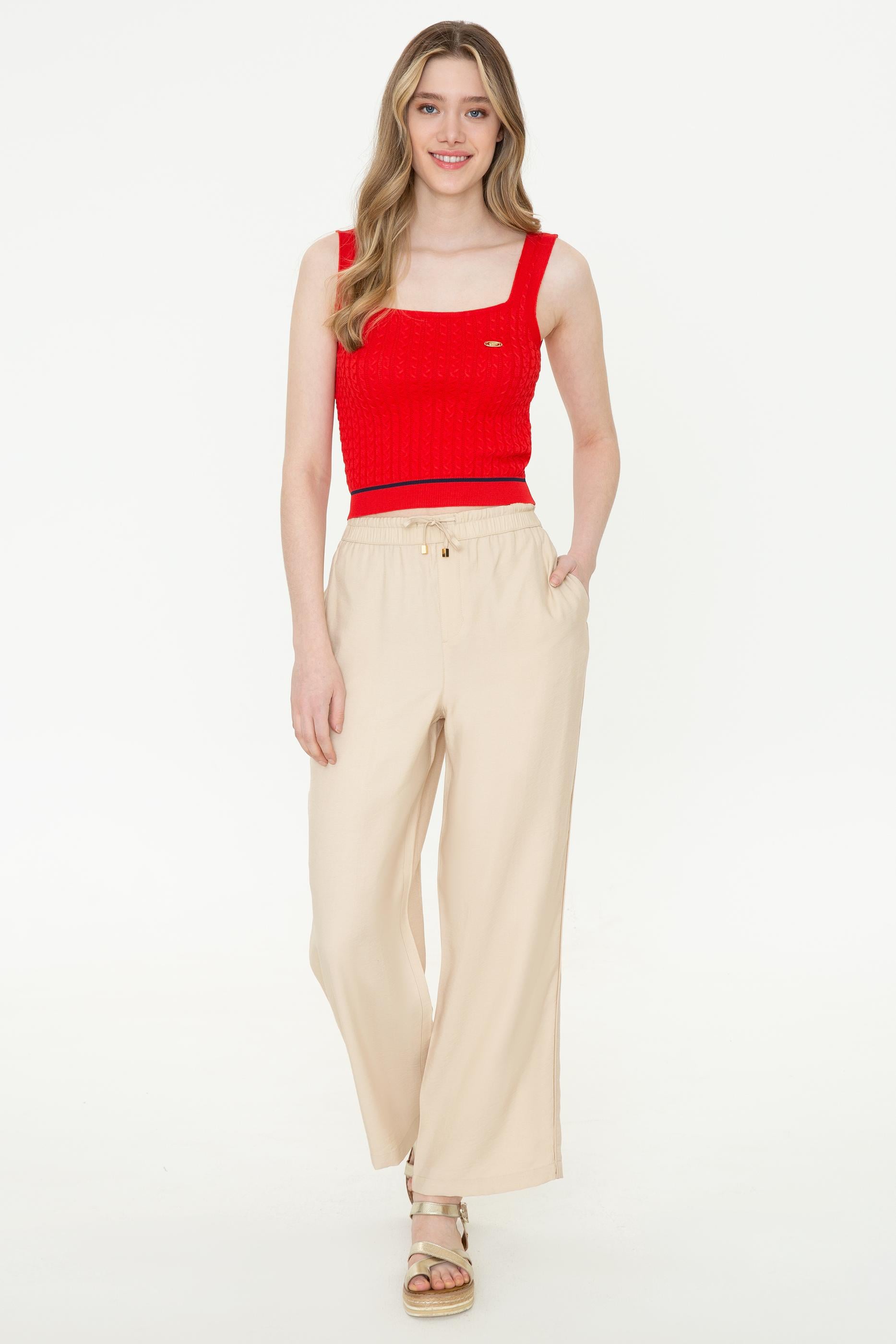 Yaz kombinlerinde dahi triko dokunuşlarla taçlandırılan parçalar giyebileceğinizi biliyor muydunuz? Ekstra slim fit kadın triko kazak tasarımımız ile yaz kombinlerinize iddialı bir yansıma kazandırabilirsiniz. %100 polyester karışımlı askılı kadın triko kazağımızla dilerseniz tek başına dilerseniz tişörtlerin üzerine giyerek kıyafet eşleştirmeleri yapabilirsiniz. Sıradan görünümlerden uzak, beli şerit detaylı kadın triko kazağımız sadece Online’da!