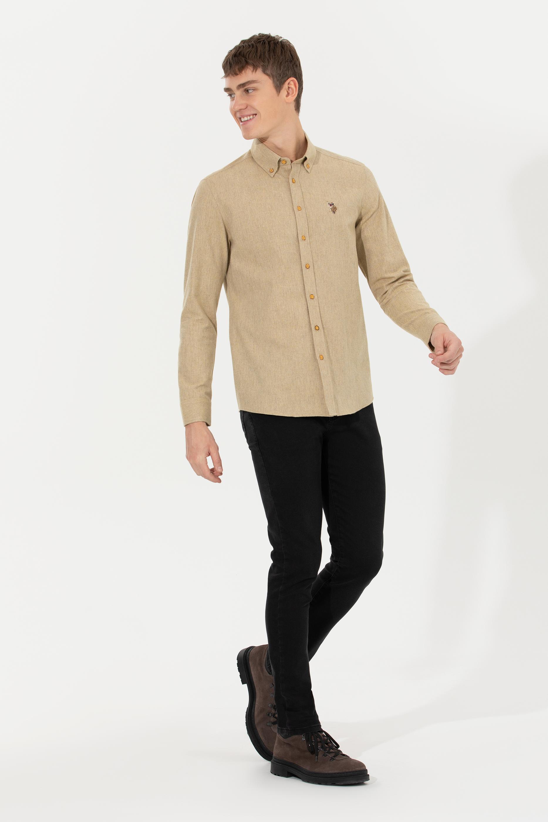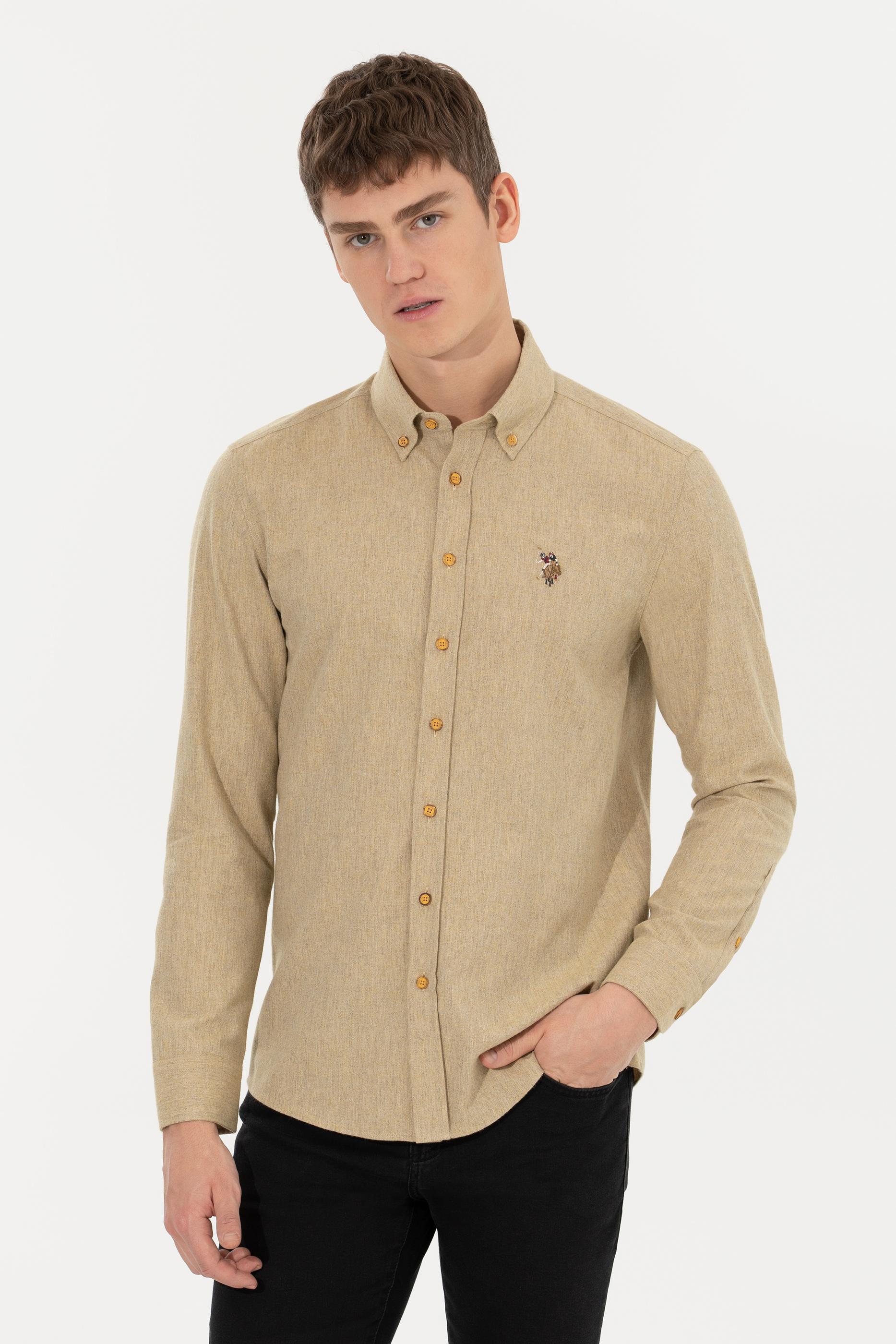 - Erkek Safran Uzun Kollu Basic Gömlek