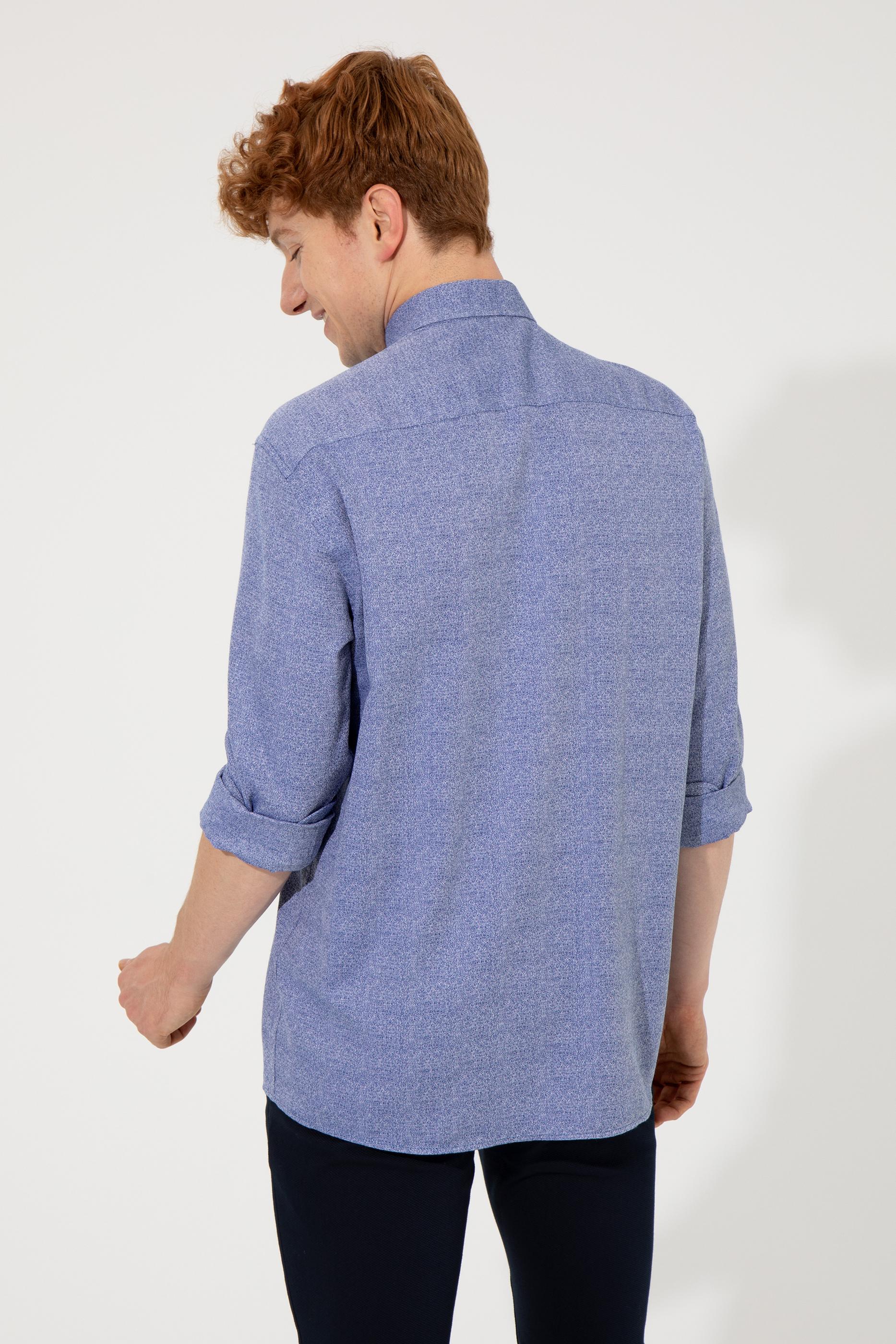 Regular fit uzun kollu erkek gömleğimiz kesimindeki konfor nüansları sayesinde gün içindeki hareketlerini hiçbir rahatsızlık hissetmeden gerçekleştirmenize yardımcı olur.