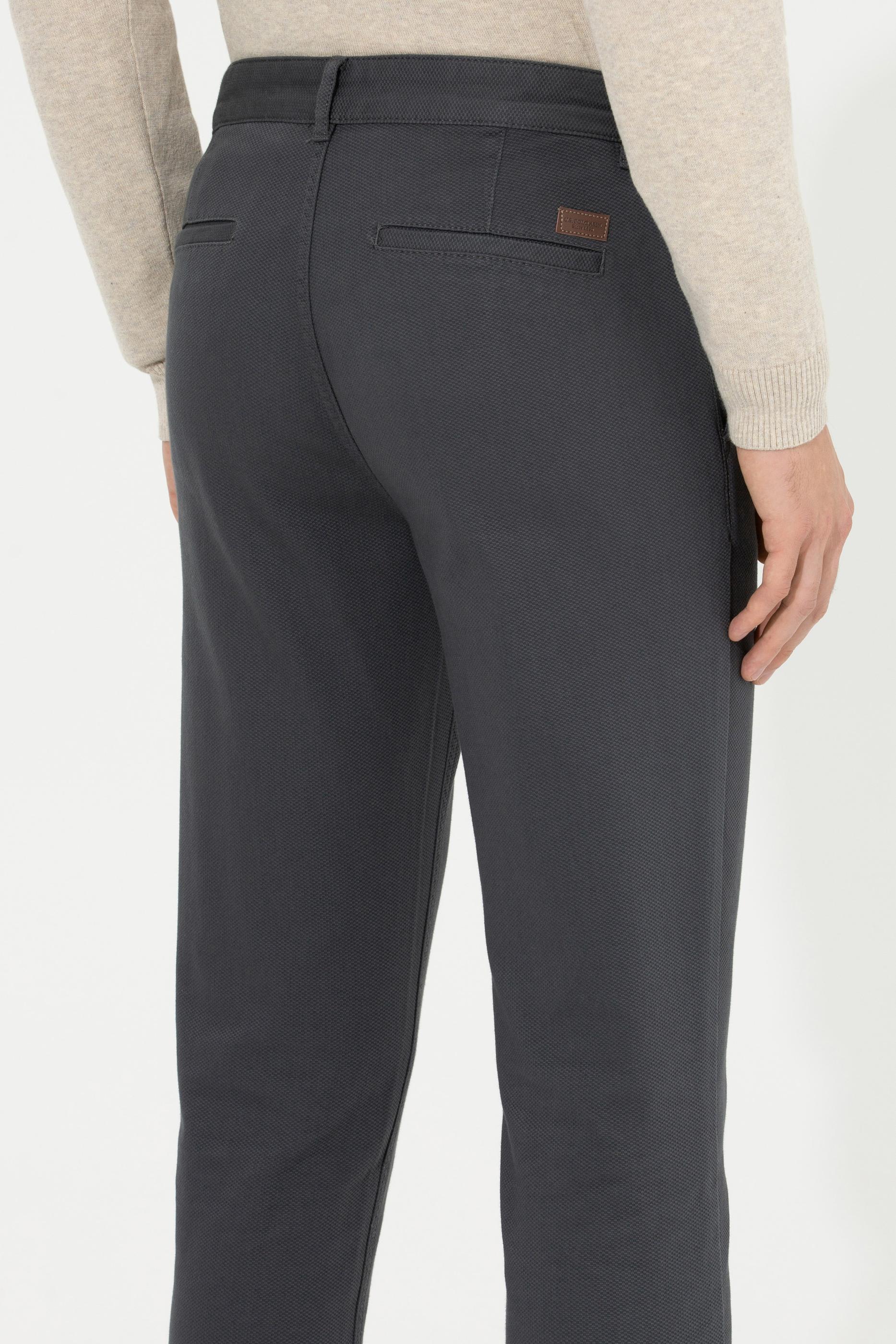Kumaş yapısındaki esnek doku ve cilt sağlığına dost özellikler bulunan pamuk ve elastan karışımlı erkek chino pantolonumuz, rahatça hareket edebilmenin önündeki tüm engelleri kaldırır.