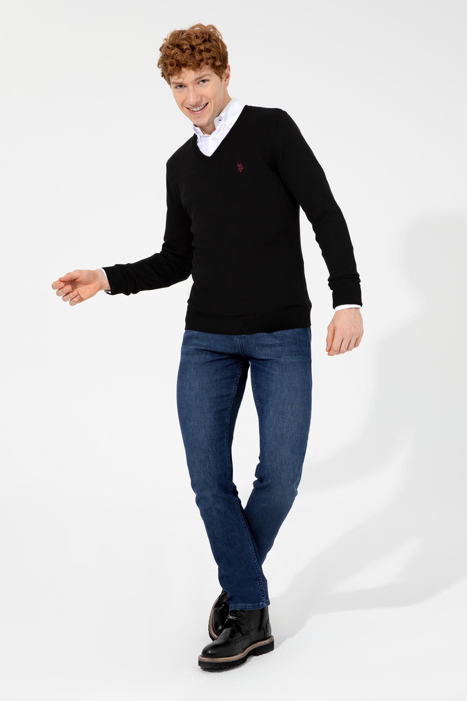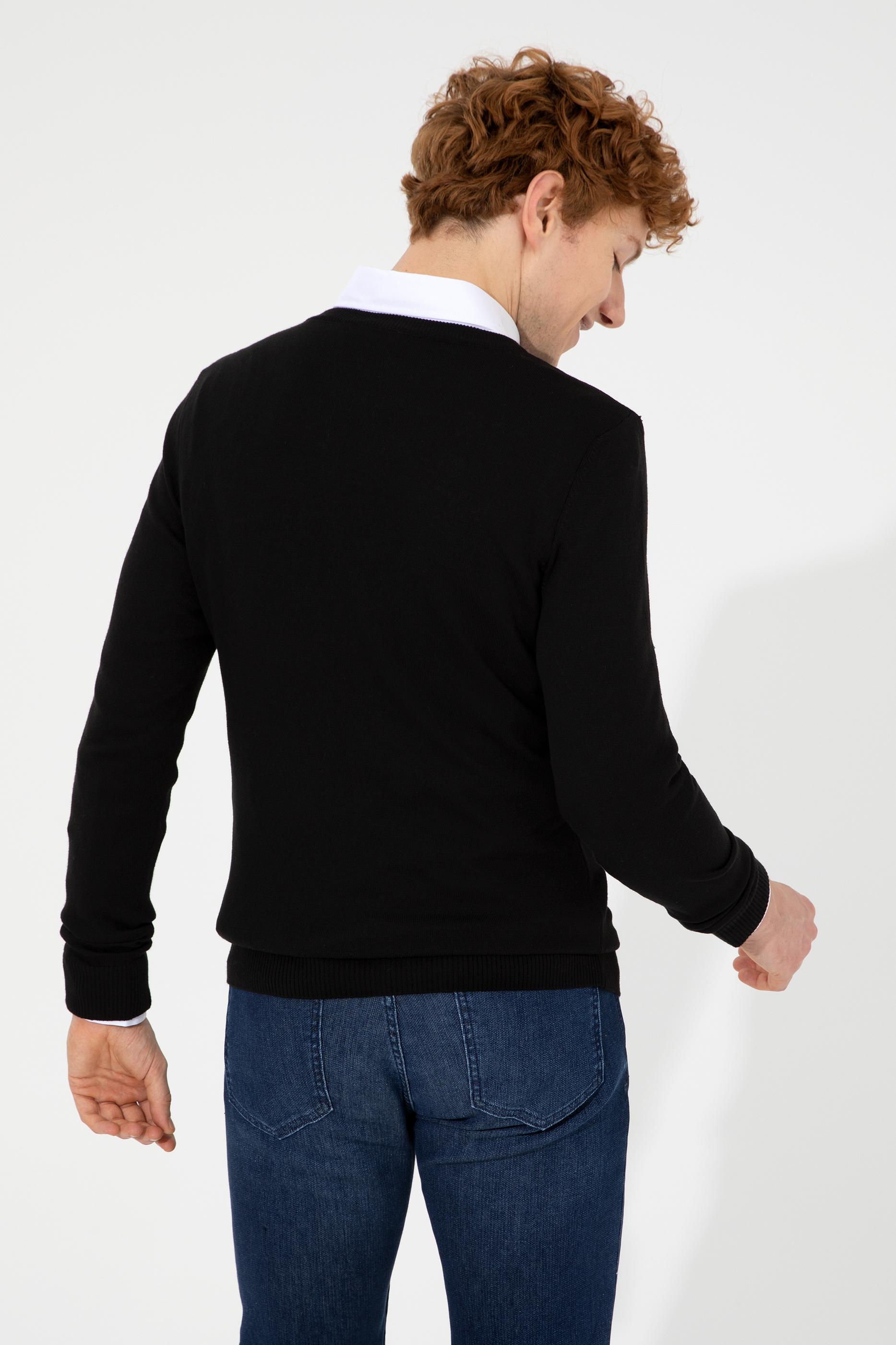 Erkek Siyah V Yaka Basic Triko Kazak