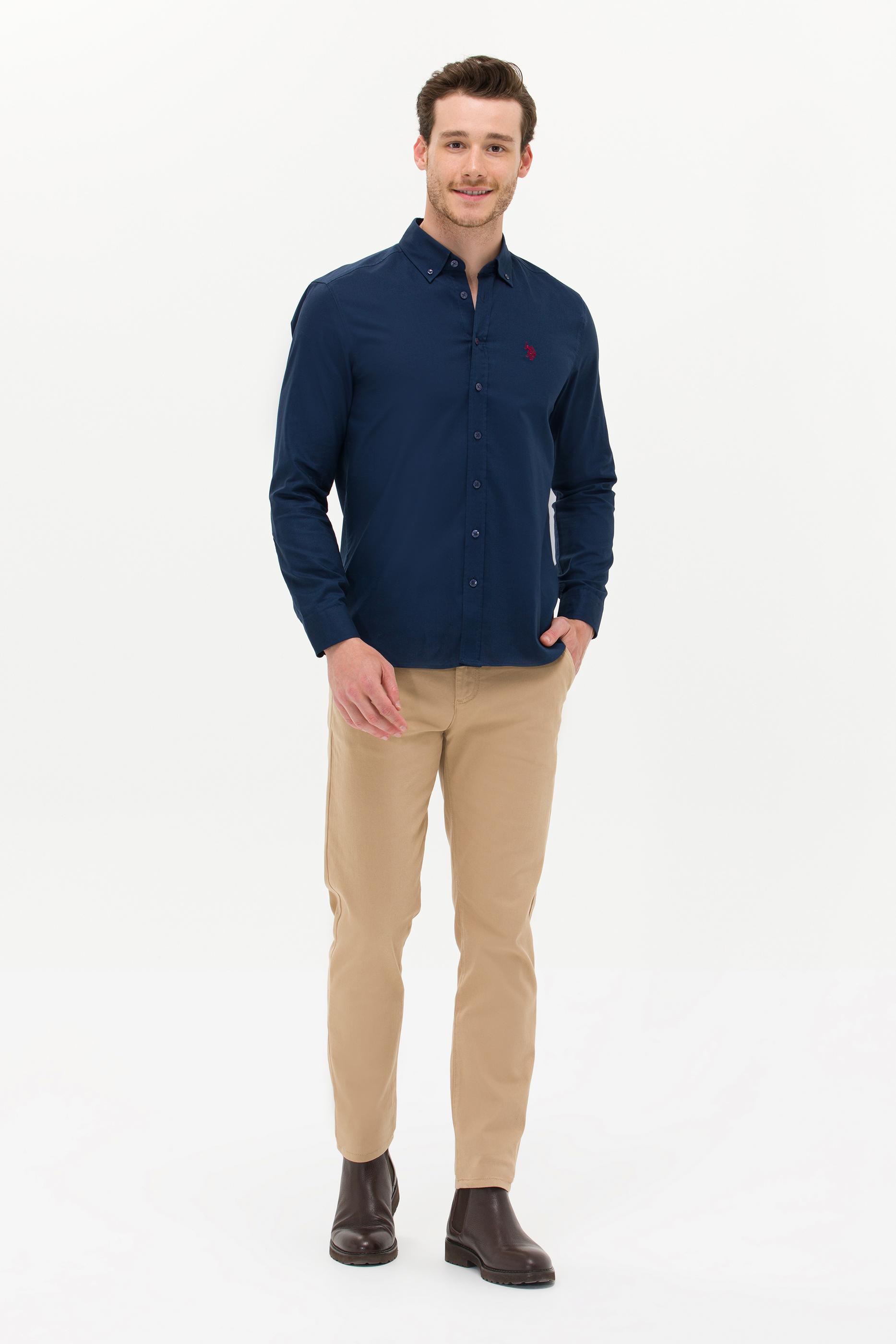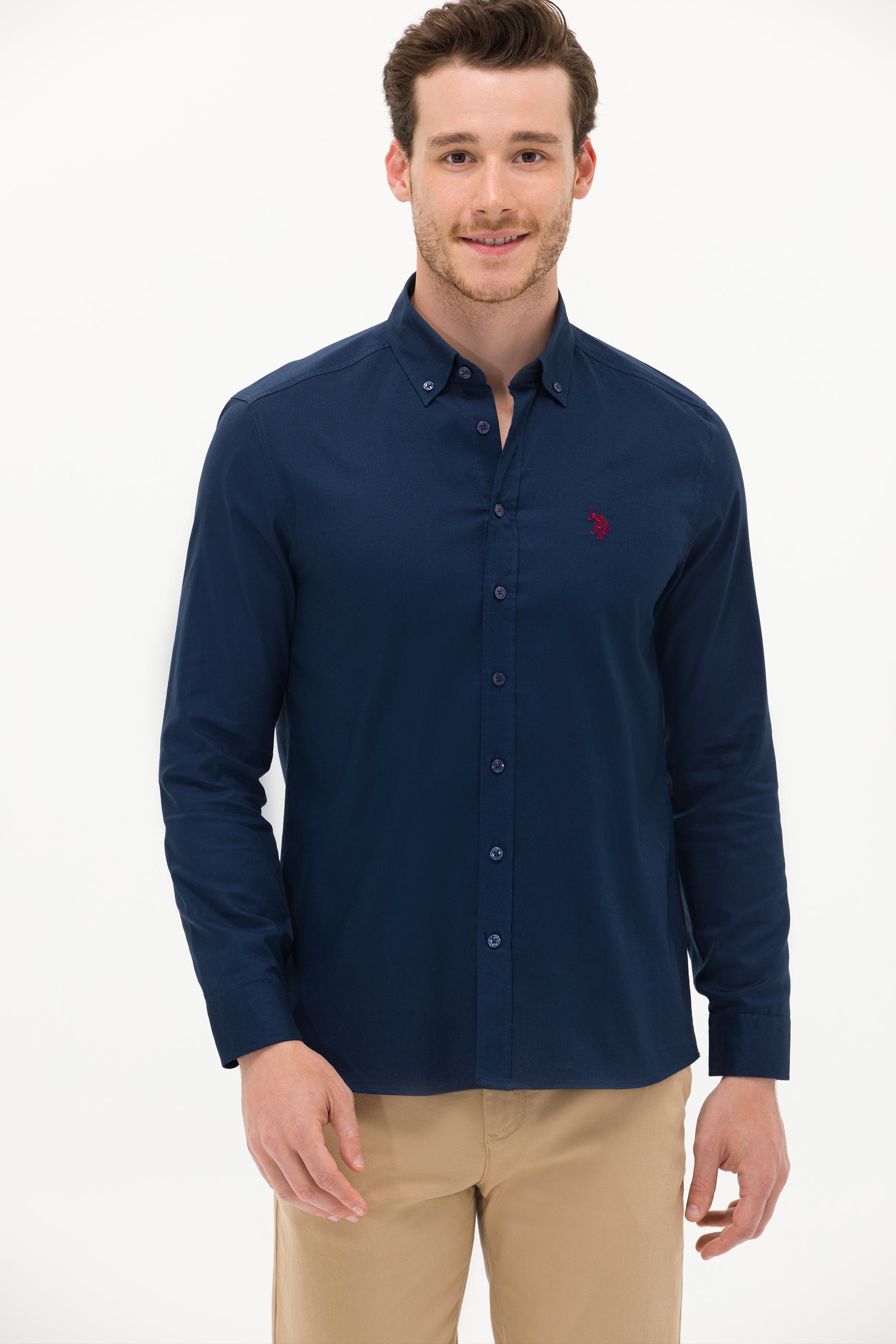 Erkek Lacivert Uzun Kollu Basic Gömlek