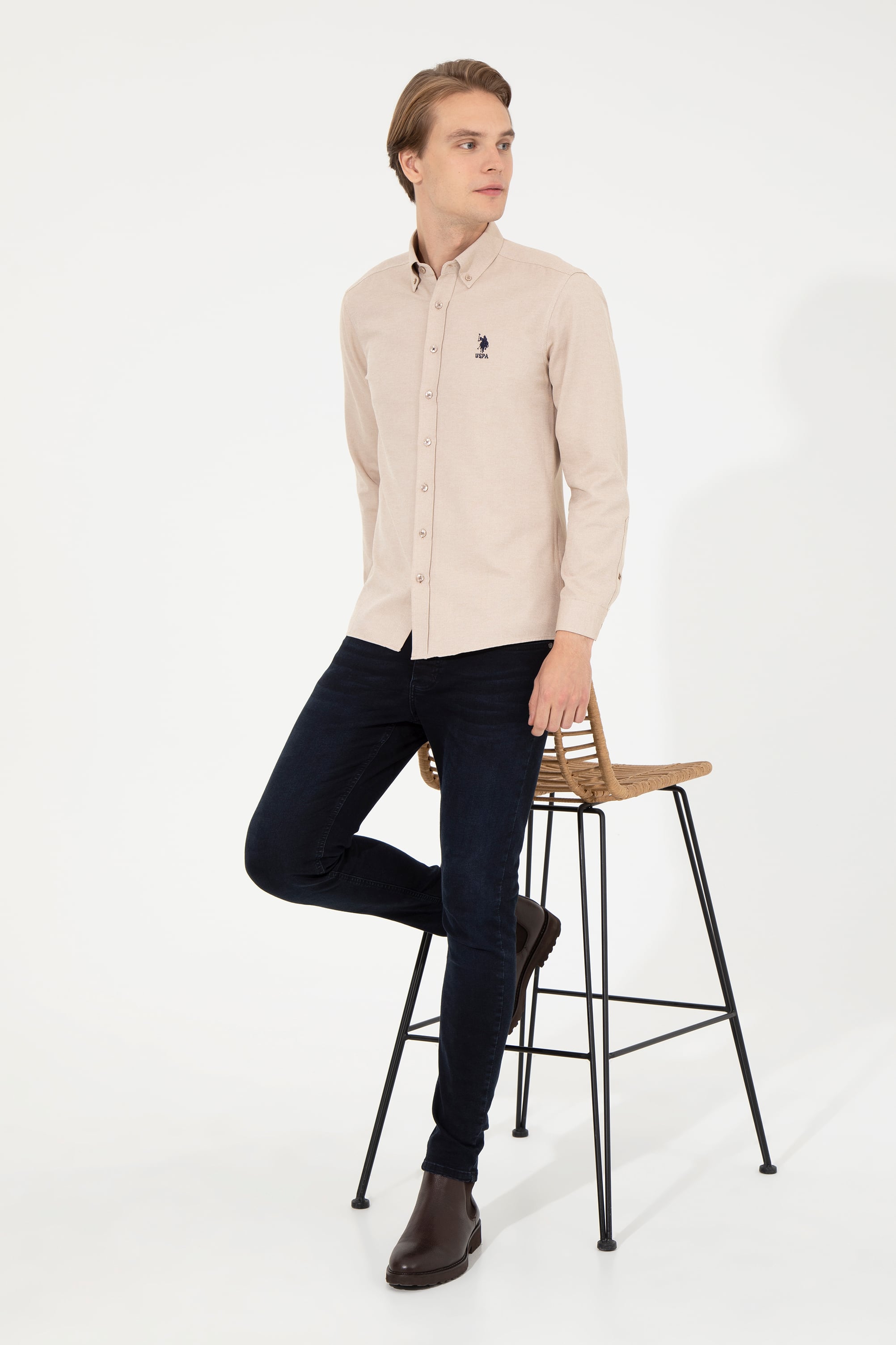 Erkek Camel Uzun Kollu Basic Gömlek